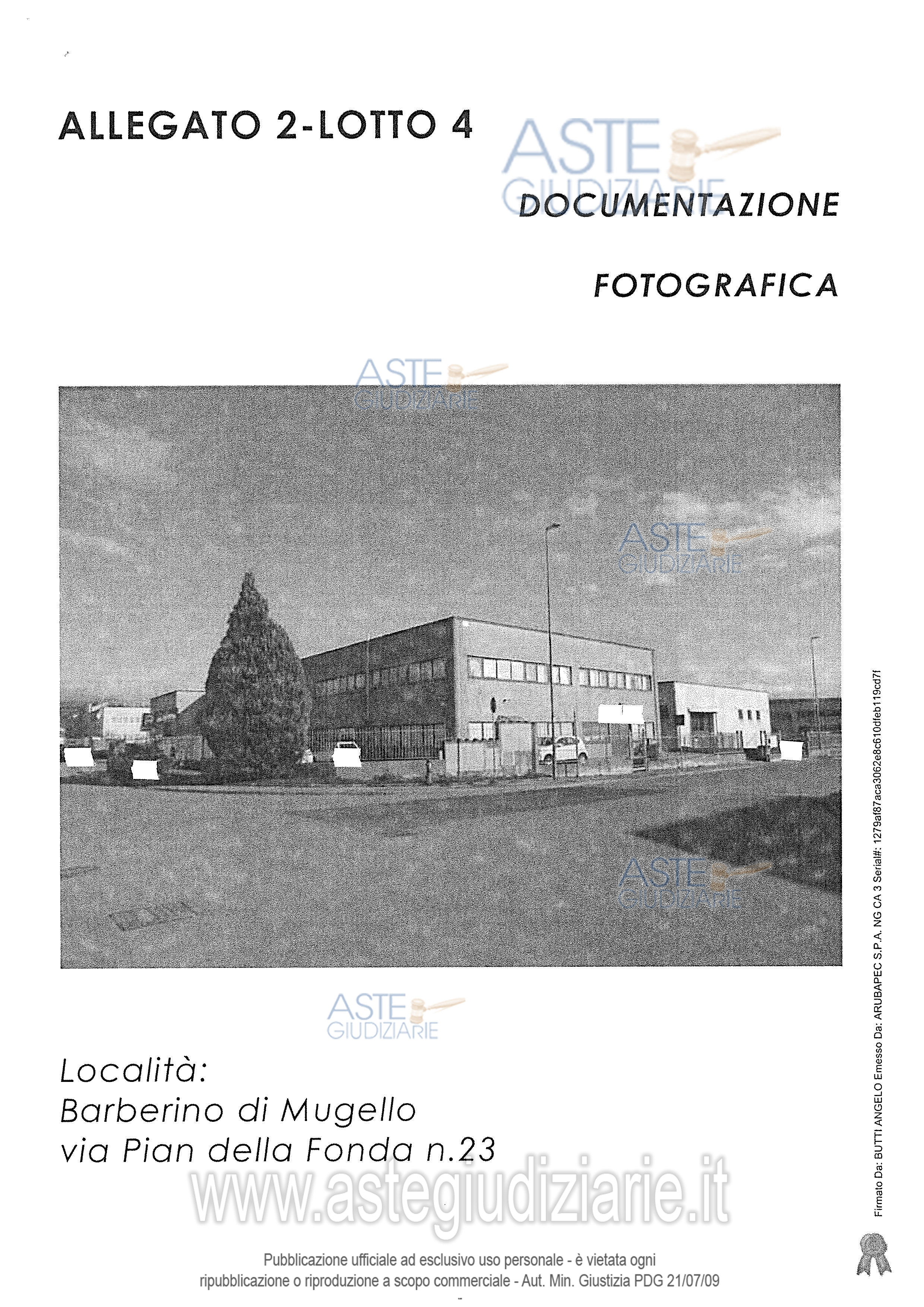 Vendita all'asta Senza incanto, con gara telematica sincrona - LOTTO 4: Proprietà superficiaria per 99 (novantanove) anni di n. 4 lotti costituenti porzione di fabbricato situato in zona produttiva del comune di barberino di mugello, via pian della fonda tramite un resede comune provvisto di accesso pedonale e carrabile. Prezzo base € 49.200,00 (offerta minima € 36.900,00). Data vendita 05/05/2026 ore 11:30. Giudice Francesca Romana Bisegna. Professionista delegato alla vendita Not. Vivien Ceniccola - Email "vceniccola@notariato.it". Custode Giudiziario Istituto Vendite Giudiziarie Di Firenze - Email "prenota.fi@isveg.it"; Tel. 0552340830. Rif. Tribunale di Firenze - Esecuzione immobiliare post legge 80 n. 381/2021