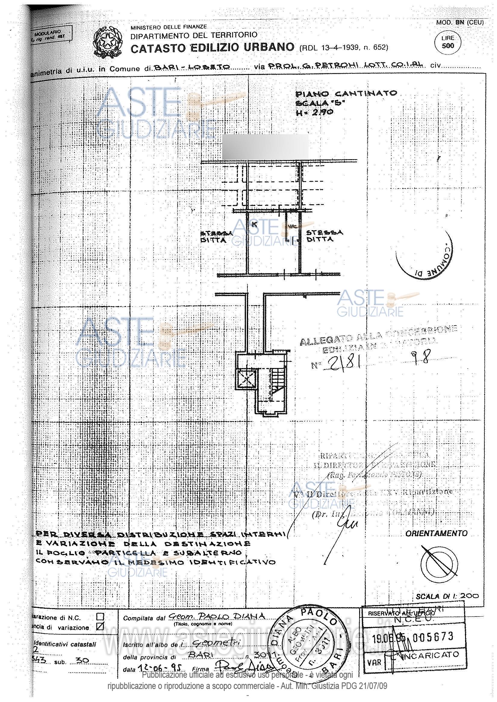 Vendita all'asta Senza incanto, con gara telematica asincrona - LOTTO 3: Porzione immobiliare posta al piano interrato del fabbricato sito in Bari-Loseto, alla via Perrone n. 6, avente accesso, oltre che dal vano scala dello stabile anche diretto verso l’esterno attraverso una scala metallica. Prezzo base € 16.233,75 (offerta minima € 12.175,31). Data inizio operazioni di vendita: 30/06/2026 ore 17:00. Giudice Cristina Fasano. Professionista delegato alla vendita Avv. Antonio Maria Giacomo Schiavoni - Email "antonio@studioavvocatischiavoni.it". Rif. Tribunale di Bari - Volontaria giurisdizione n. 1382/1999