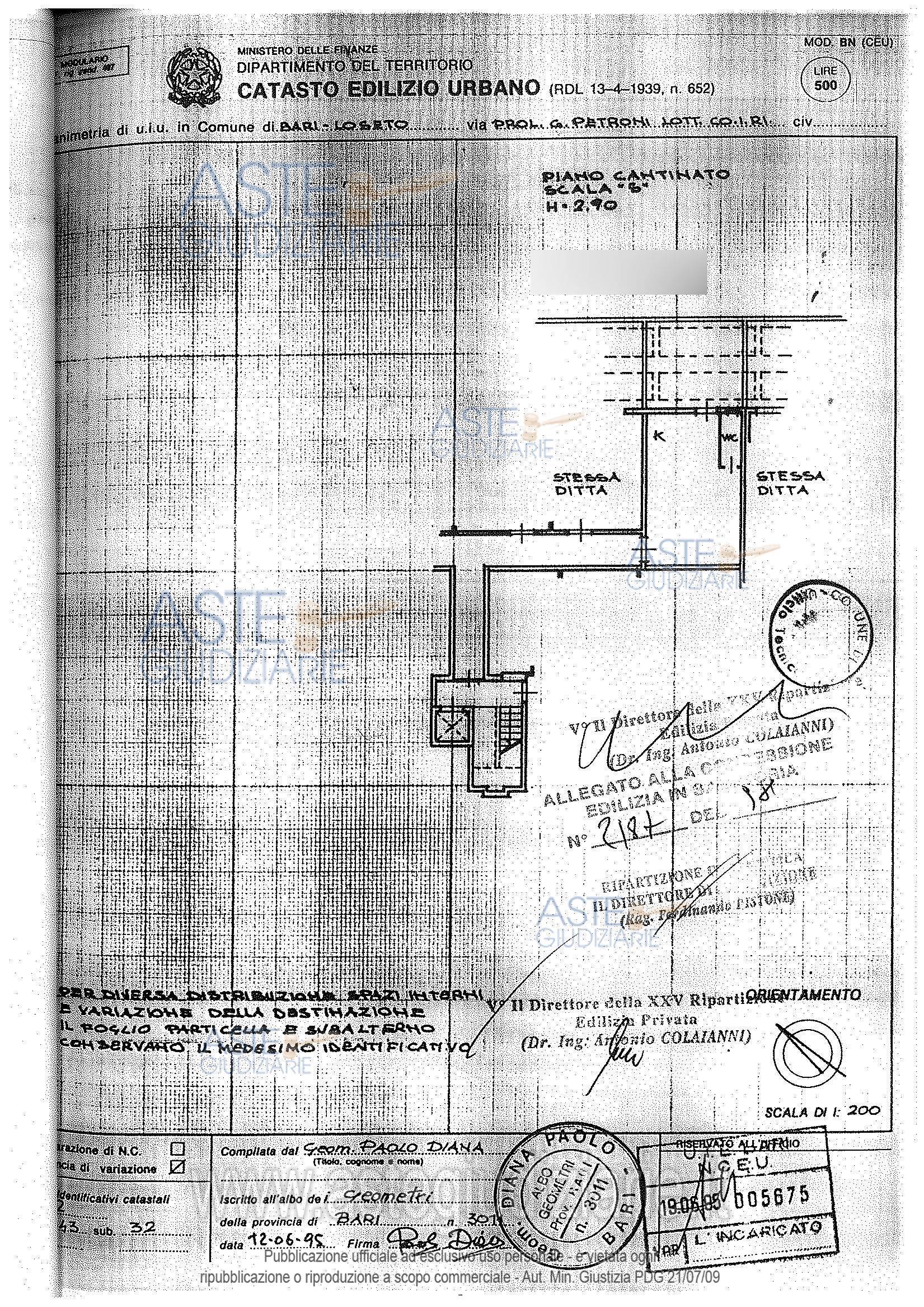 Vendita all'asta Senza incanto, con gara telematica asincrona - LOTTO 5: Porzione immobiliare posta al piano interrato del fabbricato sito in Bari-Loseto, al prolungamento di via Giulio Petroni, via Perrone n. 6, avente accesso dal vano scala dello stabile, posta in posizione terminale rispetto al corridoio di accesso comune. Prezzo base € 14.478,75 (offerta minima € 10.859,06). Data inizio operazioni di vendita: 30/06/2026 ore 17:00. Giudice Cristina Fasano. Professionista delegato alla vendita Avv. Antonio Maria Giacomo Schiavoni - Email "antonio@studioavvocatischiavoni.it". Rif. Tribunale di Bari - Volontaria giurisdizione n. 1382/1999