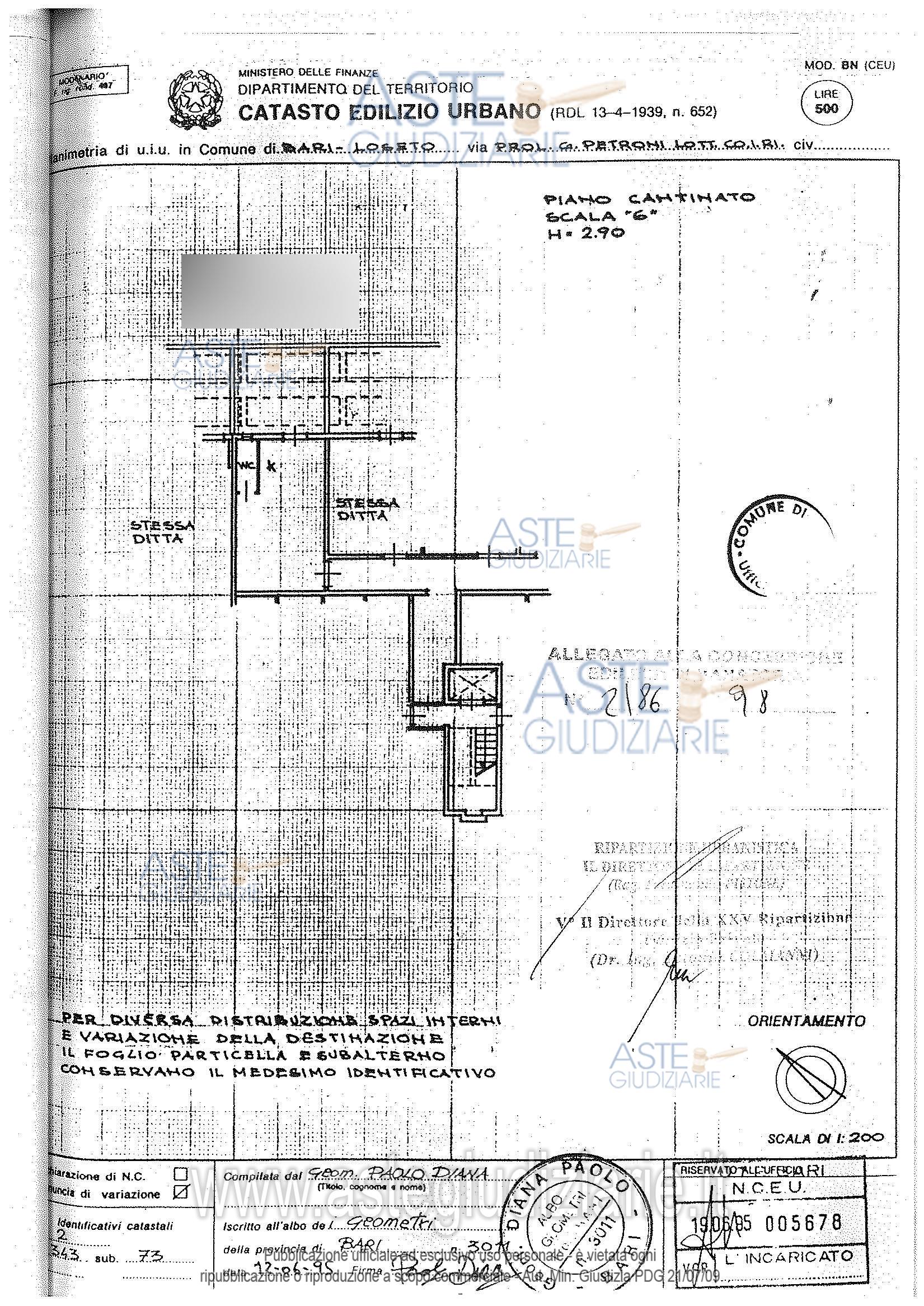 Vendita all'asta Senza incanto, con gara telematica asincrona - LOTTO 6: Porzione immobiliare posta al piano interrato del fabbricato sito in Bari-Loseto, al prolungamento di via Giulio Petroni, via Perrone n. 8, avente accesso dal vano scala dello stabile, posta in posizione terminale rispetto al corridoio di accesso comune. Prezzo base € 14.478,75 (offerta minima € 10.859,06). Data inizio operazioni di vendita: 30/06/2026 ore 17:00. Giudice Cristina Fasano. Professionista delegato alla vendita Avv. Antonio Maria Giacomo Schiavoni - Email "antonio@studioavvocatischiavoni.it". Rif. Tribunale di Bari - Volontaria giurisdizione n. 1382/1999
