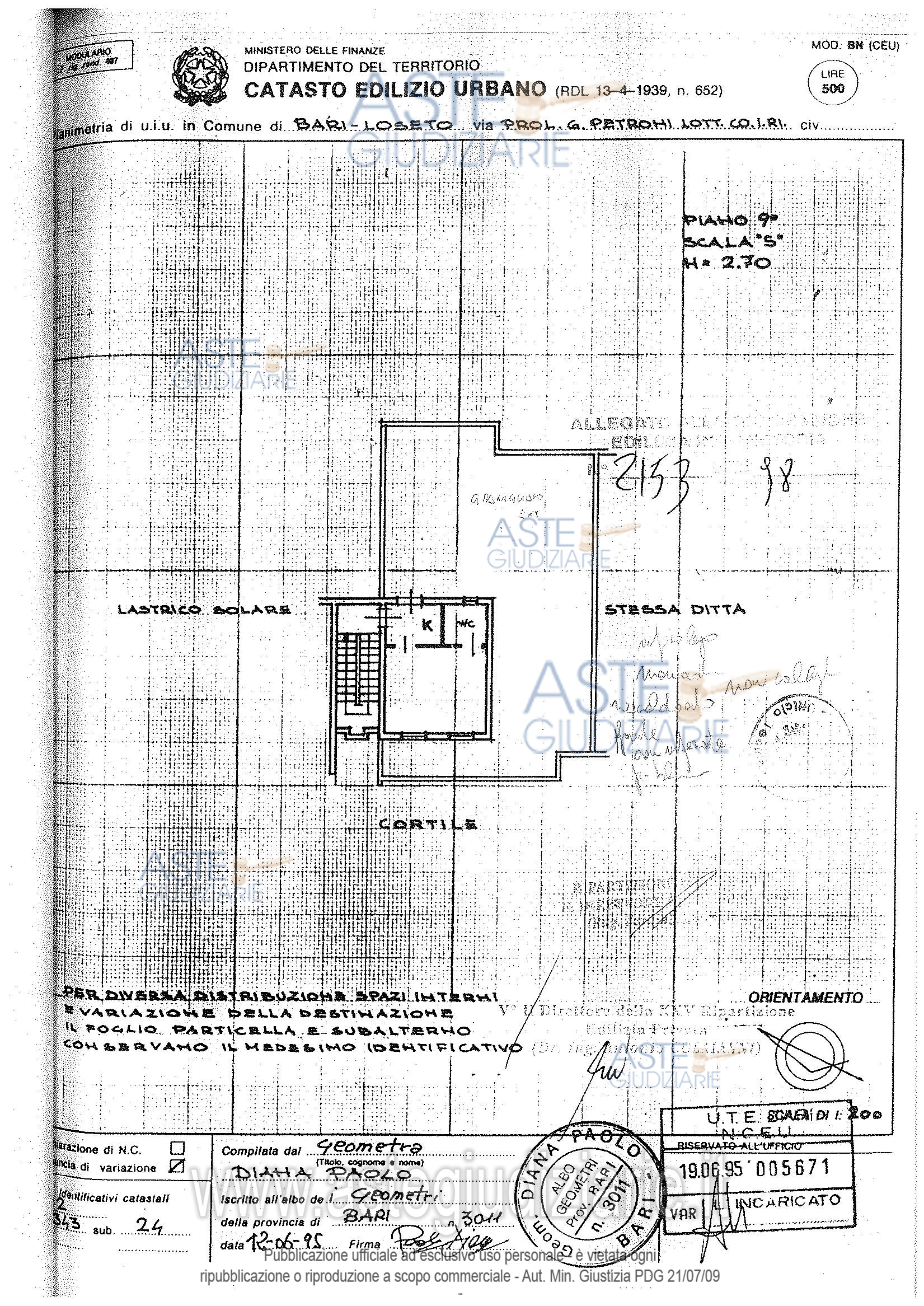Vendita all'asta Senza incanto, con gara telematica asincrona - LOTTO 11: Porzione immobiliare posta al piano nono del fabbricato sito in Bari-Loseto, al prolungamento di via Giulio Petroni, via Perrone n. 8, avente accesso dalla rampa di scala dello stabile, con relativo ballatoio che si diparte dal piano ottavo (sino al piano ottavo è possibile accedere con l’ascensore). Prezzo base € 34.020,00 (offerta minima € 25.515,00). Data inizio operazioni di vendita: 30/06/2026 ore 17:00. Giudice Cristina Fasano. Professionista delegato alla vendita Avv. Antonio Maria Giacomo Schiavoni - Email "antonio@studioavvocatischiavoni.it". Rif. Tribunale di Bari - Volontaria giurisdizione n. 1382/1999