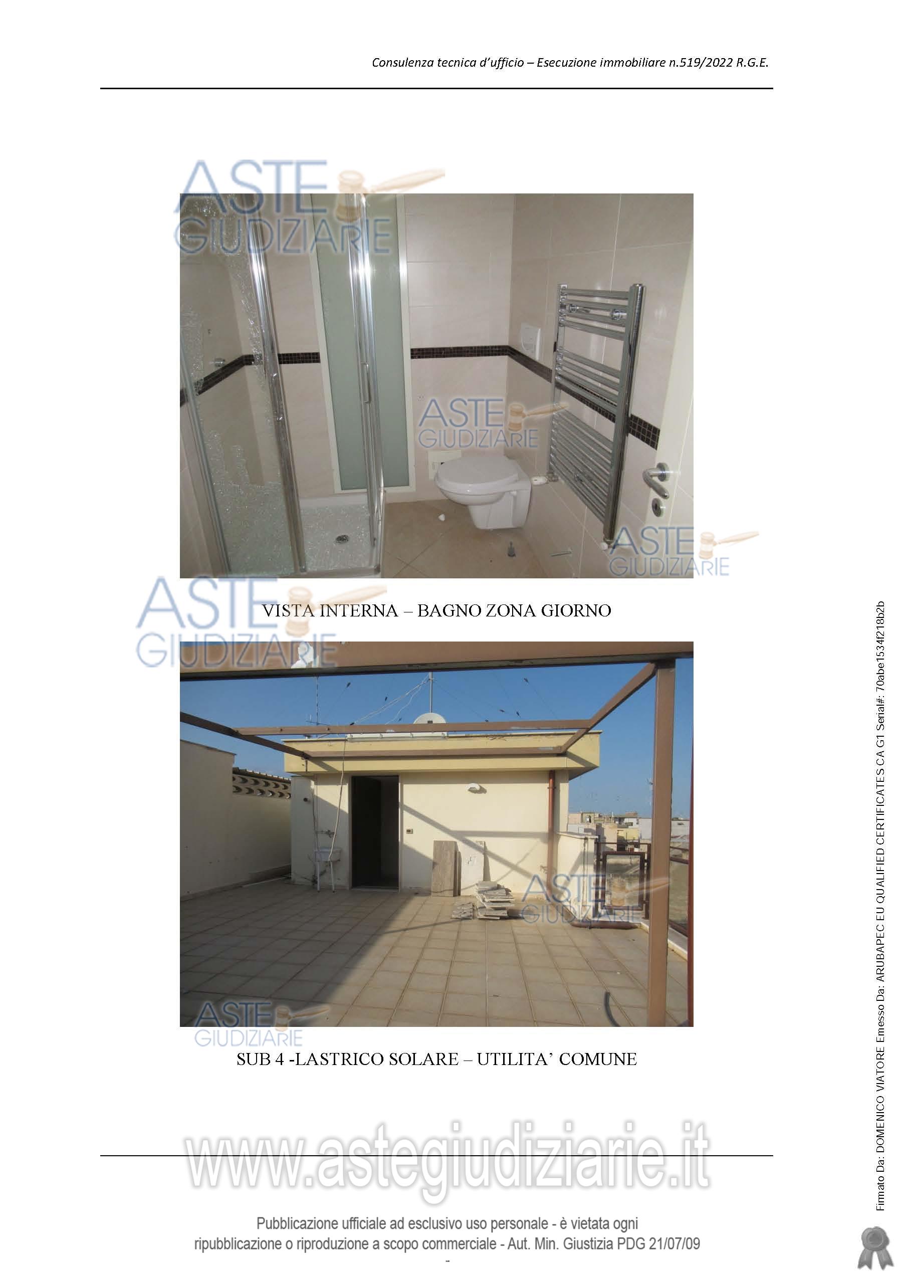 Vendita in attesa dell'emissione del nuovo bando d'asta. LOTTO 2: Appartamento al piano primo costituito da: ampio soggiorno, cucina, 2 camere, 2 bagni, balcone ed ha un’altezza utile interna pari a 2.90 metri. E’ compreso l’utilizzo, in quanto utilità comune, del lastrico solare sul quale sono presenti, fra l’altro, le caldaie a servizio delle unità immobiliari. Ultimo prezzo base € 102.375,00 (offerta minima € 76.781,25). Giudice Dott. Antonio Ruffino. Professionista delegato alla vendita Dott. Francesco De Lauro - Email "francodelauro477@gmail.com". Custode Giudiziario Dott. Francesco De Lauro - Email "francodelauro477@gmail.com". Rif. Tribunale di Bari - Esecuzione immobiliare post legge 80 n. 519/2022