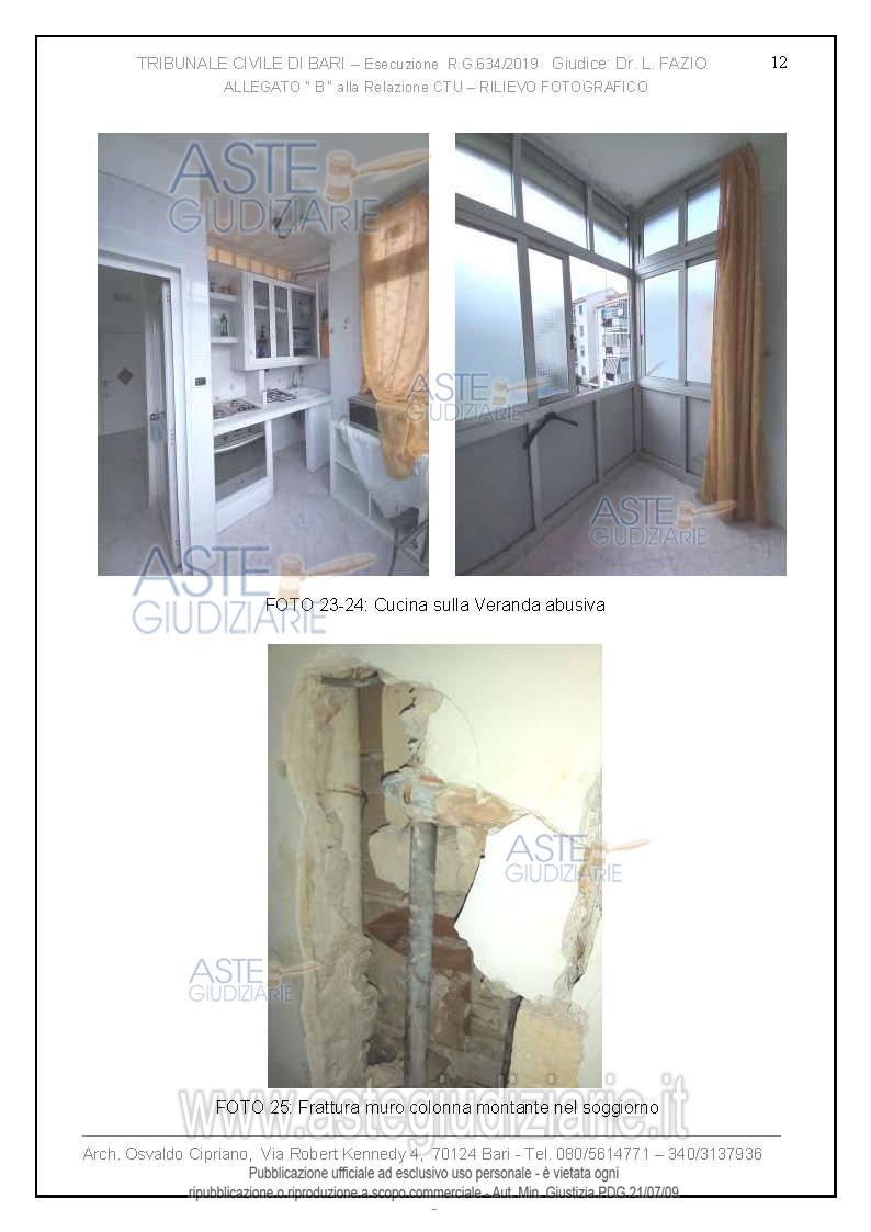 Vendita all'asta Senza incanto, con gara telematica asincrona - LOTTO UNICO: Abitazione di tipo economico al II piano con pertinenziale vano cantina. L'immobile di 3 vani più accessori è composto da soggiorno a vista, cucina, due camere da letto e un bagno, disposti su unica superficie di circa 89 mq , con pertinenziale cantina di 9 mq al P.T. Prezzo base € 82.000,00 (offerta minima € 61.500,00). Data inizio operazioni di vendita: 26/11/2025 ore 16:00. Giudice Dott. Marina Cavallo. Professionista delegato alla vendita Avv. Annabella Paola De Felice - Email "info@studiolegale-defelice.it". Custode Giudiziario Avv. Annabella Paola De Felice - Email "info@studiolegale-defelice.it". Rif. Tribunale di Bari - Esecuzione immobiliare post legge 80 n. 634/2019