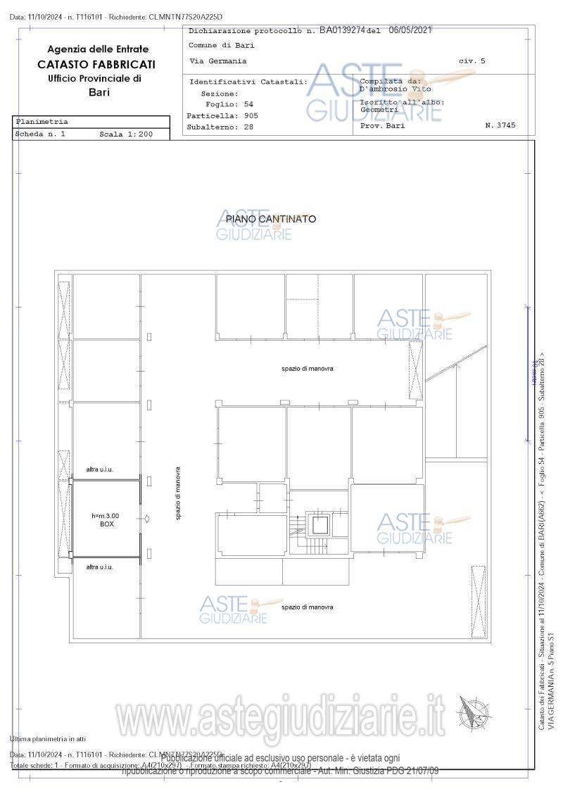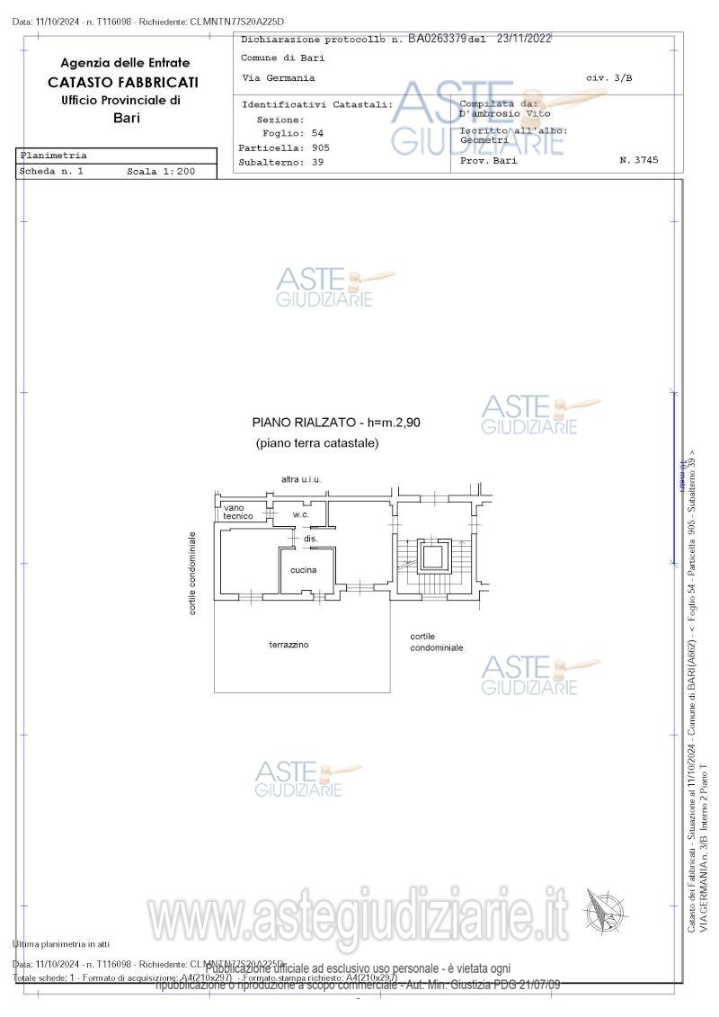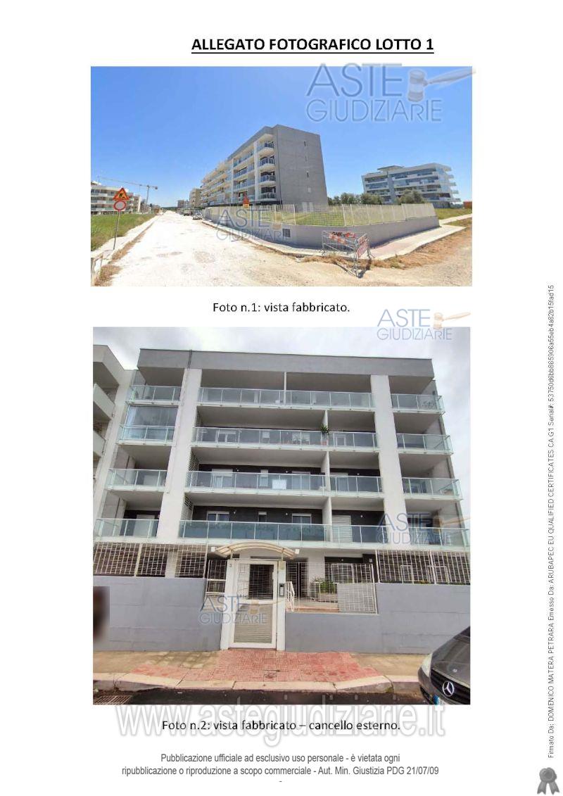 Vendita all'asta Senza incanto, con gara telematica asincrona - LOTTO 1: Appartamento e pertinenziale box – auto al quartiere Sant’Anna, il primo avente accesso dal civico 3/B di via Germania, contraddistinto dall’interno 2, il secondo, invece, dal civico 5 di detta via. L’appartamento al piano terra si presenta come un unico ambiente, privo di tramezzature interne, di pavimenti, fatta eccezione per il terrazzino, di intonaci, di pitture e di impianti, gli unici elementi presenti sono gli infissi metallici. Locale garage al piano seminterrato, costituito da un unico ambiente. Prezzo base € 92.625,00 (offerta minima € 69.468,75). Data inizio operazioni di vendita: 05/03/2026 ore 15:30. Giudice Dott. Marina Cavallo. Professionista delegato alla vendita Avv. Vito Luigi Cofano - Email "vitoluigicofano@yahoo.it". Custode Giudiziario Avv. Vito Luigi Cofano - Email "vitoluigicofano@yahoo.it". Rif. Tribunale di Bari - Espropriazione immobiliare (cartabia) n. 99/2024