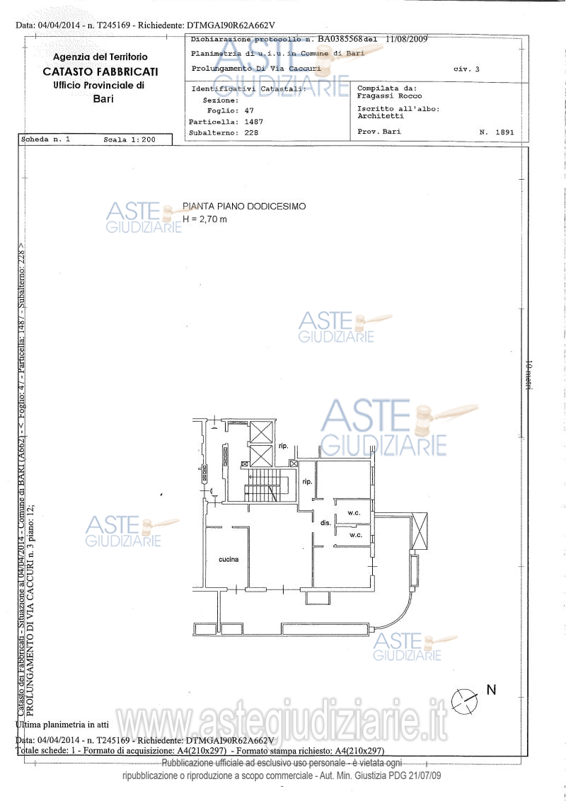 Vendita all'asta Senza incanto, con gara telematica asincrona - LOTTO 19: Appartamento residenziale con balcone, posto al dodicesimo piano in zona Poggiofranco alla Via Giuseppe Posca n. 3, sottostante all’attico dell’ultimo livello, avente una superficie calpestabile di circa 98 mq, costituito da un ingresso, una cucina, un salone ampio, un disimpegno, due camere, due bagni con doccia, un ripostiglio-lavanderia. Prezzo base € 324.100,00 (offerta minima € 243.075,00). Data inizio operazioni di vendita: 15/01/2026 ore 10:00. In caso di più offerte valide si procederà a gara che inizierà il 15/01/2026 ore 10:00 e terminerà il 22/01/2026 ore 12:00. Giudice Dott. Paola Cesaroni. Rif. Tribunale di Bari - Nuovo concordato preventivo n. 26/2013