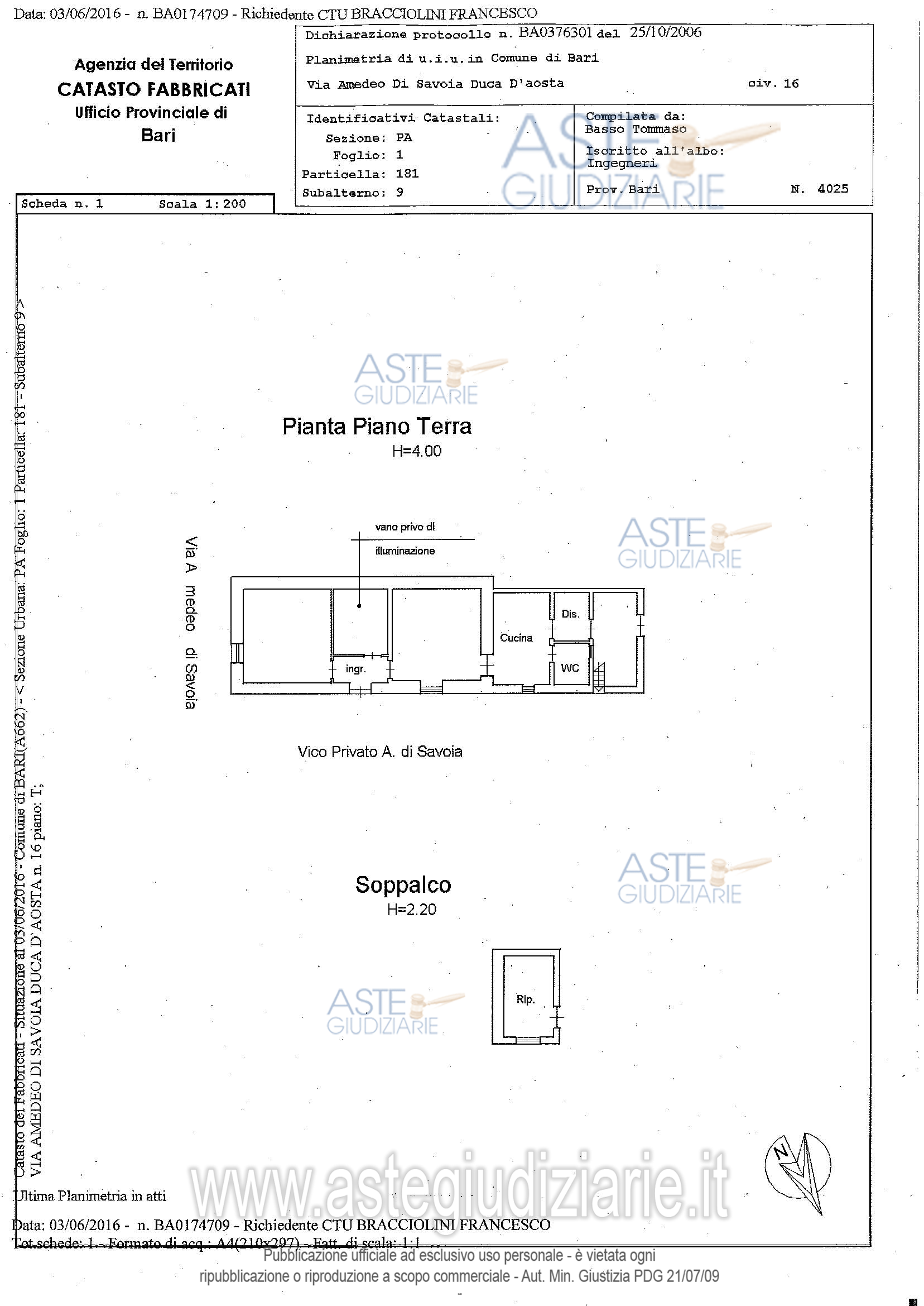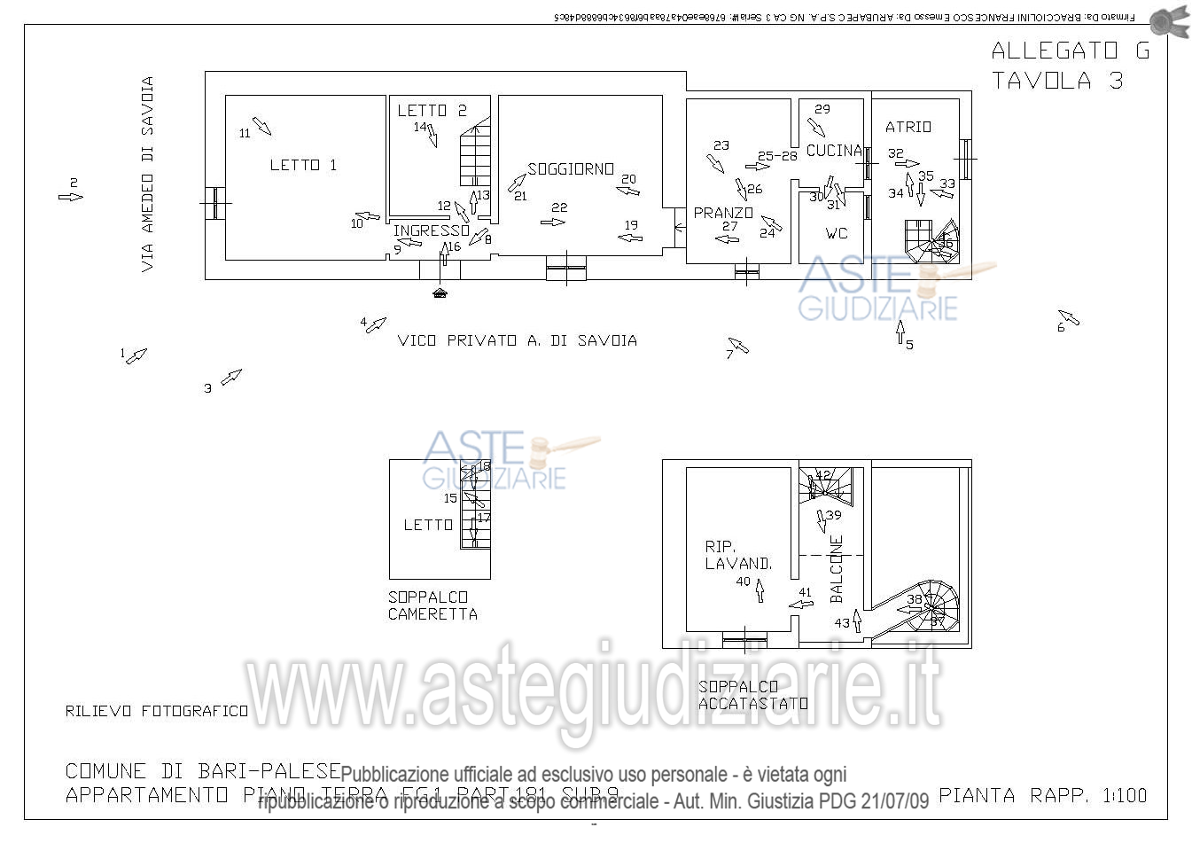 Vendita all'asta Senza incanto, con gara telematica asincrona - LOTTO UNICO: Casa per civile abitazione in località Palese–Macchie (BA) con ingresso indipendente dal civico 16 di via Amedeo di Savoia, appartamento che si sviluppa a piano terra, composto da 2 camere da letto (di cui una soppalcata mq 8 circa), soggiorno-zona pranzo, bagno e angolo cottura, oltre ad un atrio, balconcino con vano lavanderia e lastrico solare (entrambi raggiungibili con scala in ferro esterna). Prezzo base € 65.429,25 (offerta minima € 49.071,93). Data inizio operazioni di vendita: 16/07/2026 ore 17:30. Giudice Dott. Chiara Cutolo. Professionista delegato alla vendita Avv. Simona Carabba - Email "avvsimonacarabba@libero.it". Custode Giudiziario Avv. Simona Carabba - Email "avvsimonacarabba@libero.it". Rif. Tribunale di Bari - Esecuzione immobiliare post legge 80 n. 844/2015