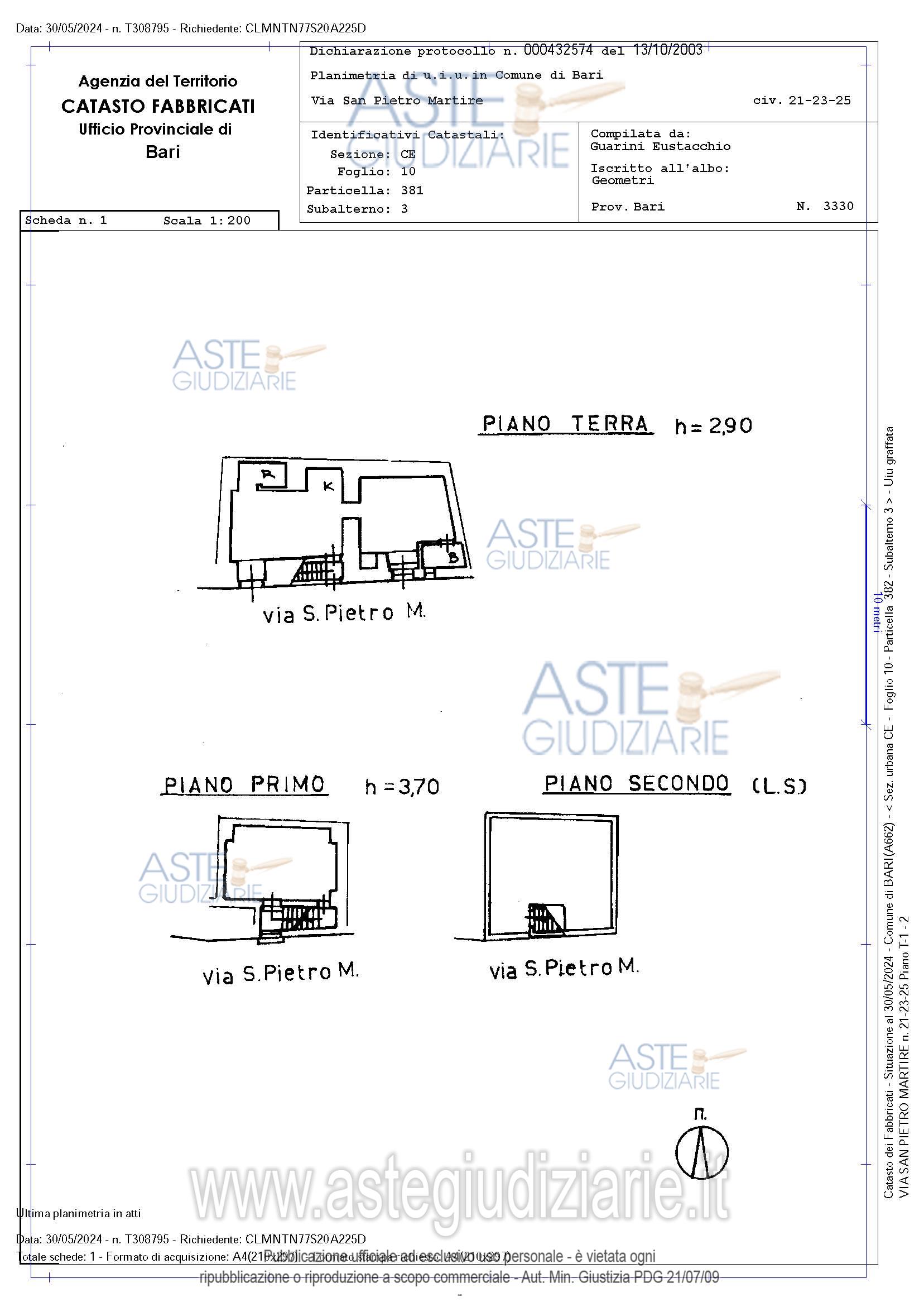 Vendita all'asta Senza incanto, con gara telematica asincrona - LOTTO UNICO: Diritto di proprietà pari a 1/1 di abitazione costituita da un’abitazione al piano terra di circa 62 mq commerciali, un’altra al piano primo di circa 31 mq commerciali ed una terrazza di circa 32 mq commerciali. Prezzo base € 58.700,00 (offerta minima € 44.025,00). Data inizio operazioni di vendita: 26/02/2026 ore 17:00. Giudice Dott. Antonio Ruffino. Professionista delegato alla vendita Avv. Giuseppina Ostuni - Email "studiolegalegostuni@gmail.com". Custode Giudiziario Avv. Giuseppina Ostuni - Email "studiolegalegostuni@gmail.com". Rif. Tribunale di Bari - Espropriazione immobiliare (cartabia) n. 44/2024