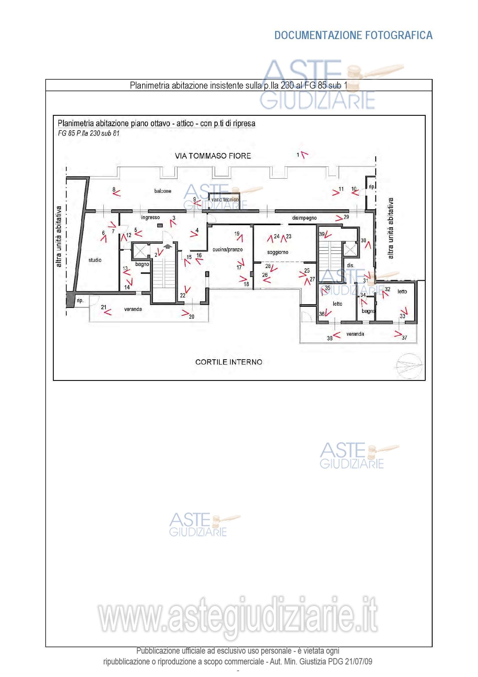 Vendita all'asta Senza incanto, con gara telematica asincrona - LOTTO UNICO: Appartamento all'ottavo piano costituito da un ampio ingresso, subito a sinistra un bagno ed una camera/soggiorno. A destra vi è una porta che adduce alla cucina e zona pranzo con una veranda esterna. Sempre dall'ingresso si può accedere sull'ampio balcone prospiciente via Tommaso Fiore, con vano tecnico e ripostiglio, e ad una porta che conduce in un corridoio di distribuzione alle camere da letto e secondo bagno. Dalle camere da letto si accede su un'altra veranda con annesso ripostiglio. Prezzo base € 402.000,00 (offerta minima € 301.500,00). Data inizio operazioni di vendita: 13/03/2026 ore 12:00. Giudice Dott. Antonio Ruffino. Professionista delegato alla vendita Dott. Francesco De Lauro - Email "francodelauro477@gmail.com". Custode Giudiziario Dott. Francesco De Lauro - Email "francodelauro477@gmail.com". Rif. Tribunale di Bari - Espropriazione immobiliare (cartabia) n. 178/2024
