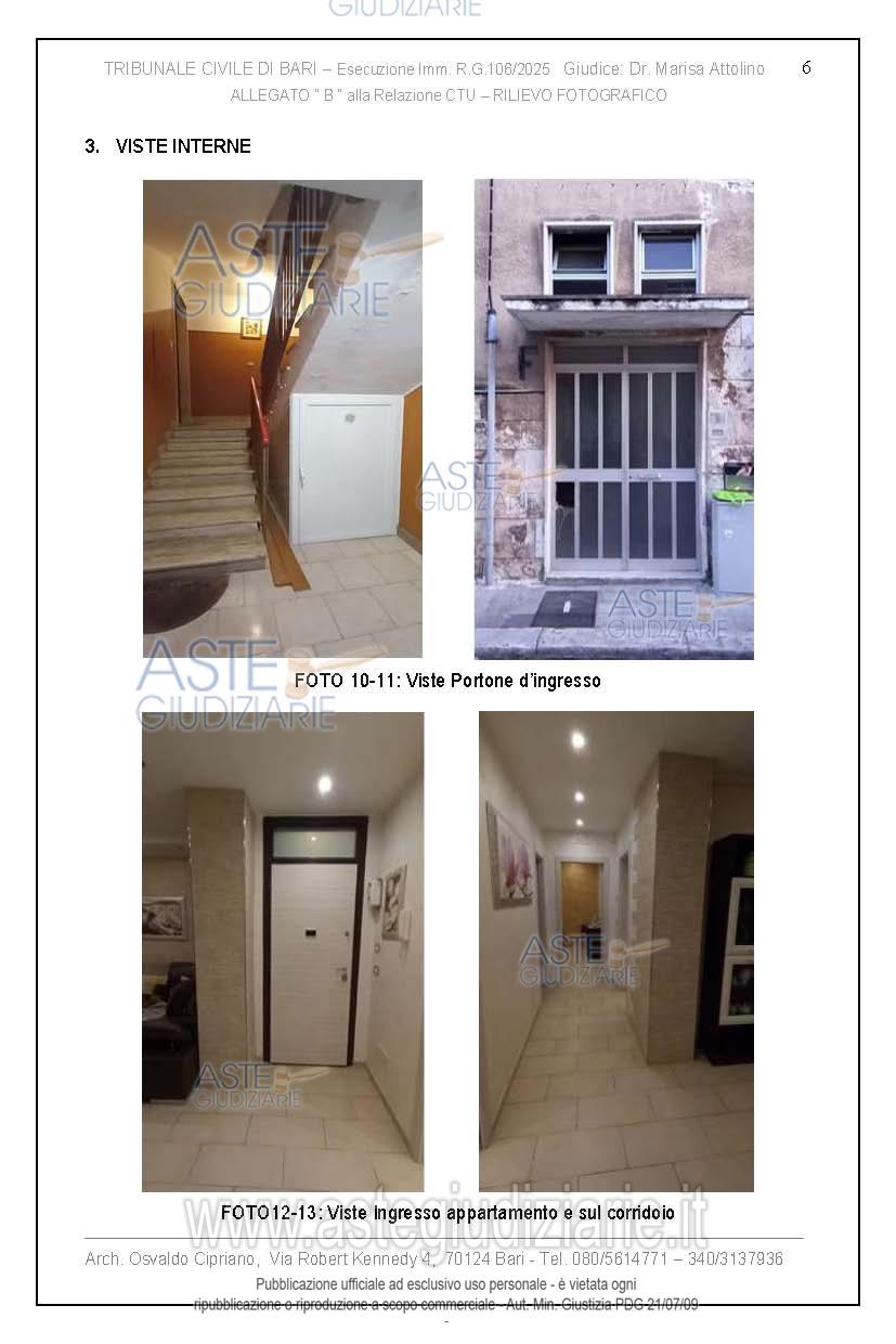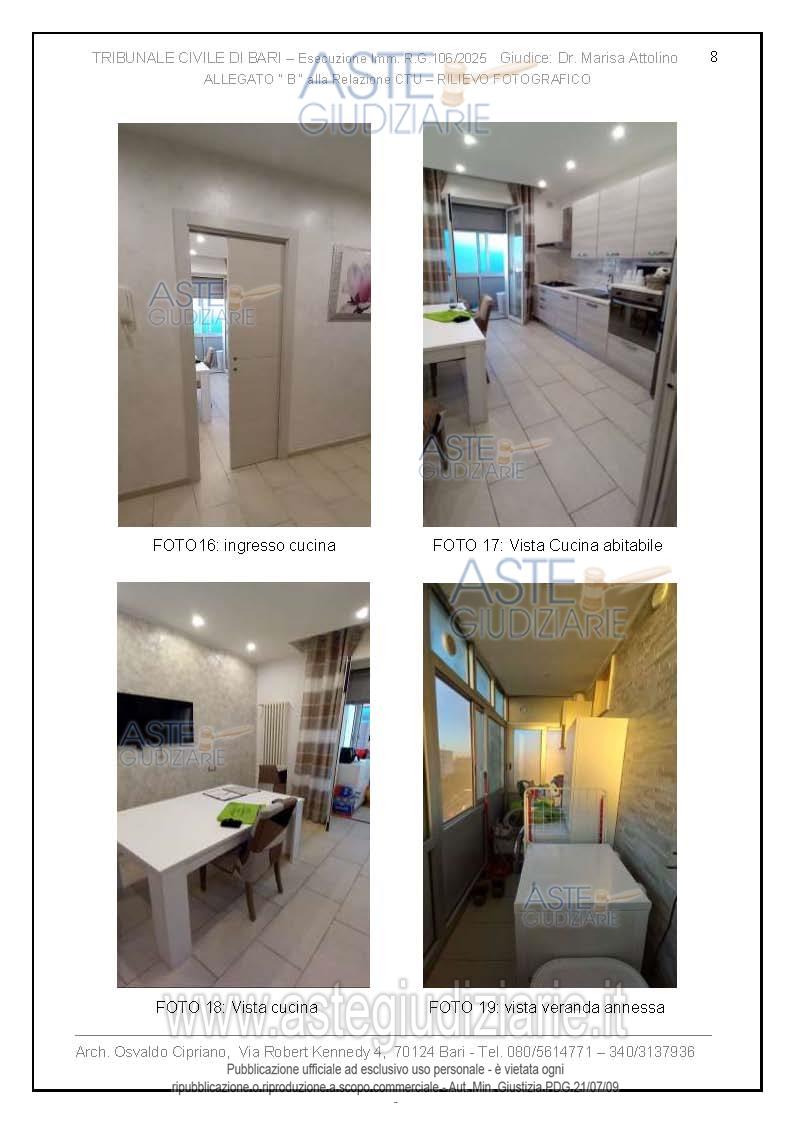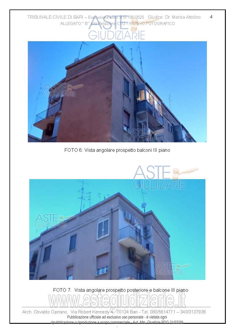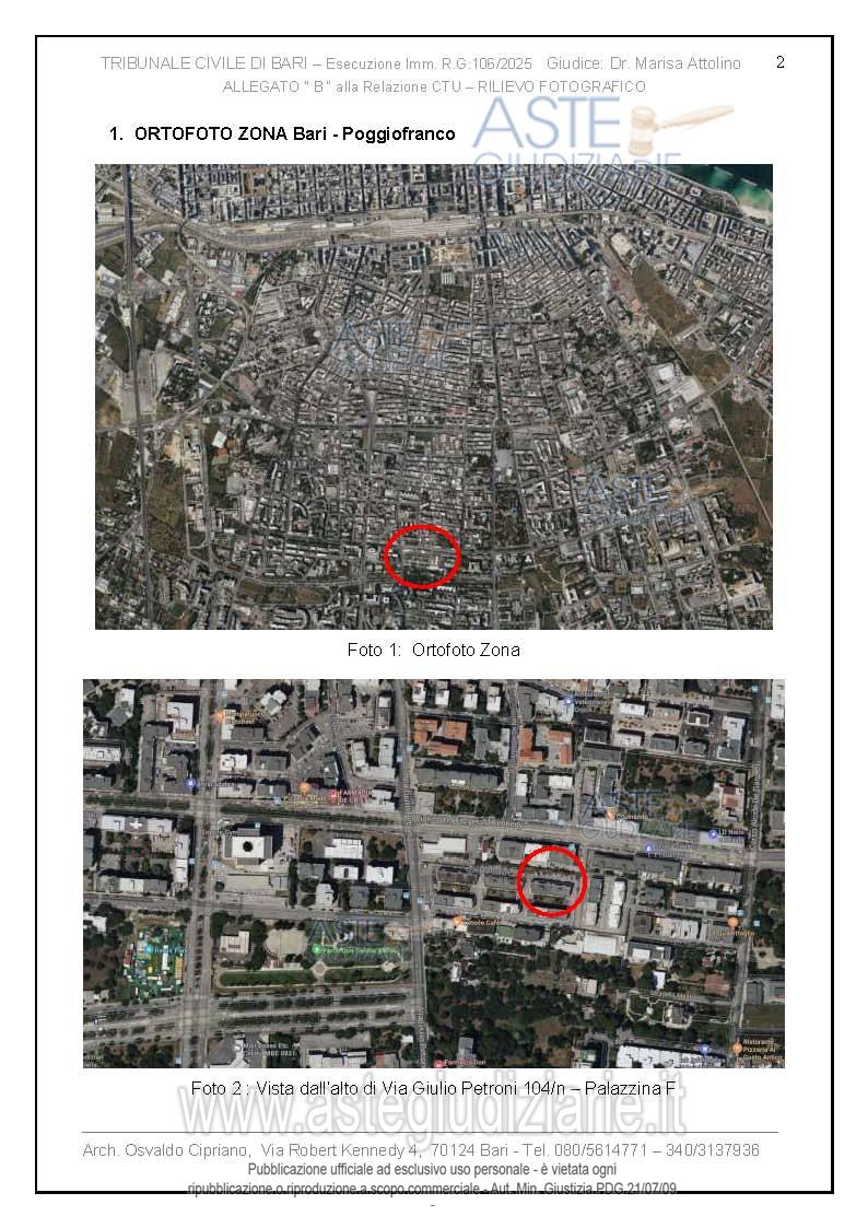Vendita all'asta Senza incanto, con gara telematica asincrona - LOTTO UNICO: Abitazione di tipo economico facente parte di un palazzo degli anni 60 del quartiere tra Poggiofranco e Carrassi in zona semicentrale. L'immobile di 3 vani più accessori si trova al III piano, senza ascensore, ed è composto da soggiorno a vista con annessa cucina, due camere da letto e un bagno, disposti su unica superficie di circa 100 mq. Prezzo base € 159.000,00 (offerta minima € 119.250,00). Data inizio operazioni di vendita: 20/04/2026 ore 17:00. Giudice Dott. Marisa Attollino. Professionista delegato alla vendita Avv. Laura Petruzzi - Email "lara.petruzzi@alice.it". Custode Giudiziario Avv. Laura Petruzzi - Email "lara.petruzzi@alice.it". Rif. Tribunale di Bari - Espropriazione immobiliare (cartabia) n. 106/2025