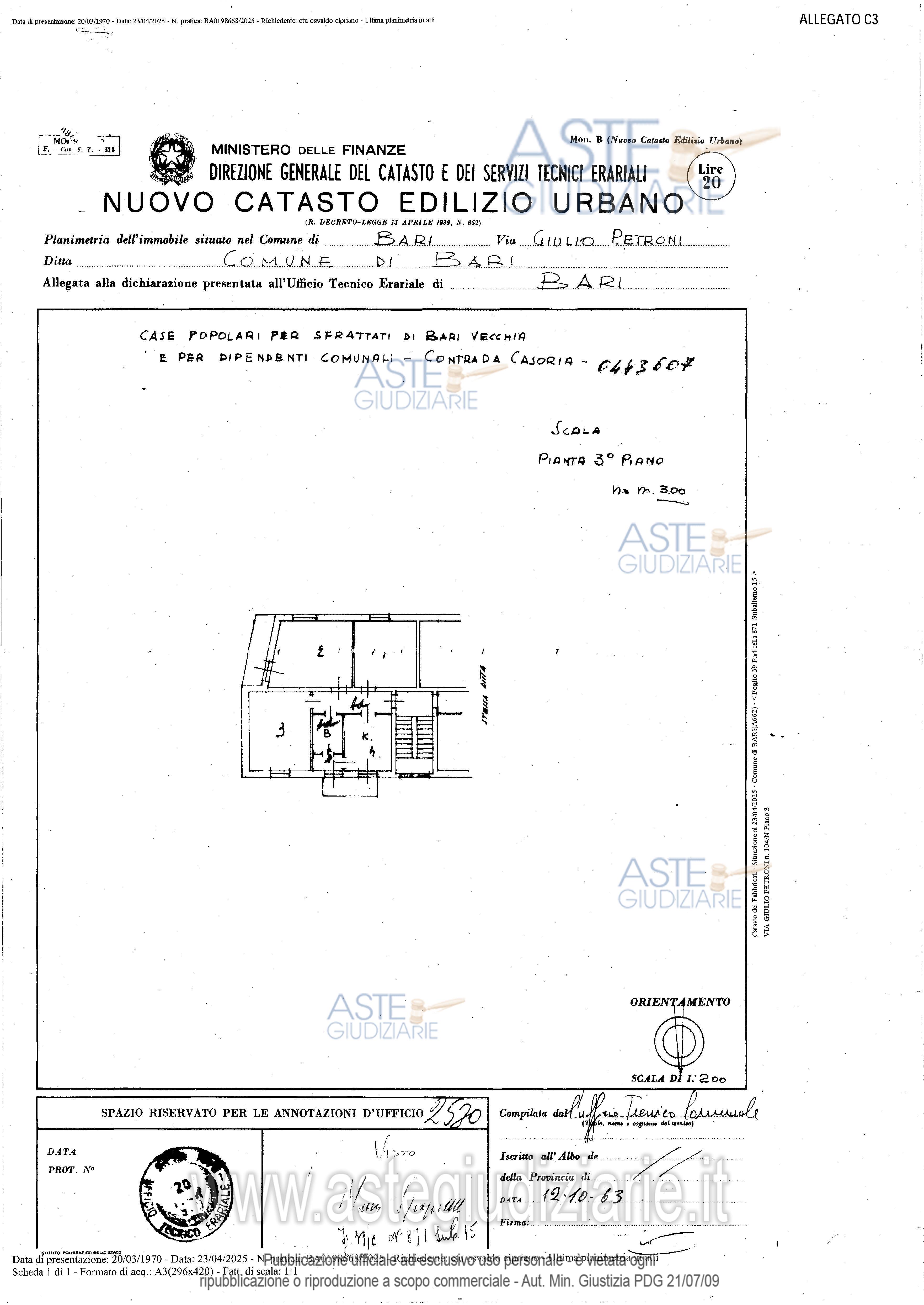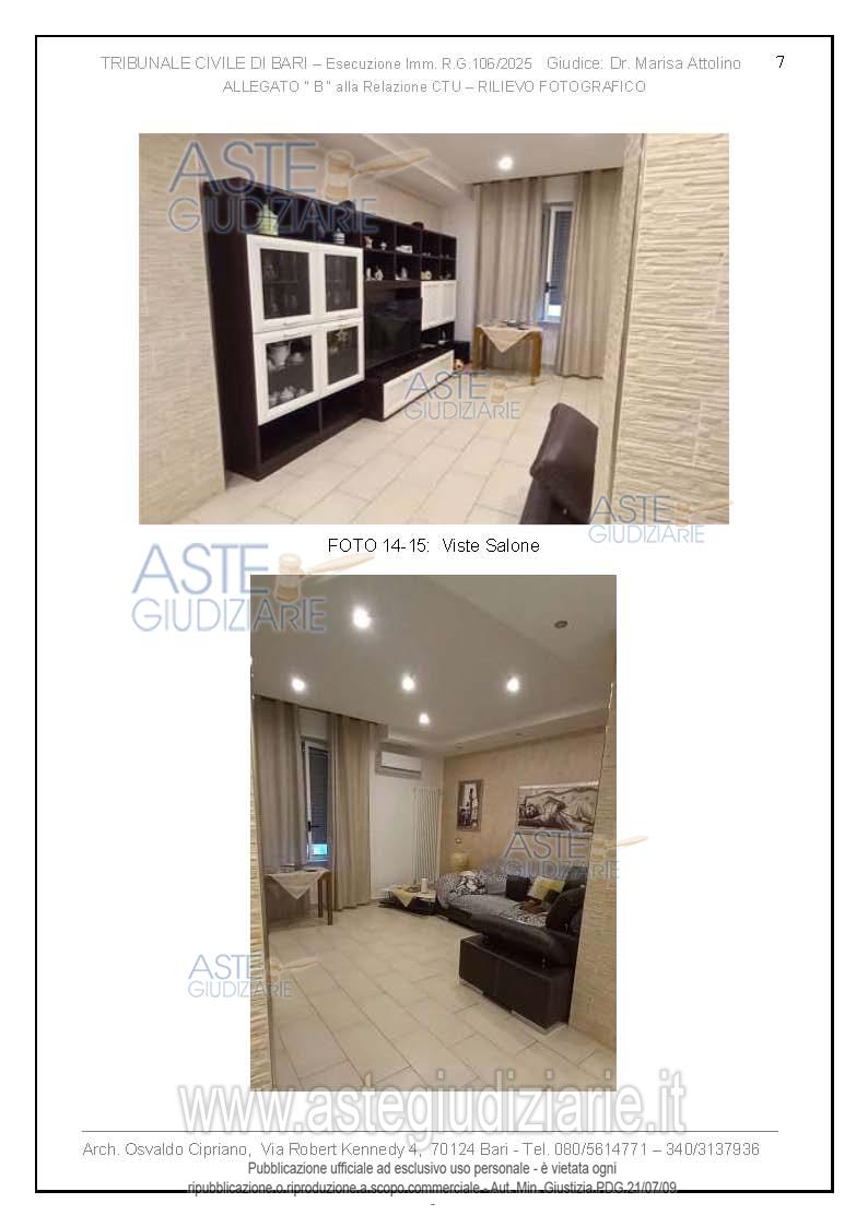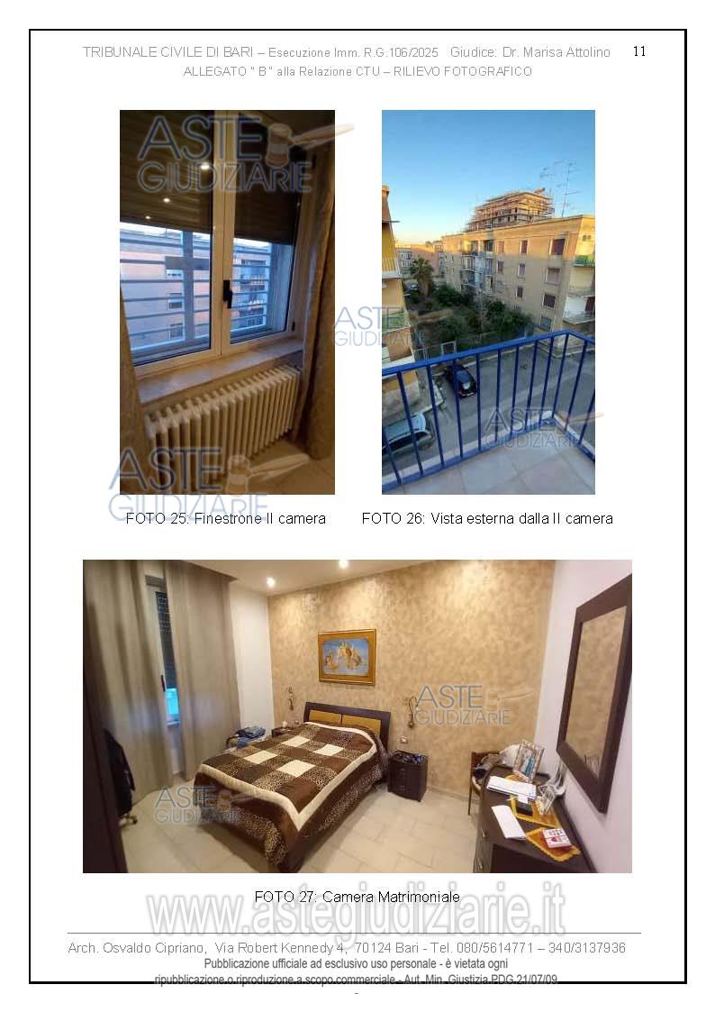 Vendita all'asta Senza incanto, con gara telematica asincrona - LOTTO UNICO: Abitazione di tipo economico facente parte di un palazzo degli anni 60 del quartiere tra Poggiofranco e Carrassi in zona semicentrale. L'immobile di 3 vani più accessori si trova al III piano, senza ascensore, ed è composto da soggiorno a vista con annessa cucina, due camere da letto e un bagno, disposti su unica superficie di circa 100 mq. Prezzo base € 159.000,00 (offerta minima € 119.250,00). Data inizio operazioni di vendita: 20/04/2026 ore 17:00. Giudice Dott. Marisa Attollino. Professionista delegato alla vendita Avv. Laura Petruzzi - Email "lara.petruzzi@alice.it". Custode Giudiziario Avv. Laura Petruzzi - Email "lara.petruzzi@alice.it". Rif. Tribunale di Bari - Espropriazione immobiliare (cartabia) n. 106/2025