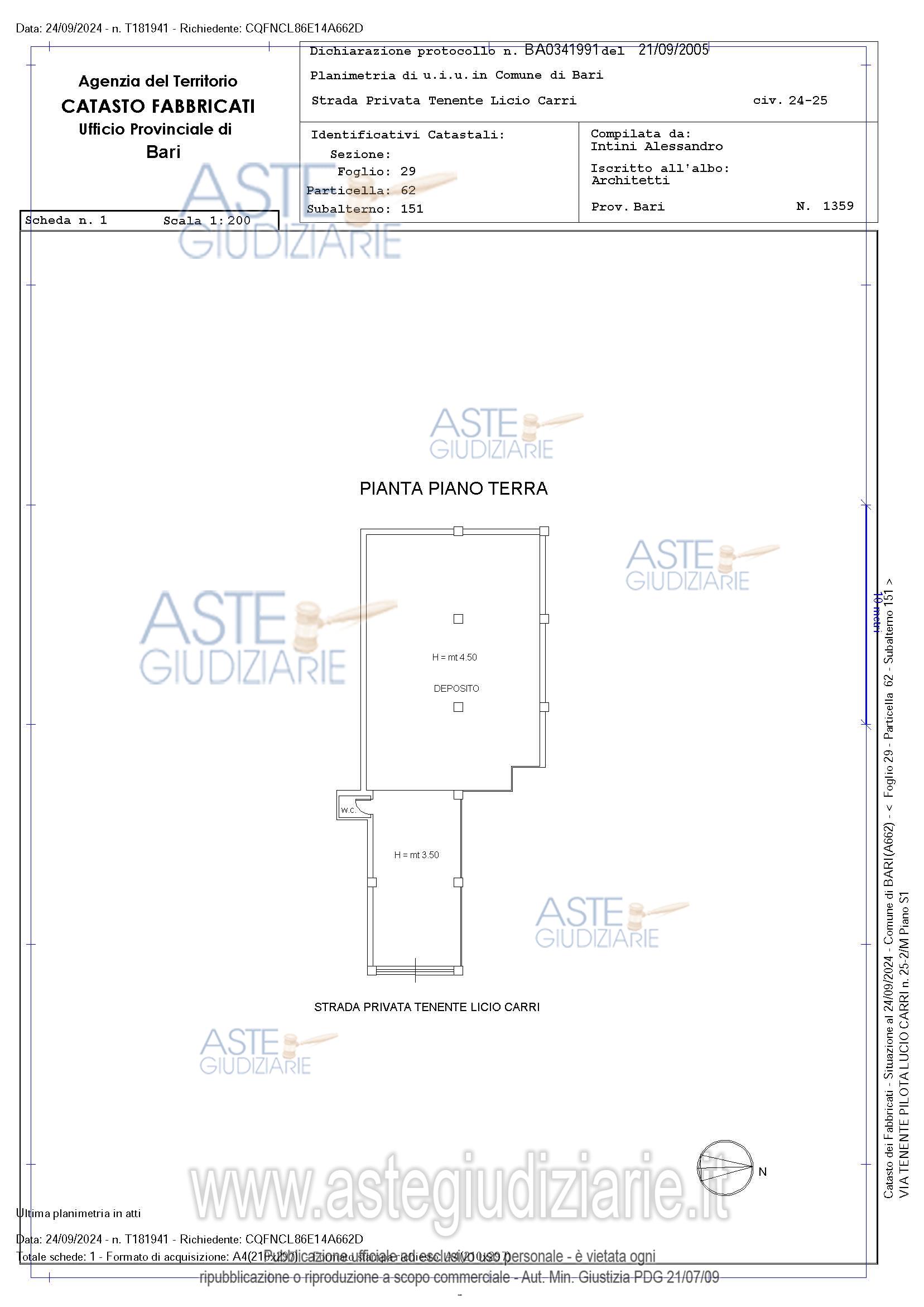 Vendita all'asta Invito a manifestare interesse - LOTTO 1: Immobile sito a piano S1. Prezzo base € 53.566,50 (offerta minima € 53.566,50). Rif. Tribunale di Bari - Misura di prevenzione n. 1184/2019