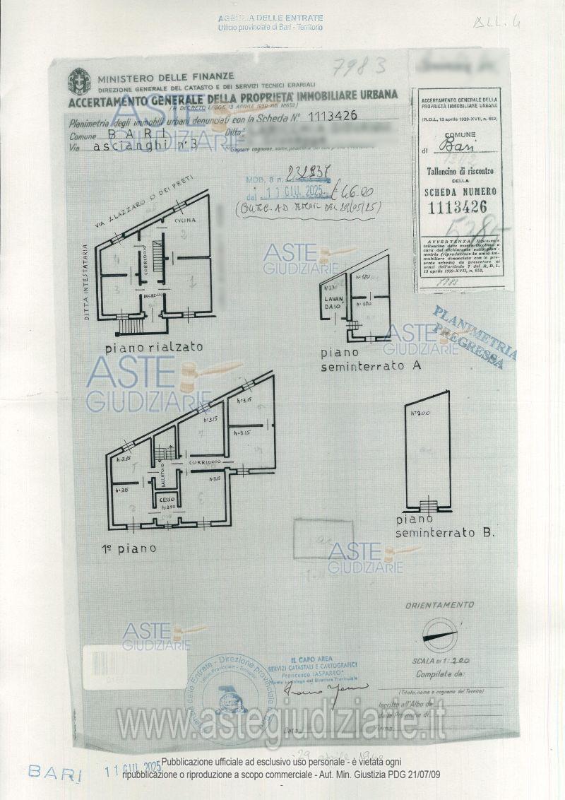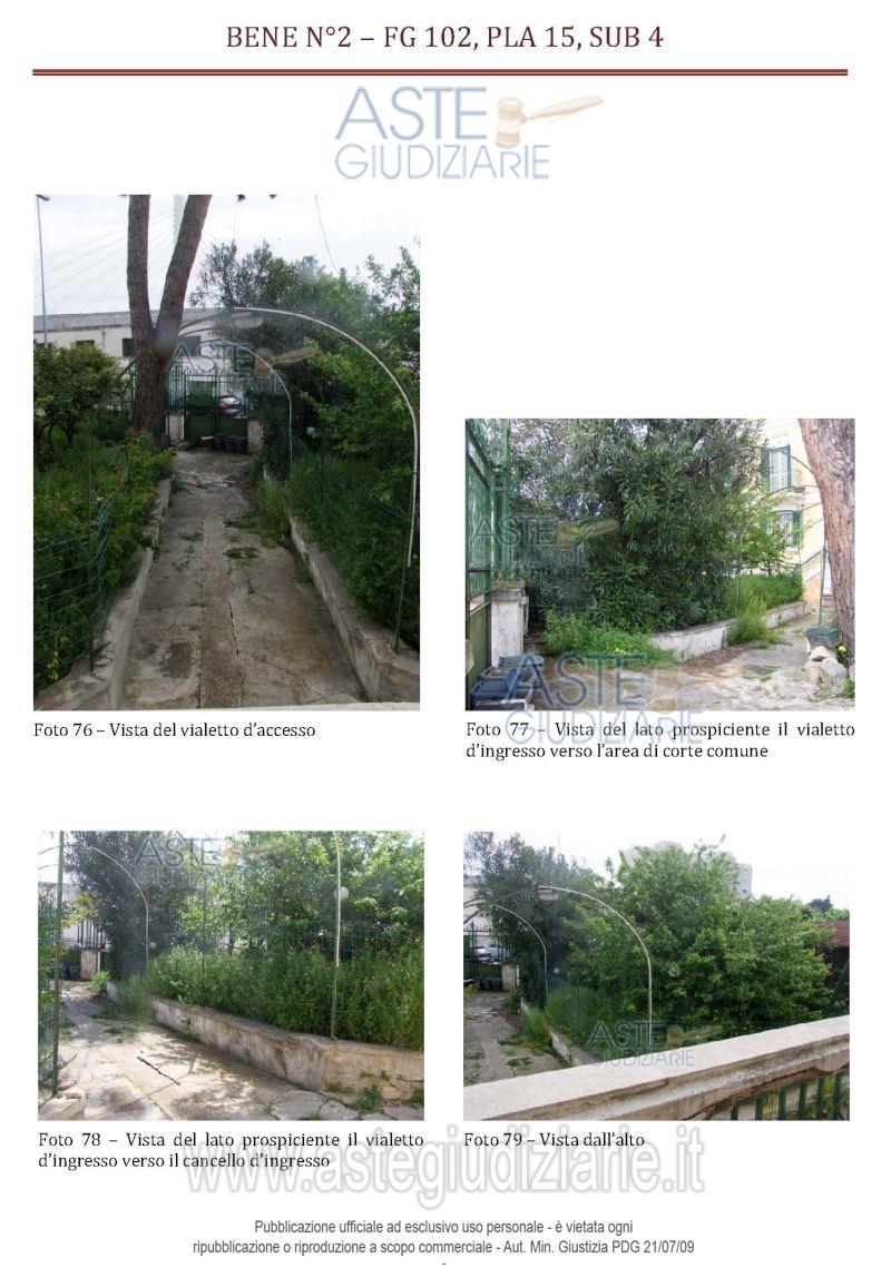 Vendita all'asta Senza incanto, con gara telematica asincrona - LOTTO UNICO: Lotto formato da: bene 1) appartamento a piano rialzato e seminterrato, composto da quattro ambienti, di cui uno con angolo cucina e vani accessori. Sono altresì vani accessori del bene di pertinenza esclusiva, tre vani deposito, ubicati al piano seminterrato, due di essi con accesso dalla corte esterna ed uno comunicante con l’appartamento tramite una botola; bene 2) area urbana utilizzata come area verde e costituente attinenza scoperta del bene n. 1. Prezzo base € 108.832,60 (offerta minima € 81.630,00). Data inizio operazioni di vendita: 23/07/2026 ore 17:00. Giudice Marisa Attollino. Professionista delegato alla vendita Avv. Domenico Pinto - Email "avv.domenico.pinto81@gmail.com". Custode Giudiziario Avv. Domenico Pinto - Email "avv.domenico.pinto81@gmail.com". Rif. Tribunale di Bari - Espropriazione immobiliare (cartabia) n. 58/2025