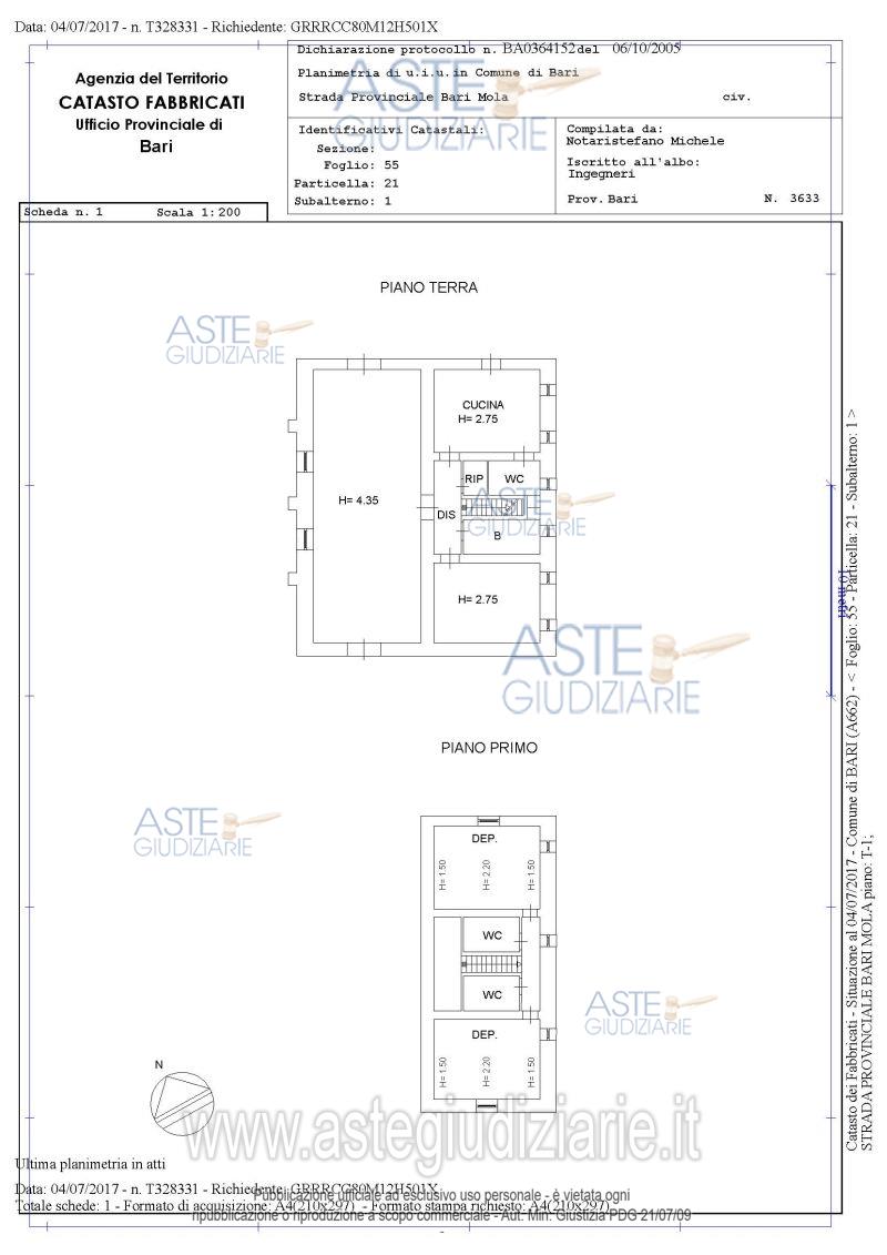 Vendita all'asta Senza incanto, con gara telematica asincrona - LOTTO 1: Villa in piena proprietà costituita da un fabbricato isolato adibito ad uso abitazione su due livelli con superficie pertinenziale scoperta. Al piano terra domina l’ampio spazio open space, tipo loft, adibito a soggiorno ad ampio soggiorno pranzo dal quale si accede ad un disimpegno che immette in cucina, una camera da letto e due servizi igienici con ventilazione naturale. Il piano primo è articolato in due camere da letto ognuna, con servizio di pertinenza con ventilazione forzata. Prezzo base € 381.000,00 (offerta minima € 285.750,00). Data inizio operazioni di vendita: 11/05/2026 ore 16:00. Giudice Dott. Marina Cavallo. Professionista delegato alla vendita Avv. Marco Montedoro - Email "studiomontedoro1@gmail.com". Custode Giudiziario Avv. Marco Montedoro - Email "studiomontedoro1@gmail.com". Rif. Tribunale di Bari - Esecuzione immobiliare post legge 80 n. 268/2017