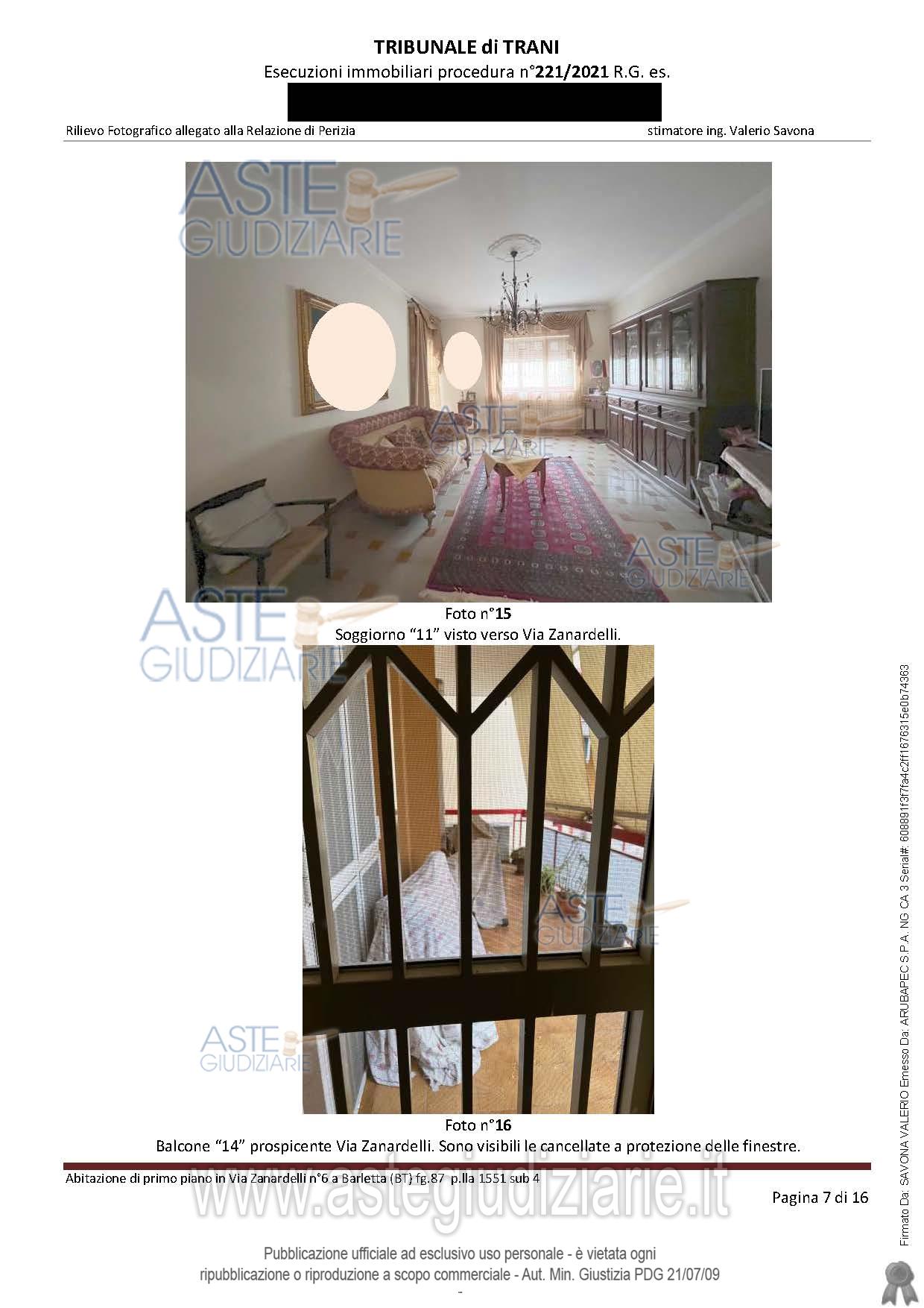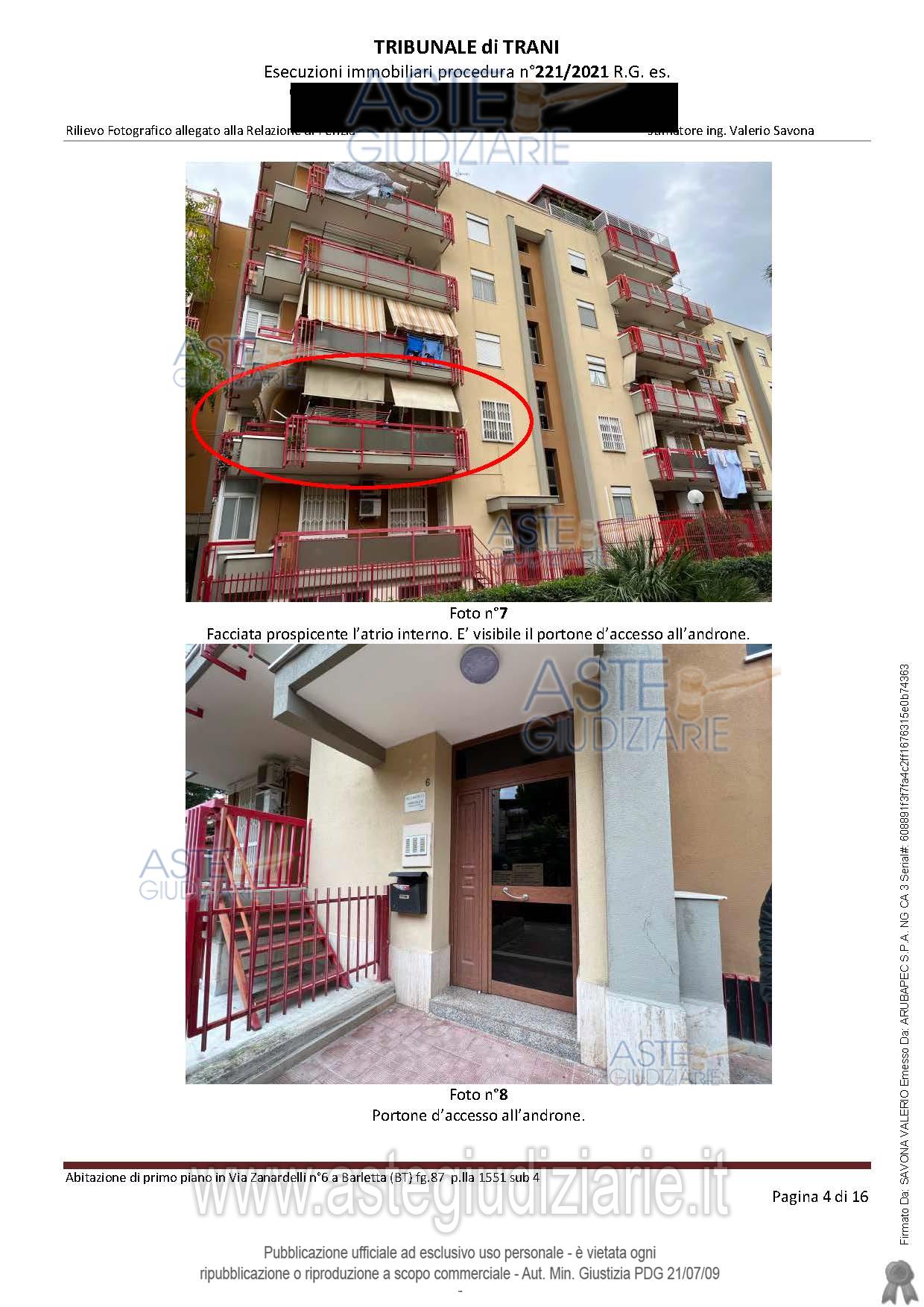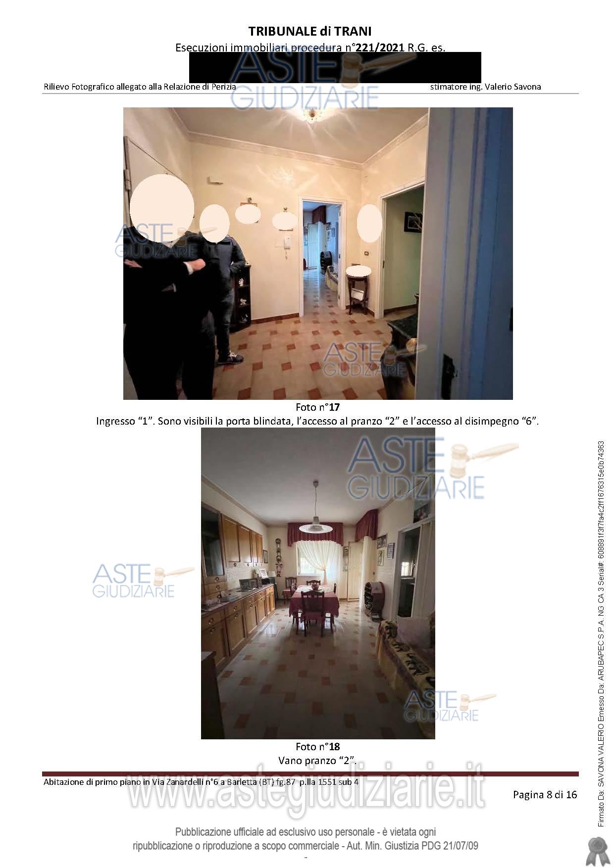 Vendita all'asta Senza incanto, con gara telematica sincrona - LOTTO 1: Appartamento in Barletta alla via Zanardelli n. 6, della superficie comm.le di 150, 62 mq. Prezzo base € 215.689,46 (offerta minima € 163.000,00). Data vendita 18/02/2026 ore 10:00. Professionista delegato alla vendita Avv. Pasqualinda Ippedico - Email "avv.lindaippedico@libero.it". Custode Giudiziario Avv. Pasqualinda Ippedico - Email "avv.lindaippedico@libero.it". Rif. Tribunale di Trani - Esecuzione immobiliare post legge 80 n. 221/2021