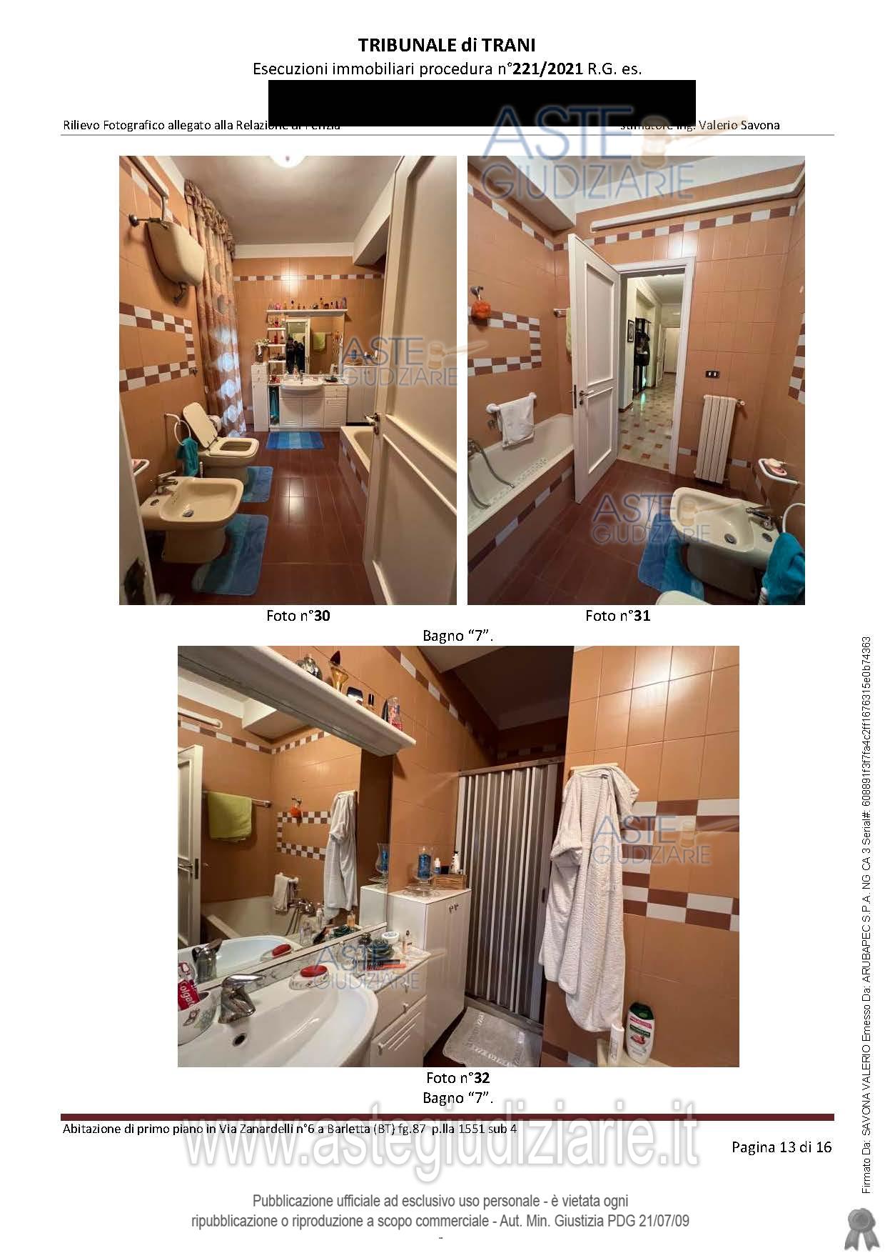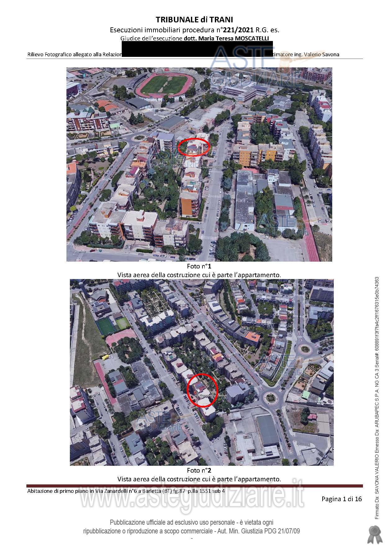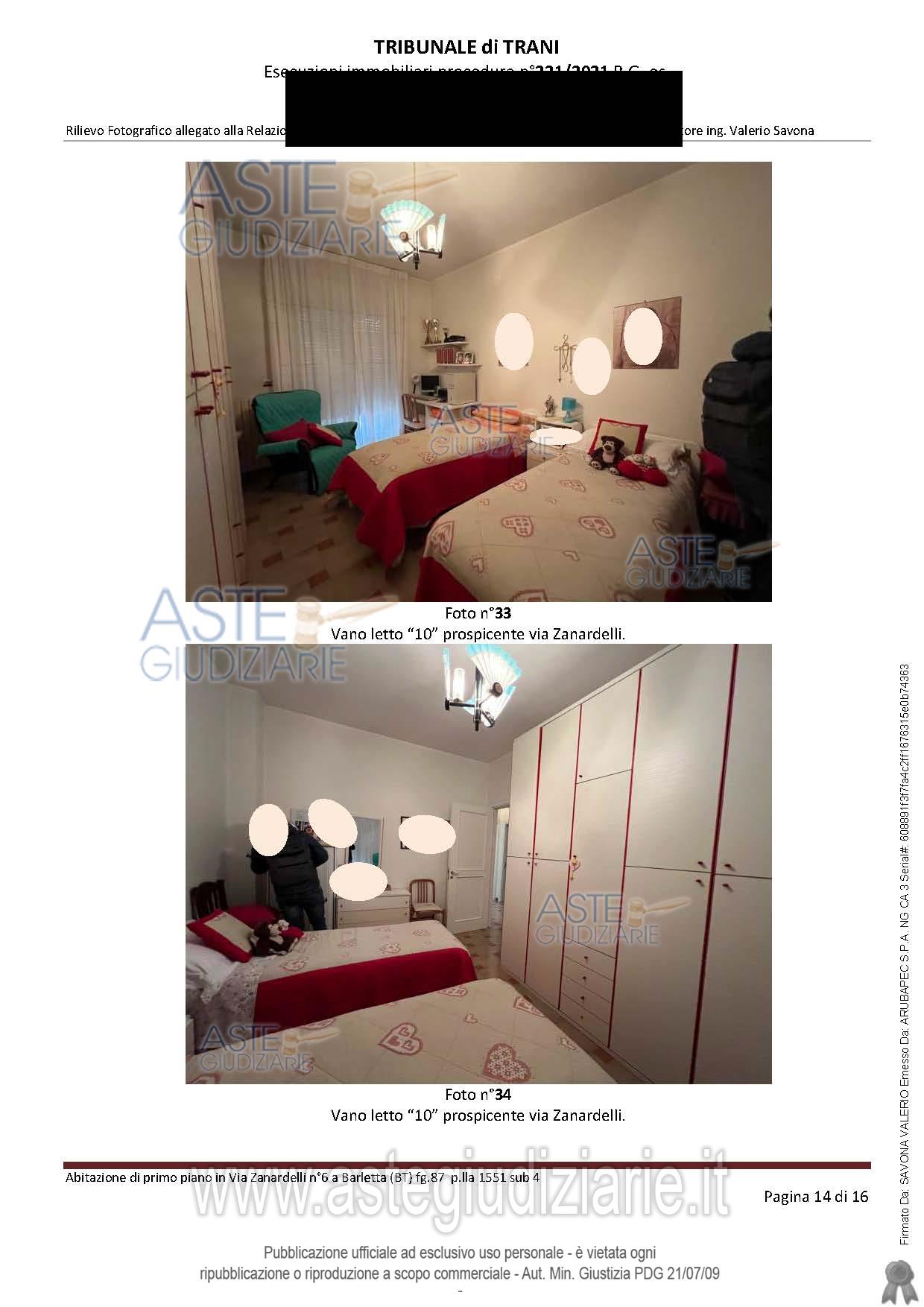 Vendita all'asta Senza incanto, con gara telematica sincrona - LOTTO 1: Appartamento in Barletta alla via Zanardelli n. 6, della superficie comm.le di 150, 62 mq. Prezzo base € 215.689,46 (offerta minima € 163.000,00). Data vendita 18/02/2026 ore 10:00. Professionista delegato alla vendita Avv. Pasqualinda Ippedico - Email "avv.lindaippedico@libero.it". Custode Giudiziario Avv. Pasqualinda Ippedico - Email "avv.lindaippedico@libero.it". Rif. Tribunale di Trani - Esecuzione immobiliare post legge 80 n. 221/2021