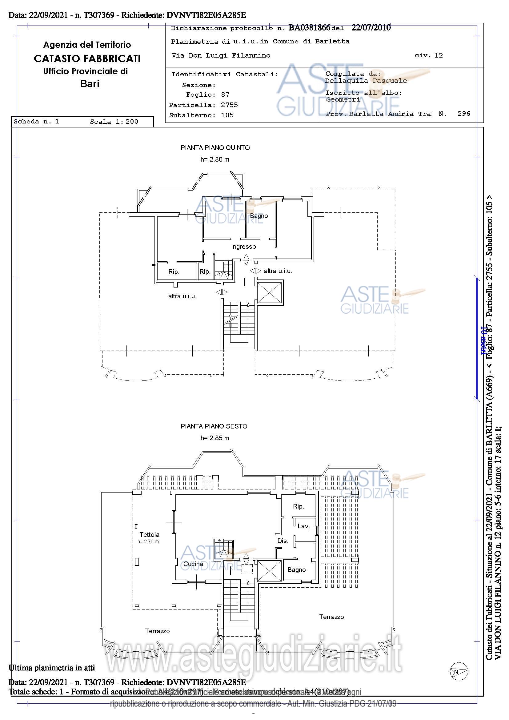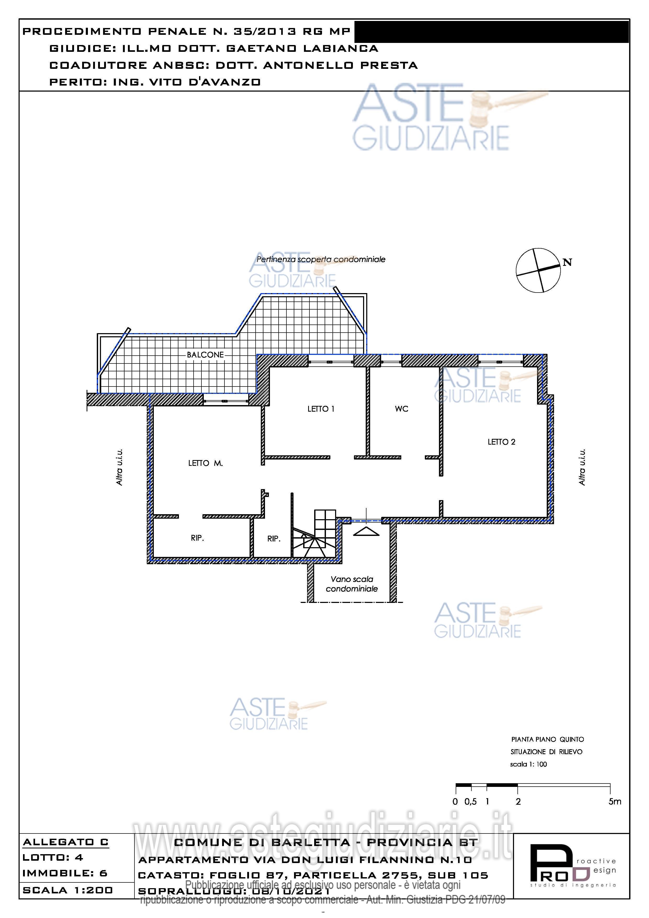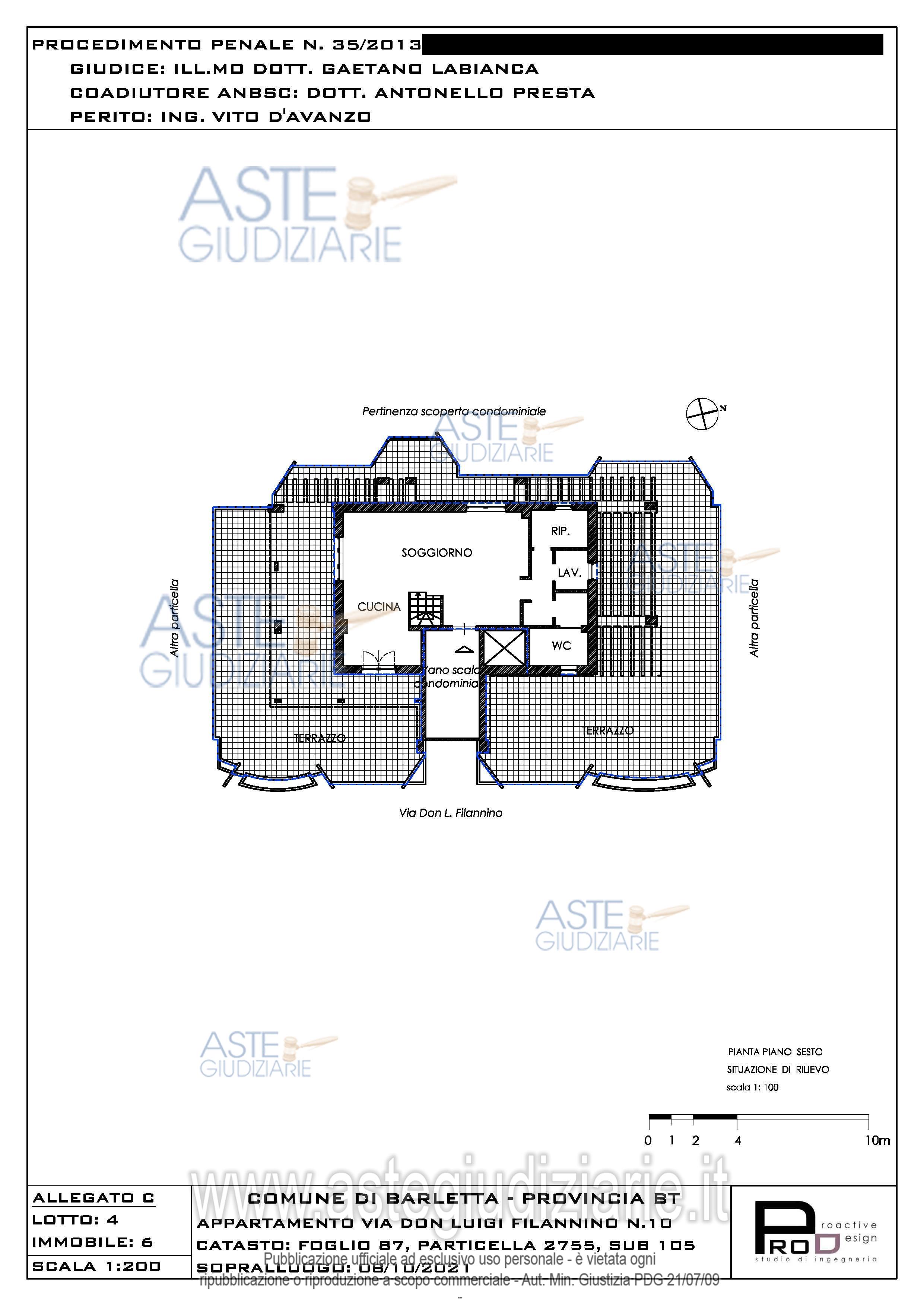 Vendita all'asta Senza incanto, con gara telematica asincrona - LOTTO 4.6: Full ownership rights of the apartment on the 5th-6th floor. Prezzo base € 370.000,00 (offerta minima € 277.500,00). Data inizio operazioni di vendita: 11/06/2026 ore 10:30. Professionista delegato alla vendita Dott. Antonello Presta - Tel. 099 7352924. Rif. Tribunale di Trani - Misura di prevenzione n. 35/2013