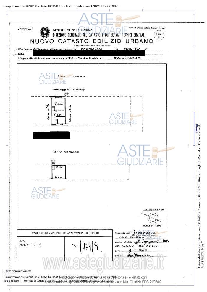 Vendita all'asta Senza incanto, con gara telematica asincrona - LOTTO 01: Piena proprietà – quota 1/1 – Immobile sito nel Comune di Baronissi (SA), alla via Trinità n. 33/F, distinto in catasto al foglio n. 3, p.lla n. 741, sub 41, piano terra, cat. A/2, cl. 3, vani 2,5, sup. catast. 39 mq., rendita € 129,11. Prezzo base € 35.000,00 (offerta minima € 26.250,00). Data inizio operazioni di vendita: 24/03/2026 ore 15:30. Professionista delegato alla vendita Avv. Serena Villamajna - Email "serenavillamajna@gmail.com"; Cell. 3475828703. Custode Giudiziario Avv. Serena Villamajna - Email "serenavillamajna@gmail.com"; Cell. 3475828703. Rif. Tribunale di Nocera Inferiore - Espropriazione immobiliare (cartabia) n. 181/2023