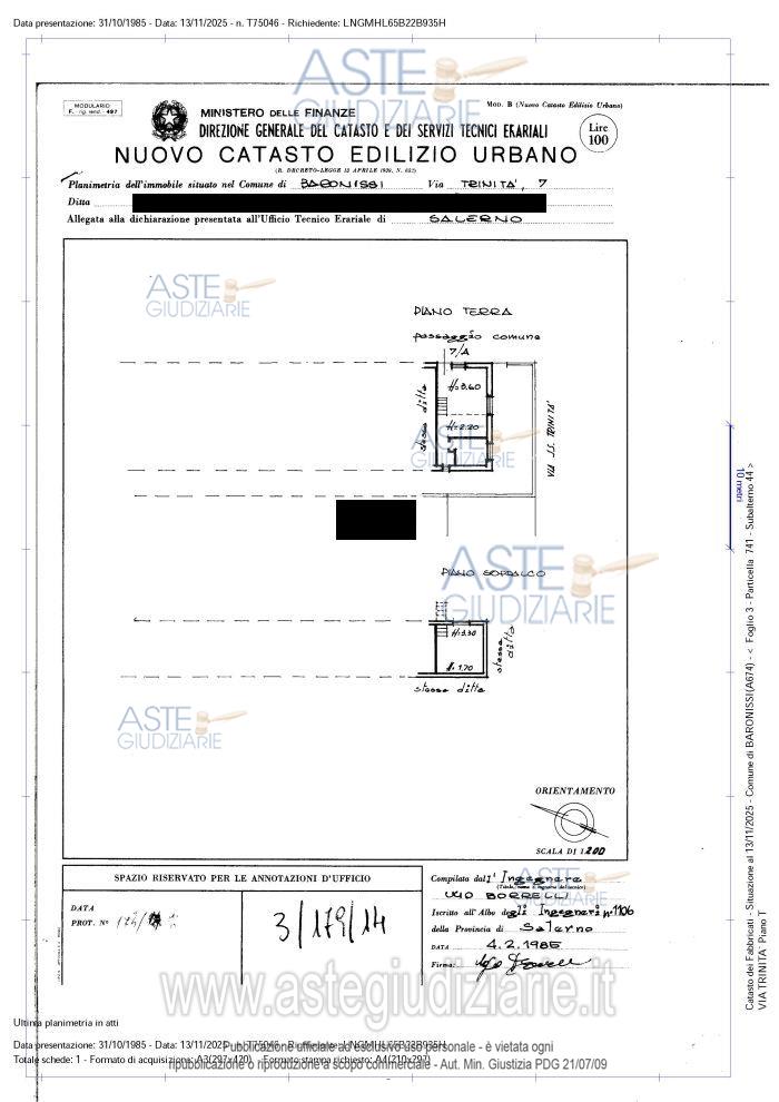 Vendita all'asta Senza incanto, con gara telematica asincrona - LOTTO 02: Piena proprietà – quota 1/1 – Immobile sito nel Comune di Baronissi (SA), alla via Trinità n. 33/A, distinto in catasto al foglio n. 3, p.lla n. 741, sub 44, piano terra, cat. A/2, cl. 3, vani 2,5, sup. cat. 43 mq., rendita € 129,11. Prezzo base € 39.000,00 (offerta minima € 29.250,00). Data inizio operazioni di vendita: 24/03/2026 ore 15:30. Professionista delegato alla vendita Avv. Serena Villamajna - Email "serenavillamajna@gmail.com"; Cell. 3475828703. Custode Giudiziario Avv. Serena Villamajna - Email "serenavillamajna@gmail.com"; Cell. 3475828703. Rif. Tribunale di Nocera Inferiore - Espropriazione immobiliare (cartabia) n. 181/2023