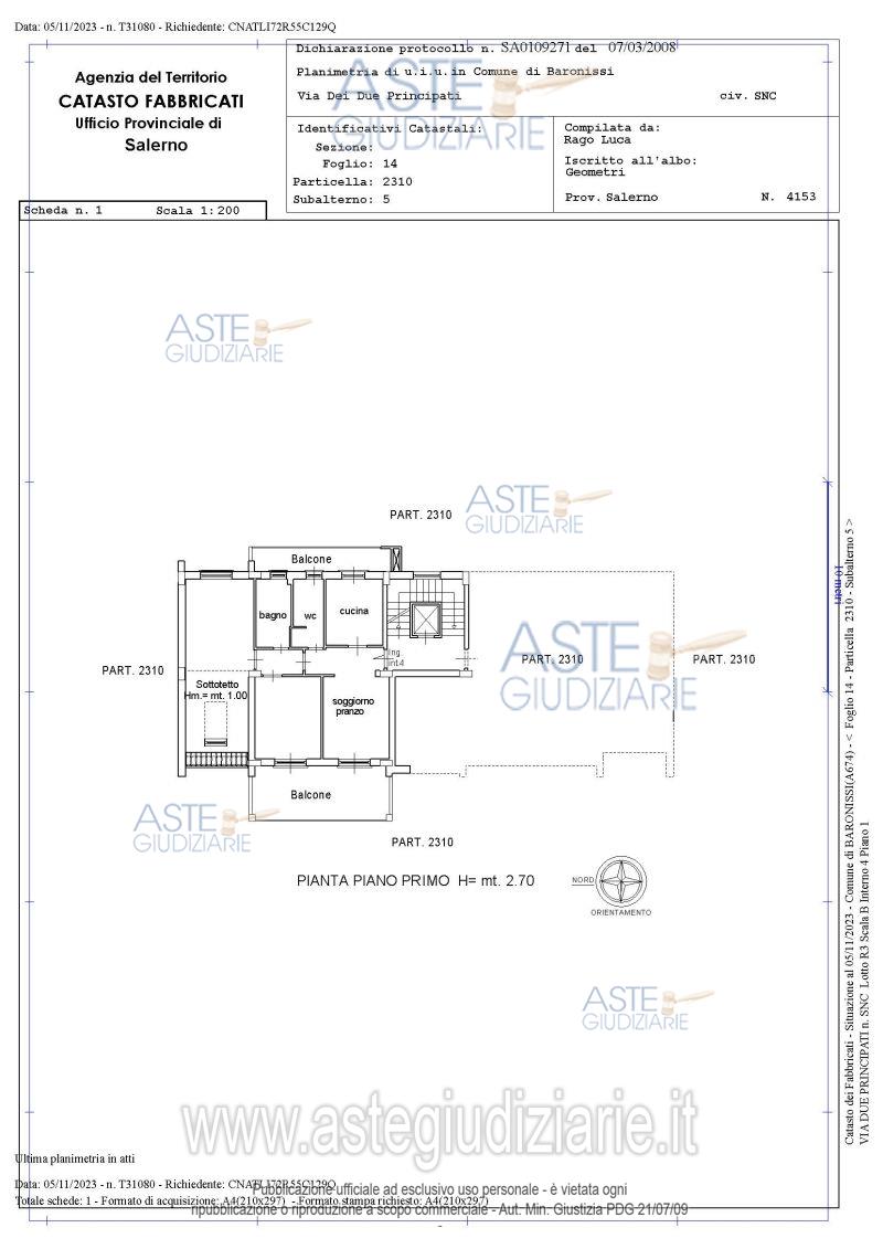 Vendita all'asta Senza incanto, con gara telematica asincrona - LOTTO 7: Piena proprietà di un appartamento al piano primo. Prezzo base € 148.500,00 (offerta minima € 111.375,00). Data inizio operazioni di vendita: 12/05/2026 ore 15:30. Giudice Dott. Pasquale Velleca. Professionista delegato alla vendita Avv. Francesco Mandara. Custode Giudiziario Avv. Francesco Mandara - Email "avvmandara@virgilio.it". Rif. Tribunale di Nocera Inferiore - Esecuzione immobiliare post legge 80 n. 97/2021
