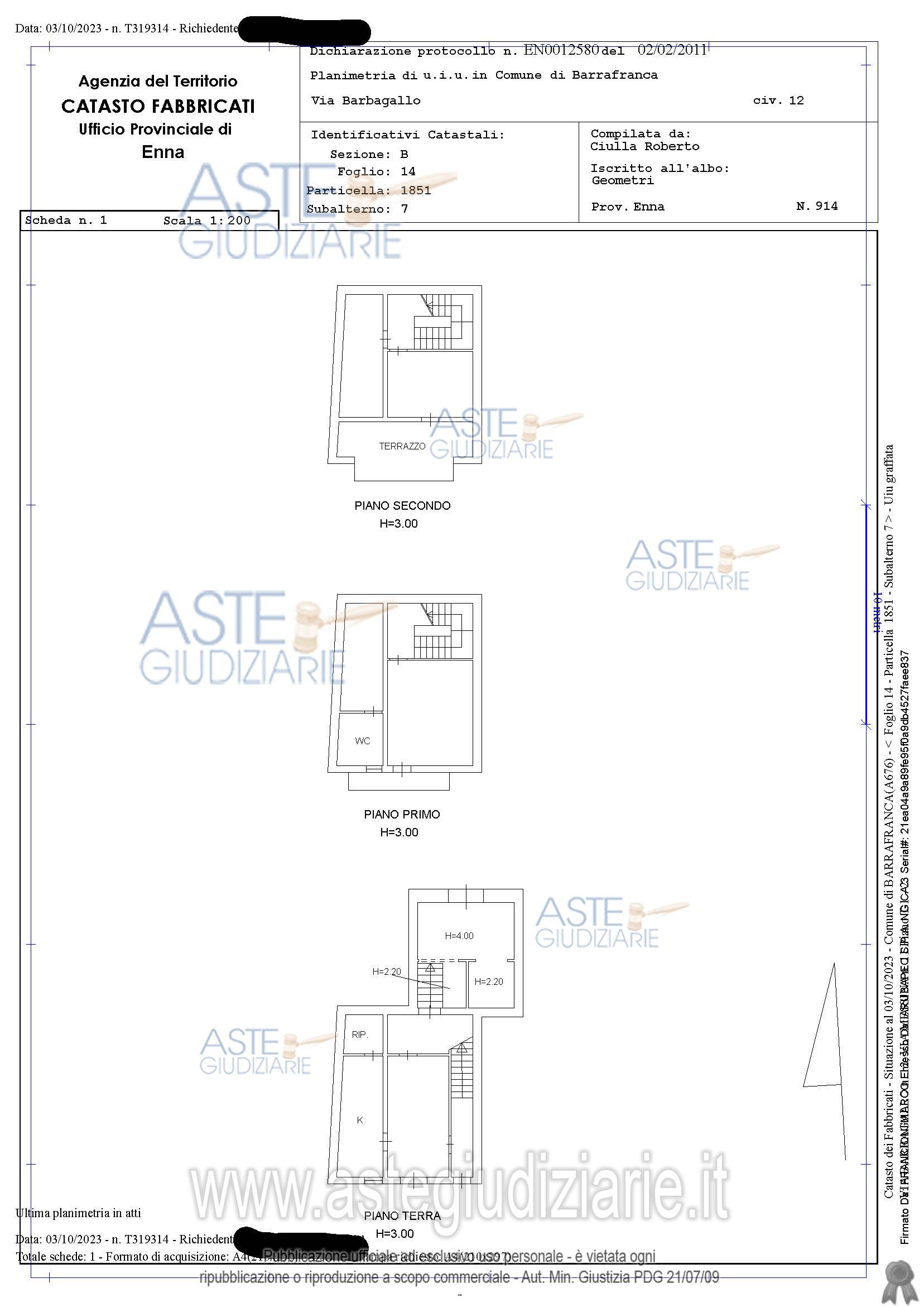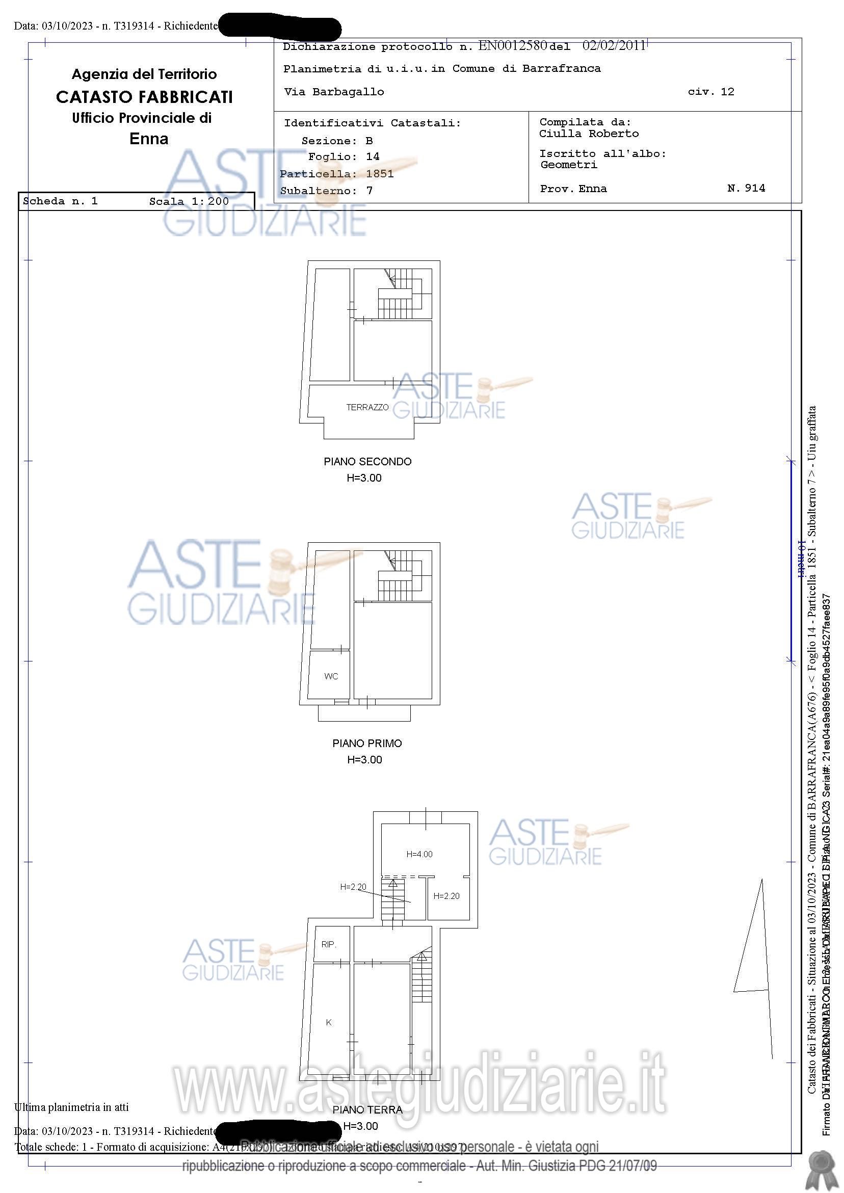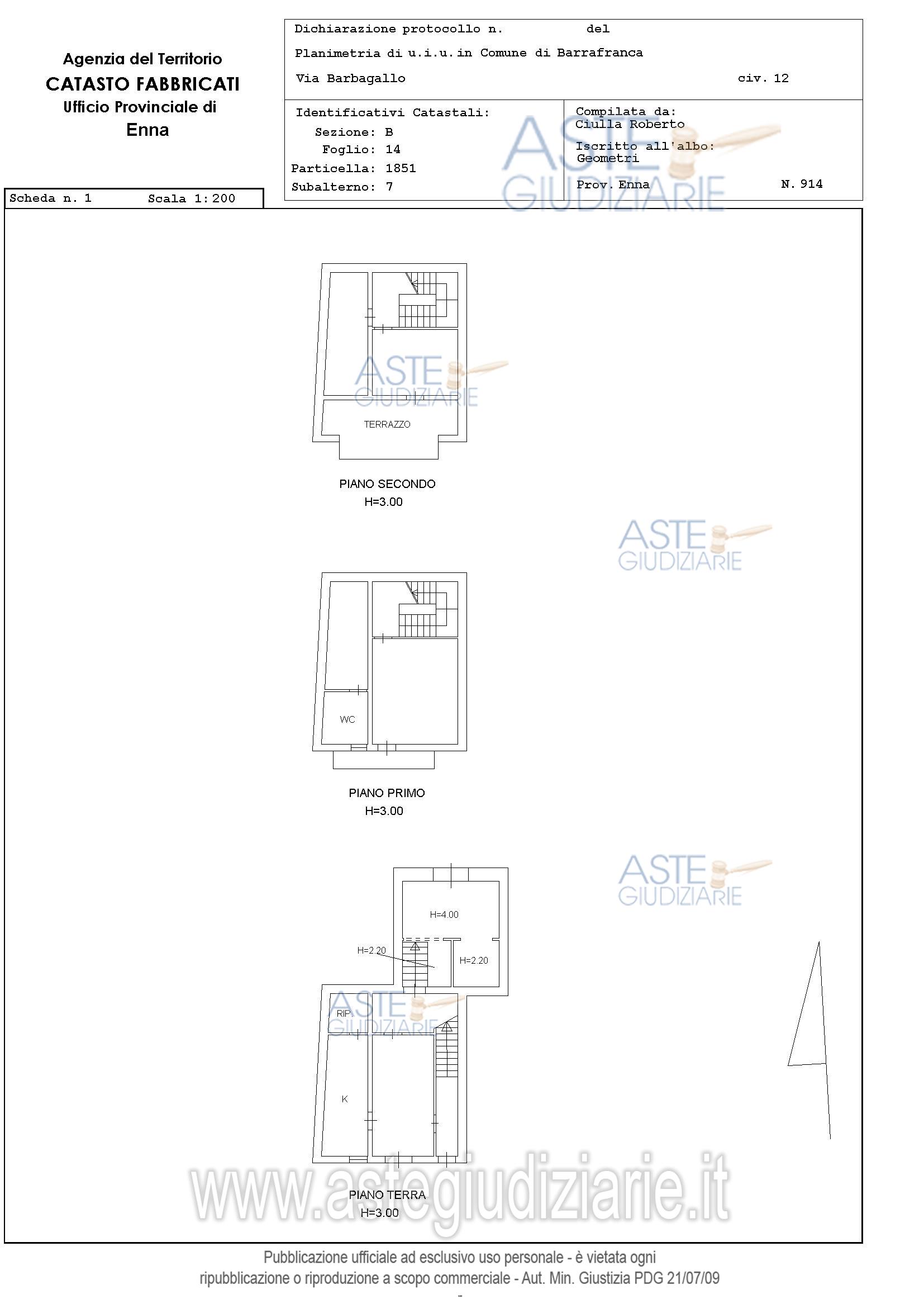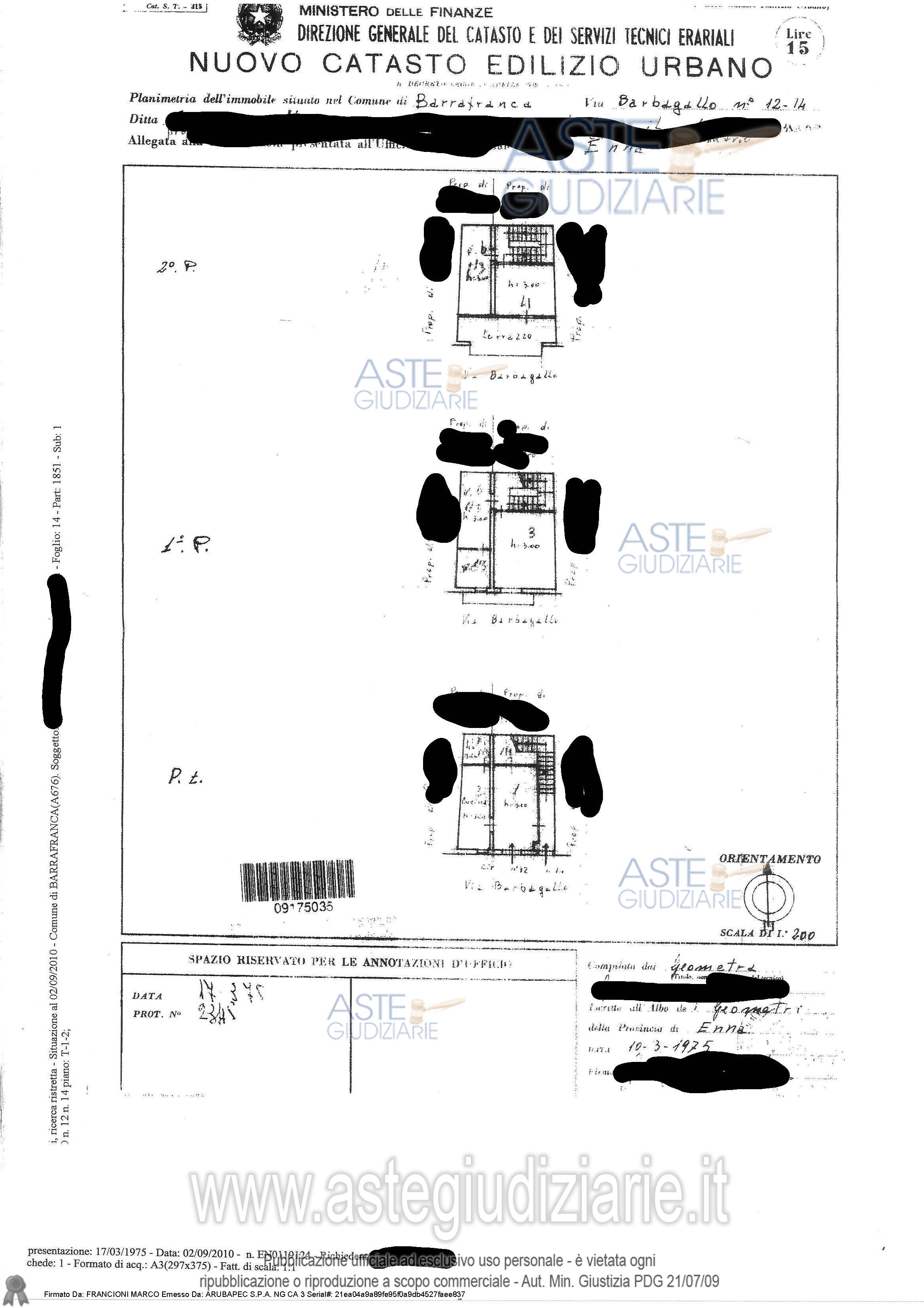 Vendita all'asta Senza incanto, con gara telematica sincrona mista - LOTTO UNICO: piena proprietà in comunione legale dell’immobile adibito a civile abitazione sito in Barrafranca (EN), Via Barbagallo, n. 12, con ingresso anche in Via Messana, n. 11, identificato al Catasto Fabbricati del Comune di Barrafranca al foglio 14, part. 1851, sub 7 graffata 1855 sub 5 (già censite al foglio 14, Sezione B, particella graffate 1851, sub 1 e 1853 e 1855 sub 3), piano T-1-2, cat A4, classe 3, vani 8,5, mq. 161 rendita 289,73. Prezzo base € 16.359,00 (offerta minima € 12.270,00). Data vendita 16/06/2026 ore 10:00. Professionista delegato alla vendita Avv. Giuseppe Muscarà - Email "studiolegalemuscara@gmail.com"; Tel. 3389909452. Custode Giudiziario Avv. Giuseppe Muscarà - Email "studiolegalemuscara@gmail.com"; Tel. 3389909452. Rif. Tribunale di Enna - Esecuzione immobiliare post legge 80 n. 21/2023