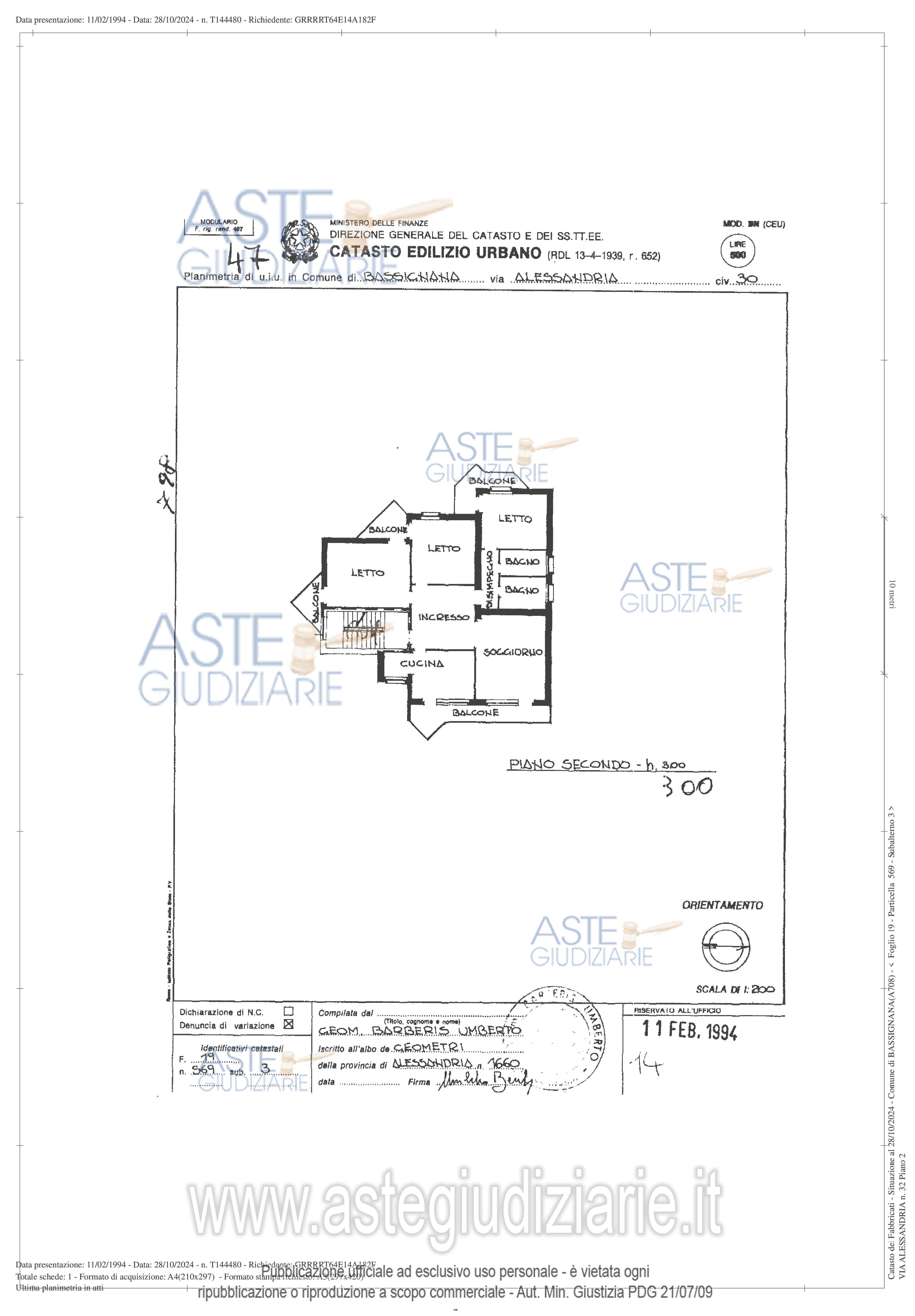 Vendita all'asta Senza incanto, con gara telematica asincrona - LOTTO 001: CORPO A: piena proprietà di appartamento 2P fuori terra, in palazzina del 1967; senza ascensore; 6,5 vani; 159 mq; occupato da debitore; CORPO B: piena proprietà di box-auto, 1 di 3 al servizio della palazzina, accesso mediante portone basculante; 16 mq; occupato da debitore; CORPO C: piena proprietà di cantina seminterrata a cui si accede da vano e scala comune, in quanto gravata da servitù di passo dell'adiacente altra cantina identificata al sub. 12, di altra proprietà; 15 mq.; occupata da debitore. Prezzo base € 47.820,00 (offerta minima € 35.865,00). Data inizio operazioni di vendita: 13/05/2026 ore 15:00. Giudice Dott. Roberta Brera. Professionista delegato alla vendita Avv. Elisa Carrea - Email "eli.carrea@gmail.com"; Cell. 3493623954; Tel. 3493623954. Custode Giudiziario Avv. Elisa Carrea - Email "eli.carrea@gmail.com"; Cell. 3493623954; Tel. 3493623954. Rif. Tribunale di Alessandria - Espropriazione immobiliare (cartabia) n. 242/2024