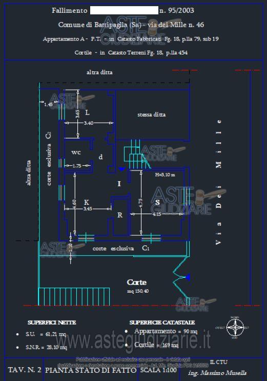 Vendita all'asta Senza incanto, con gara telematica asincrona - LOTTO 2: Undivided quota equal to 1/3 (one third) of the full and complete ownership of an apartment with attached land, located on the ground floor of a larger building. Prezzo base € 32.000,00 (offerta minima € 24.000,00). Data inizio operazioni di vendita: 11/02/2026 ore 11:00. In caso di più offerte valide si procederà a gara che inizierà il 11/02/2026 ore 11:00 e terminerà il 18/02/2026 ore 12:00. Giudice Dott. Giuseppina Valiante. Professionista delegato alla vendita Avv. Edmondo Caprio - Tel. 089-232880. Curatore Avv. Edmondo Caprio. Rif. Tribunale di Salerno - Fallimentare n. 95/2003