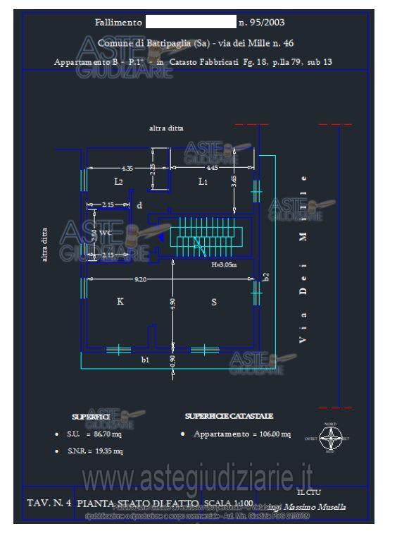 Vendita all'asta Senza incanto, con gara telematica asincrona - LOTTO 4: Propriété pleine et parfaite de l'appartement à usage d'habitation civile, situé au premier étage du plus grand bâtiment, composé de : une entrée/un couloir, une cuisine/salon, deux chambres à coucher et une salle de bain, ainsi que deux balcons. Prezzo base € 116.500,00 (offerta minima € 87.375,00). Data inizio operazioni di vendita: 11/02/2026 ore 11:00. In caso di più offerte valide si procederà a gara che inizierà il 11/02/2026 ore 11:00 e terminerà il 18/02/2026 ore 12:00. Giudice Dott. Giuseppina Valiante. Professionista delegato alla vendita Avv. Edmondo Caprio - Tel. 089-232880. Curatore Avv. Edmondo Caprio. Rif. Tribunale di Salerno - Fallimentare n. 95/2003