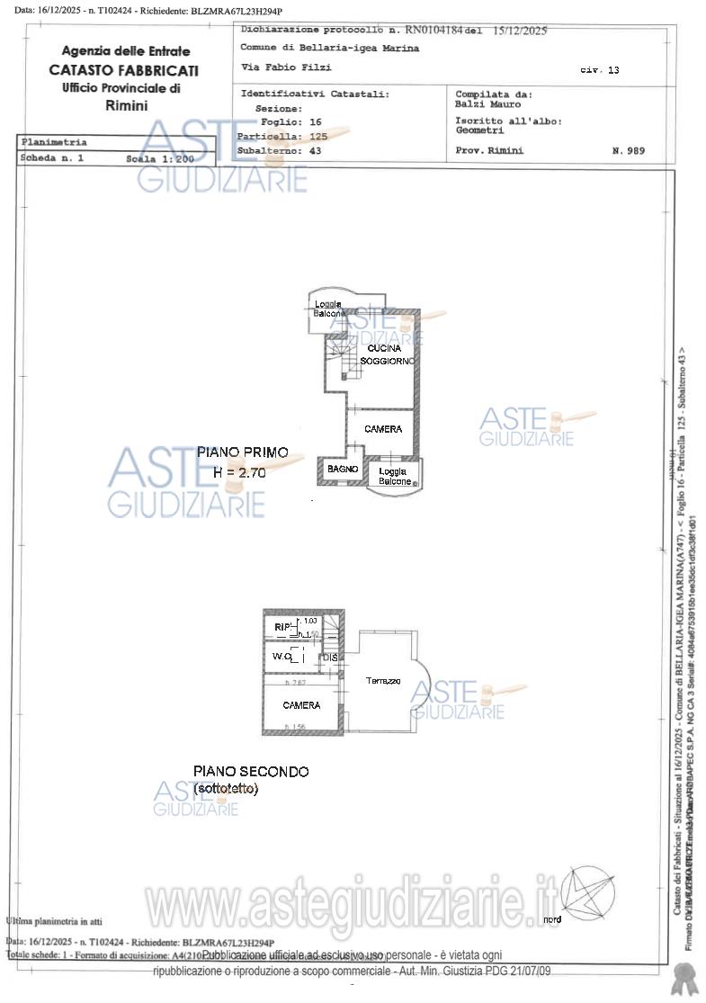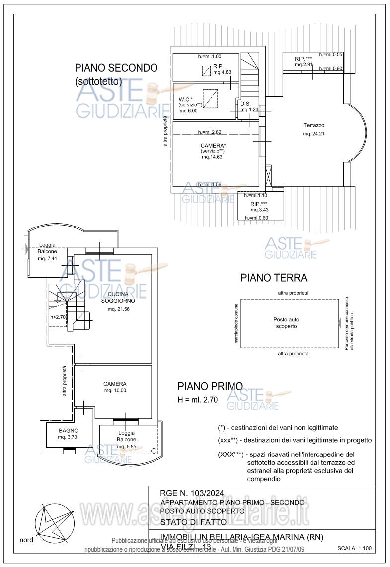 Vendita all'asta Senza incanto, con gara telematica asincrona - LOTTO UNICO: Piena proprietà di porzioni del fabbricatourbano plurifamiliare facente parte di un complesso residenziale denominato "Residence Arcobaleno" sito in Bellaria Igea Marina Via Filzi 13 e precisamente un appartamento ad uso civile abitazione sito ai piani primo e secondo (sottotetto), oltre a posto auto scoperto. Prezzo base € 159.000,00 (offerta minima € 119.250,00). Data inizio operazioni di vendita: 08/04/2026 ore 09:30. Giudice Letizia Bocchini. Professionista delegato alla vendita Not. Andrea Aquilina - Email "esecuzioni@notaioaquilina.it"; Tel. 054154139. Custode Giudiziario Not. Andrea Aquilina - Email "esecuzioni@notaioaquilina.it"; Tel. 054154139. Rif. Tribunale di Rimini - Espropriazione immobiliare (cartabia) n. 103/2024