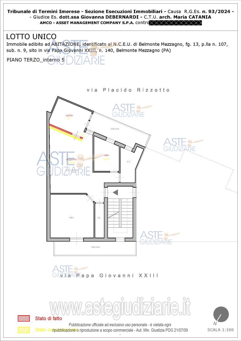 Vendita all'asta Senza incanto, con gara telematica sincrona - LOTTO UNICO: Piena proprietà dell'appartamento posto al terzo piano di un corpo di fabbrica a più elevazioni fuori terra ubicato in Belmonte Mezzagno Via Papa Giovanni XXIII n. 140 int. 5. Identificato in catasto foglio 13 part. 107 sub. 9. Prezzo base € 28.666,88 (offerta minima € 21.500,16). Data vendita 10/03/2026 ore 10:00. Professionista delegato alla vendita Avv. Antonia Virruso - Email "avv.antonellavirruso@yahoo.it"; Tel. 091 969 140. Custode Giudiziario Avv. Antonia Virruso - Email "avv.antonellavirruso@yahoo.it"; Tel. 091 969 140. Rif. Tribunale di Termini Imerese - Esecuzione immobiliare n. 93/2024