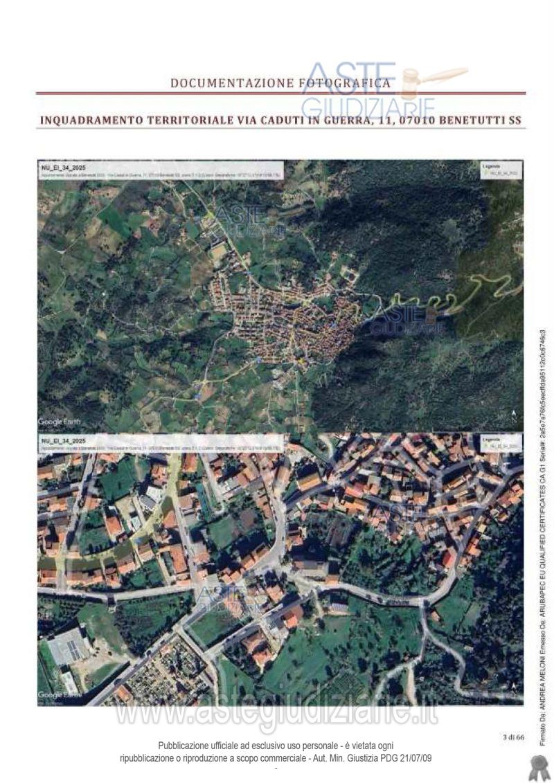 Vendita all'asta Senza incanto, con gara telematica asincrona - LOTTO UNICO: Appartamento al primo piano in Benetutti -, Identificato al catasto Fabbricati Fg. 19, Part. 127, Sub. 2, Categoria A3 e Magazzino al piano terra Fg. 19, Part. 127, Sub. 1, Categoria C2.Condizioni conservative complessivamente buone, con alcune criticità che necessitano di interventi di manutenzione e ristrutturazione parziale negli impianti e strutture. Incompleta corrispondenza con la planimetria catastale Risulta attualmente occupato.Viene posto in vendita per il diritto di Proprietà 1/1. Prezzo base € 203.000,00 (offerta minima € 153.000,00). Data inizio operazioni di vendita: 12/05/2026 ore 16:30. Giudice Dott. Denise Ecca. Professionista delegato alla vendita Avv. Avv. Marilena Bruno - Email "avv.marilenabruno@gmail.com"; Tel. 0784235016. Custode Giudiziario Ivg Tempio Pausania - Email "visite.ivgnuoro@gmail.com"; Tel. 079630505. Rif. Tribunale di Nuoro - Espropriazione immobiliare (cartabia) n. 34/2025