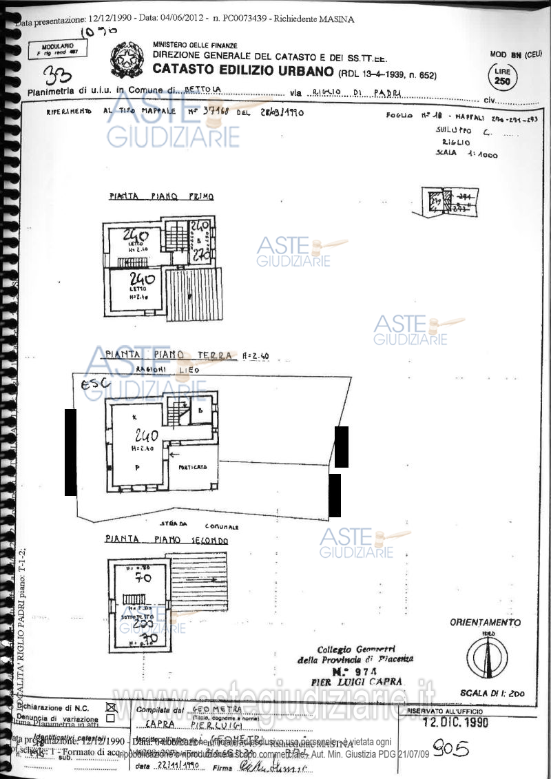 Vendita in attesa dell'emissione del nuovo bando d'asta. LOTTO 3: LOTTO C: Piena proprietà di fabbricato da cielo a terra ad uso alloggio sviluppato su tre livelli (piano terra, primo e sottotetto) con area esterna di pertinenza. Ultimo prezzo base € 51.188,00 (offerta minima € 38.391,00). Giudice Esecuzione Giudice. Professionista delegato alla vendita Not. Massimo Toscani - Email "mtoscani@notariato.it". Custode Giudiziario Dott. Istituto Vendite Giudiziarie Di Parma E Piacenza - Email "immobiliparma@ivgparma.it"; Tel. 0521273762. Rif. Tribunale di Piacenza - Esecuzione immobiliare post legge 80 n. 328/2011