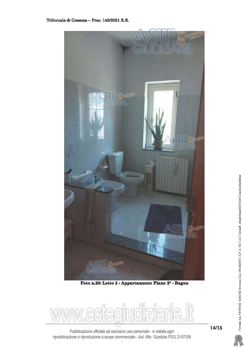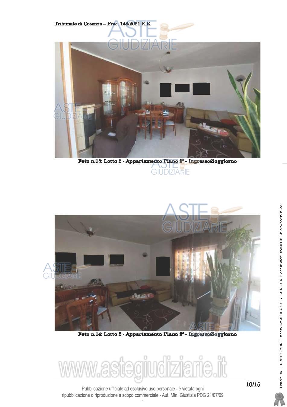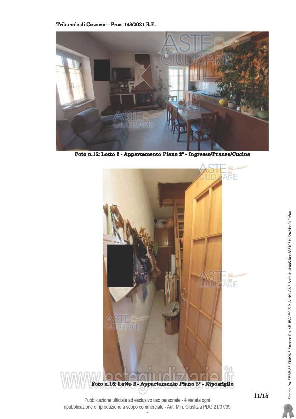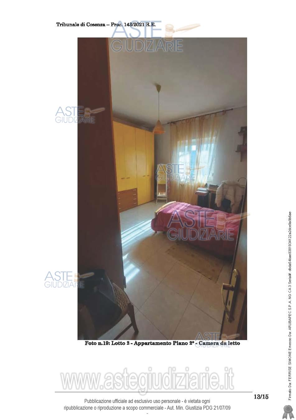 Vendita in attesa dell'emissione del nuovo bando d'asta. LOTTO 2: Unità abitativa disposta su un unico livello al piano secondo (piano primo fronte strada) composta da 150 mq abitabili, balconi/balconate di 26,80. L'appartamento risulta composto da cucina/pranzo soggiorno bagno corridoio, 3 camere, lavanderia. Ultimo prezzo base € 38.002,40 (offerta minima € 28.501,80). Giudice Dott. Assunta Gioia. Professionista delegato alla vendita Avv. Pierpaolo Giardino - Email "pierpaologiardino@tiscali.it"; Tel. 3295897842. Custode Giudiziario Avv. Pierpaolo Giardino - Email "pierpaologiardino@tiscali.it"; Tel. 3295897842. Rif. Tribunale di Cosenza - Esecuzione immobiliare post legge 80 n. 143/2021