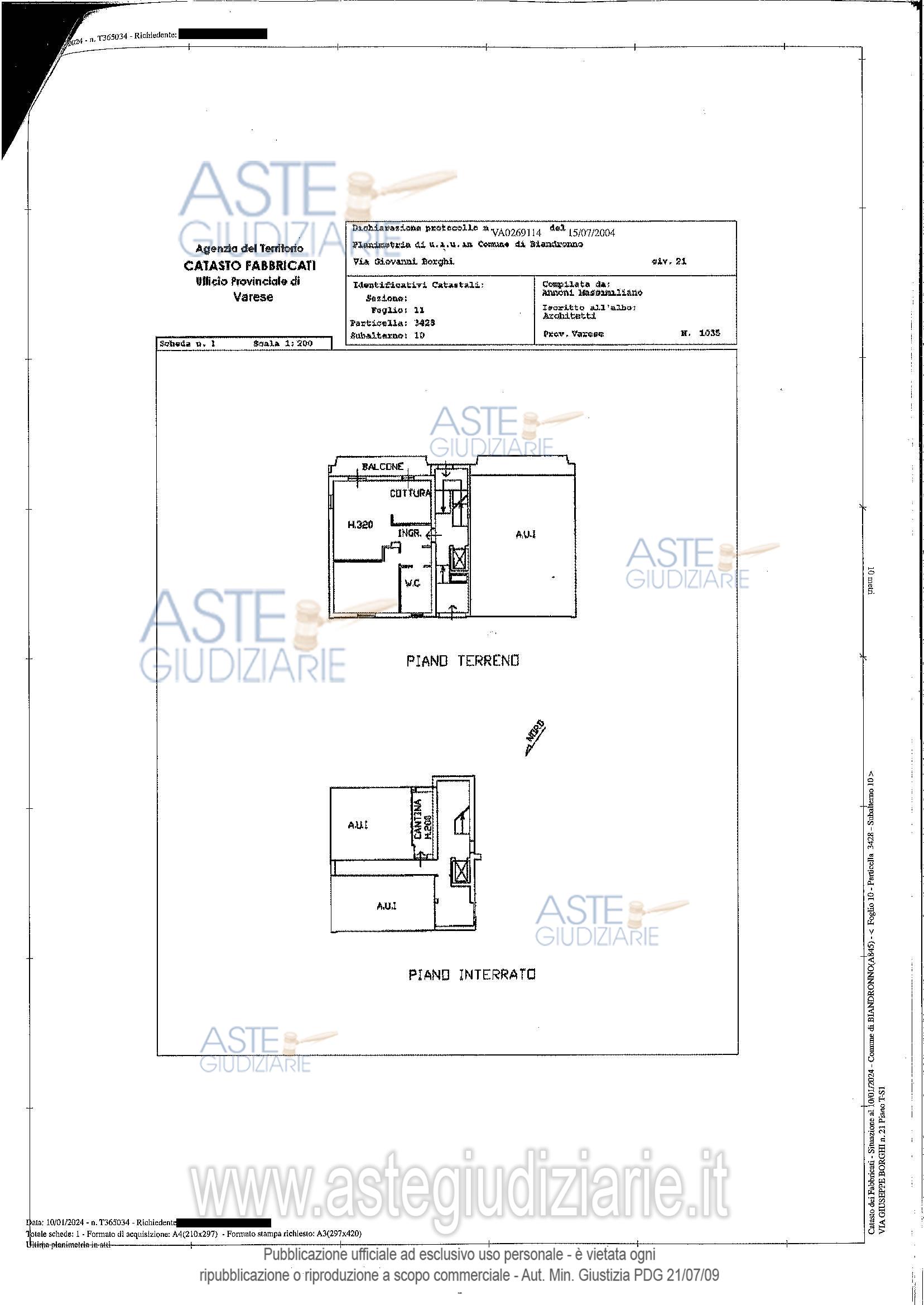 Vendita all'asta Senza incanto, con gara telematica sincrona mista - LOTTO 1: appartamento composto da soggiorno/cucina, una camera, disimpegno, bagno e balcone; un locale cantina e un posto auto pertinenziale. Maggiori informazioni sul Portale delle Vendite. Prezzo base € 40.960,00 (offerta minima € 30.720,00). Data vendita 21/01/2026 ore 09:30. Giudice Flaminia Dangelo. Professionista delegato alla vendita Not. Andrea Giannini - Email "agiannini@notariato.it". Custode Giudiziario Givg Srl - Email "visite.ba@givg.it"; Tel. 0332335510. Rif. Tribunale di Varese - Espropriazione immobiliare (cartabia) n. 138/2023