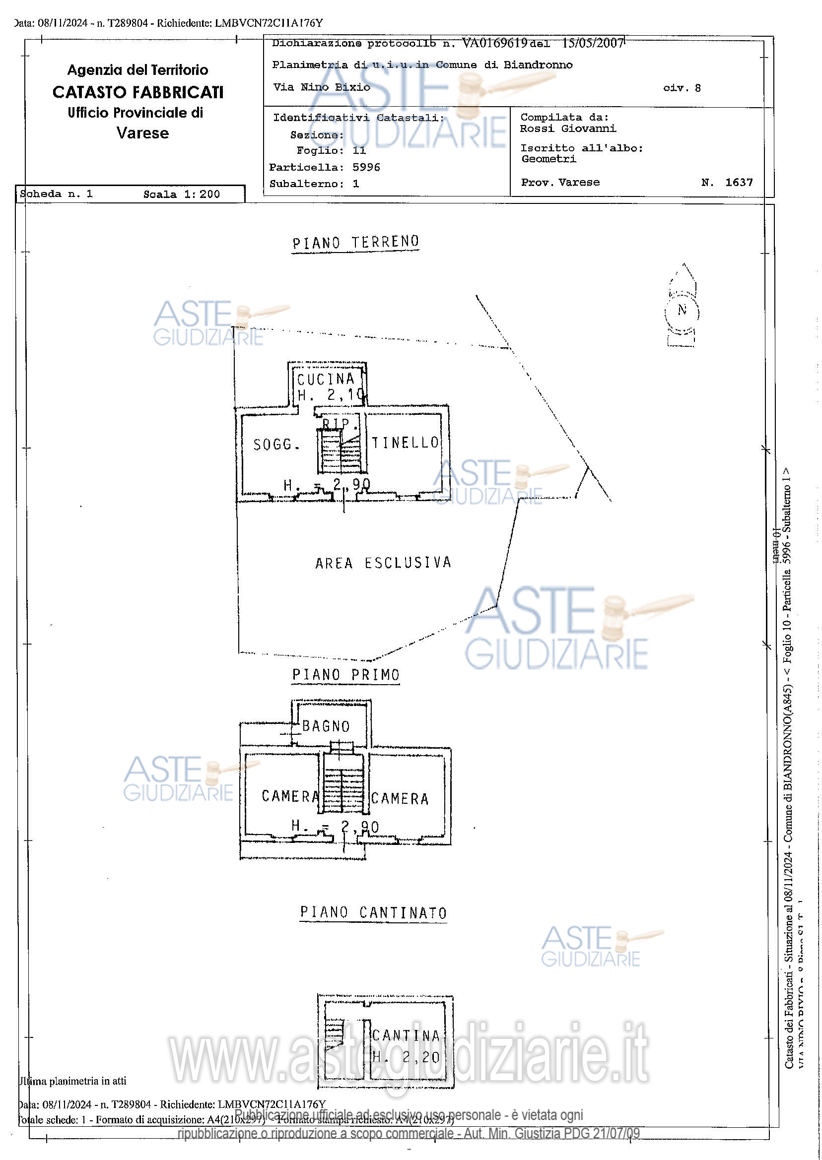 Vendita all'asta Senza incanto, con gara telematica sincrona mista - LOTTO 1: unità abitativa disposta su due piani composta da: soggiorno, cucina, bagno e dispensa al piano terra e da due camere e un bagno al piano primo, sottotetto, rustico non abitabile, una cantina inter. Prezzo base € 106.400,00 (offerta minima € 79.800,00). Data vendita 26/11/2025 ore 09:30. Giudice Dott. Flaminia D'angelo. Professionista delegato alla vendita Not. Andrea Giannini - Email "agiannini@notariato.it". Custode Giudiziario Givg Srl - Email "immobiliari.va@givg.it"; Tel. 0332335510. Rif. Tribunale di Varese - Espropriazione immobiliare (cartabia) n. 121/2024