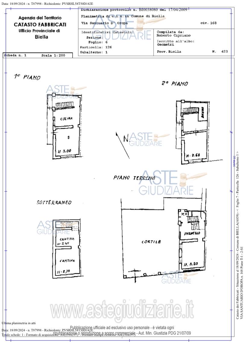 Vendita all'asta Senza incanto, con gara telematica asincrona - LOTTO UNICO: Fabbricato di civile abitazione elevato a tre piani fuori terra oltre al piano interrato entrostante area cortilizia (Ente Urbano) composto al primo piano dalla zona giorno con la cucina, soggiorno. Prezzo base € 26.072,25 (offerta minima € 19.554,19). Data inizio operazioni di vendita: 05/05/2026 ore 15:00. Professionista delegato alla vendita Avv. Benedetta Rondano - Email "avv.benedettarondano@gmail.com"; Tel. 3497773066. Custode Giudiziario Avv. Benedetta Rondano - Email "avv.benedettarondano@gmail.com"; Tel. 3497773066. Rif. Tribunale di Biella - Espropriazione immobiliare (cartabia) n. 69/2024