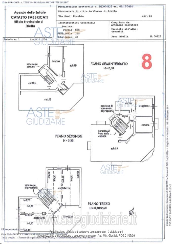 Vendita all'asta Senza incanto, con gara telematica asincrona - LOTTO 4: Appartamento al piano secondo di ingresso, bagno, cucina abitabile, soggiorno, una camera da letto e due balconi con ampio doppio locale sottotetto al piano terzo e adiacente al fabbricato condominiale, area libera recintata con piccolo fabbricato adibito a tettoia con locale deposito. Prezzo base € 52.256,25 (offerta minima € 39.192,19). Data inizio operazioni di vendita: 17/03/2026 ore 15:15. Giudice Emanuele Migliore. Professionista delegato alla vendita Avv. Marco Romano - Email "info@centroasteimmobiliari.it"; Tel. 0150991500. Custode Giudiziario Avv. Marco Romano - Email "info@centroasteimmobiliari.it"; Tel. 0150991500. Rif. Tribunale di Biella - Espropriazione immobiliare (cartabia) n. 4/2025