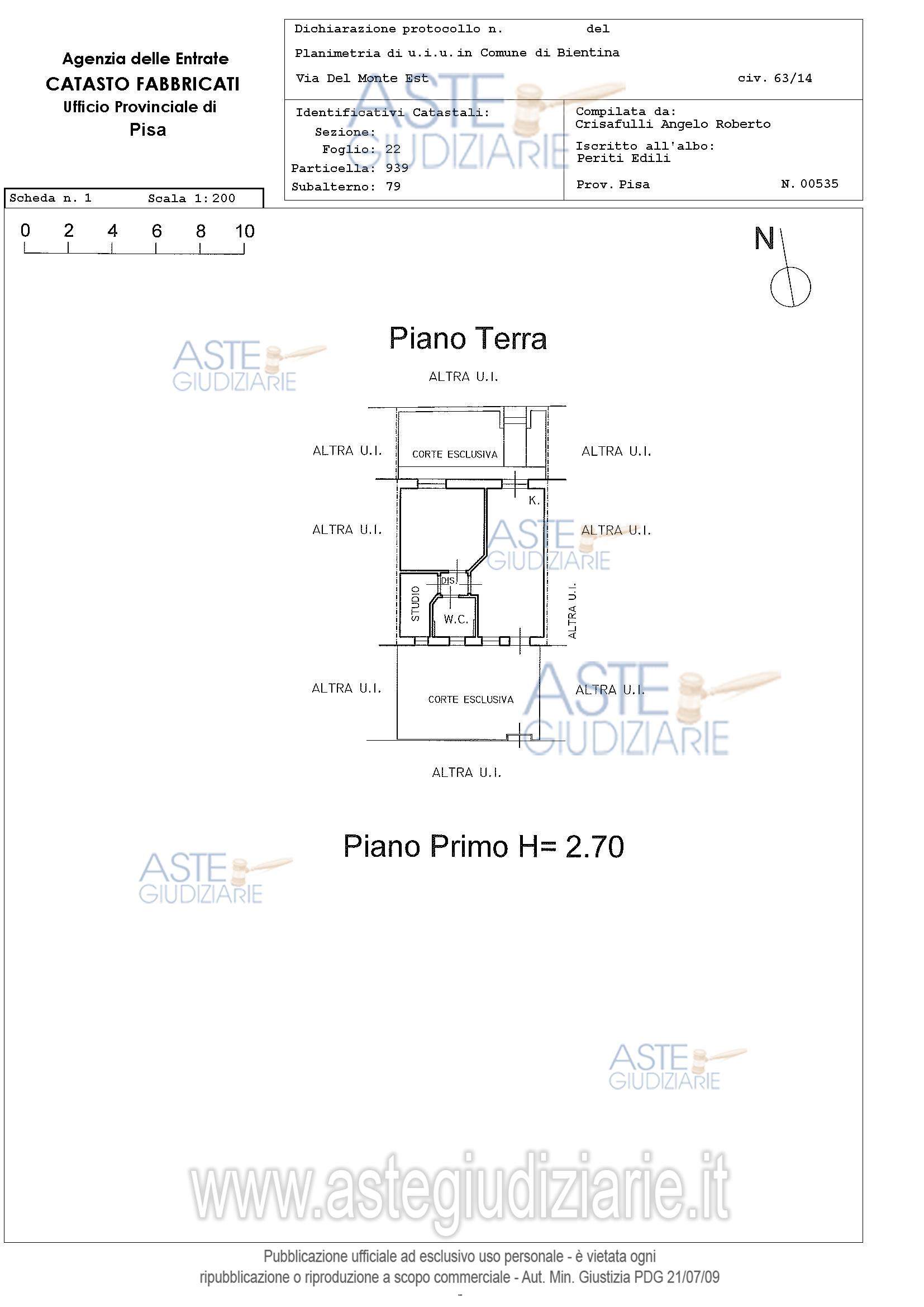 Vendita all'asta Senza incanto, con gara telematica asincrona - LOTTO 2: Appartamento di civile abitazione sito al piano primo composto da ingresso-soggiorno-cottura, disimpegno notte, bagno, studio, camera, con due corti esclusive. Corredato, quali pertinenze, da posto auto coperto e locale di sgombero esclusivi, ubicati al piano terra del medesimo edificio. Prezzo base € 51.000,00 (offerta minima € 38.250,00). Data inizio operazioni di vendita: 22/01/2026 ore 10:00. Professionista delegato alla vendita Dott. Sandro Sgalippa - Email "sandrosgalippa@roventinisgalippa.it"; Tel. 050501200. Custode Giudiziario Dott. Cosimo Erriquez - Email "prenotazionipisa@astagiudiziaria.com"; Cell. 3468748140; Tel. 050554790. Rif. Tribunale di Pisa - Esecuzione immobiliare post legge 80 n. 206/2022