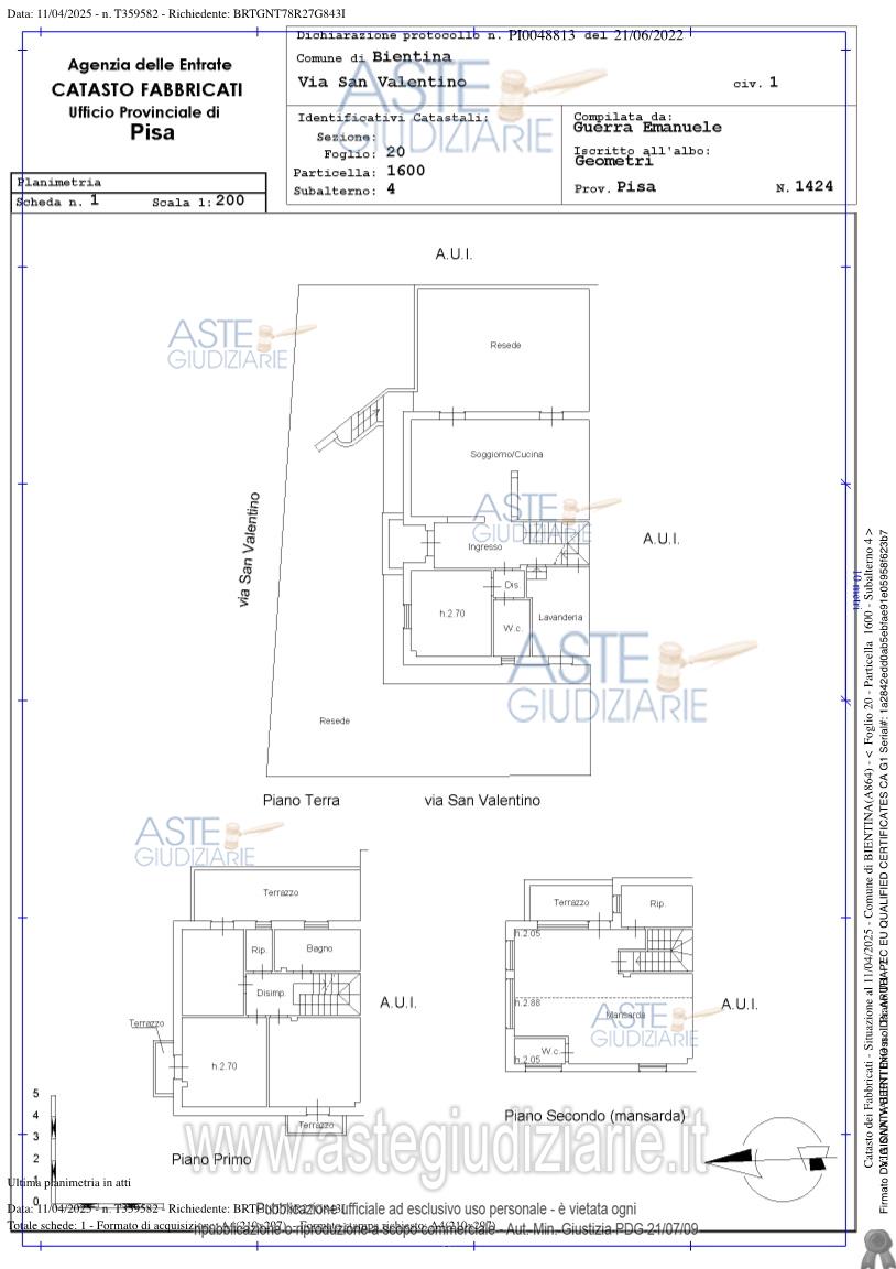Vendita all'asta Senza incanto, con gara telematica asincrona - LOTTO UNICO: Bene n. 1: Abitazione facente parte di un più ampio fabbricato di tipo bifamiliare, disposto su più piani cui piano seminterrato, terra, primo e sottotetto.Bene n. 2: Garage posto al piano seminterrato composto di un unico locale, di pertinenza ad un’abitazione facente parte di un più ampio fabbricato di tipo bifamiliare, disposto su più piani cui piano seminterrato, terra, primo e sottotetto. Prezzo base € 257.000,00 (offerta minima € 192.750,00). Data inizio operazioni di vendita: 18/03/2026 ore 15:00. Giudice Dott. Laura Pastacaldi. Professionista delegato alla vendita Avv. Claudio Cecchella - Email "cecchellalawyer@gmail.com"; Tel. 05026205. Custode Giudiziario Dott. Cosimo Erriquez - Email "prenotazionipisa@astagiudiziaria.com"; Tel. 050554790. Rif. Tribunale di Pisa - Esecuzione immobiliare post legge 80 n. 232/2024