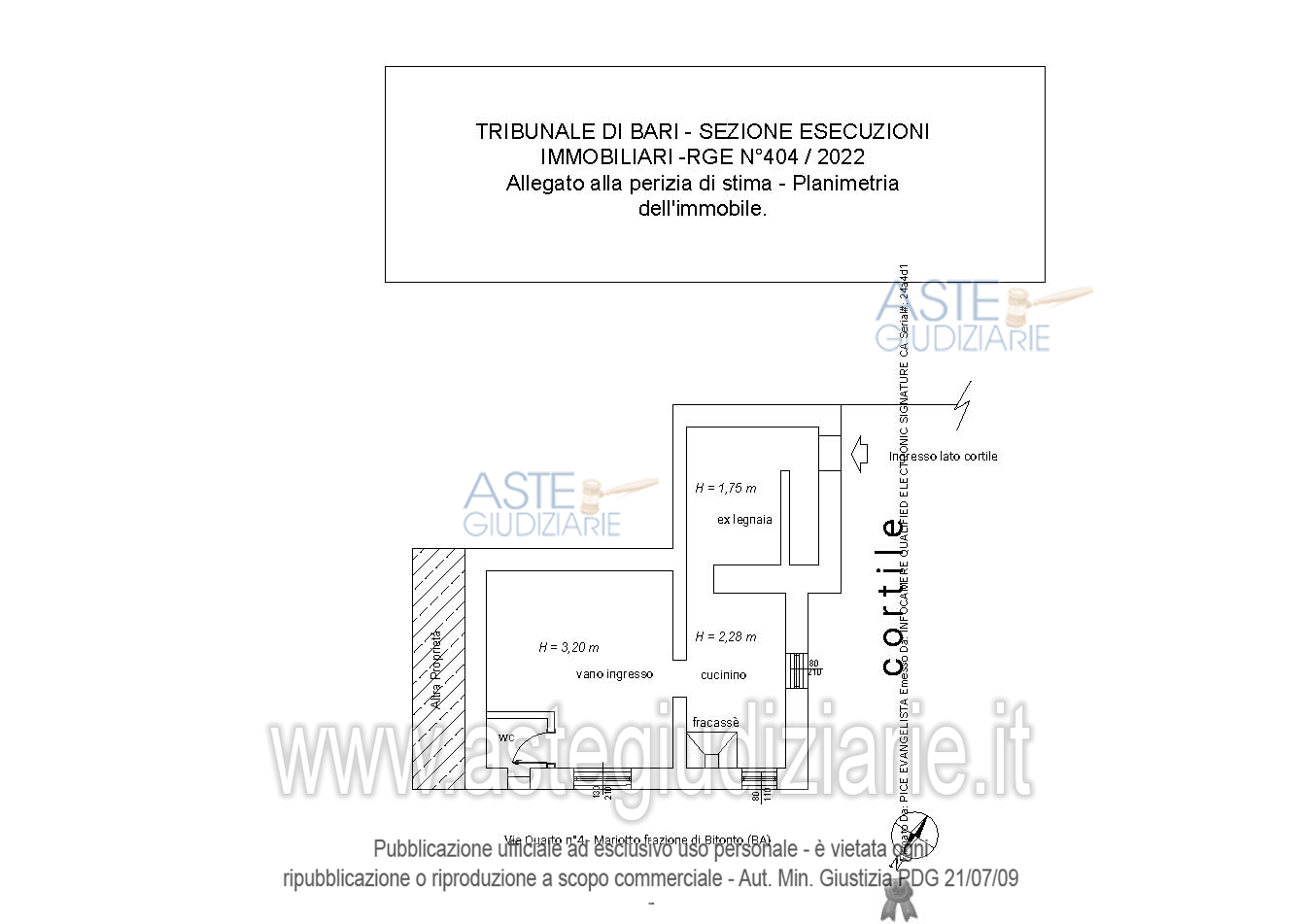 Vendita in attesa dell'emissione del nuovo bando d'asta. LOTTO UNICO: Immobile per civile abitazione al piano terra comprese le accessioni, pertinenze e dipendenze. L’immobile è posto in vendita per il diritto di piena proprietà ed è libero. Ultimo prezzo base € 15.475,00 (offerta minima € 11.606,25). Giudice Dott. Marisa Attollino. Professionista delegato alla vendita Avv. Vincenzo Colaninno - Email "vincenzocolaninno@libero.it". Custode Giudiziario Avv. Vincenzo Colaninno - Email "vincenzocolaninno@libero.it". Rif. Tribunale di Bari - Esecuzione immobiliare post legge 80 n. 404/2022