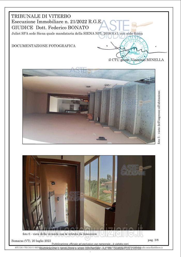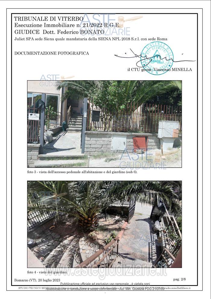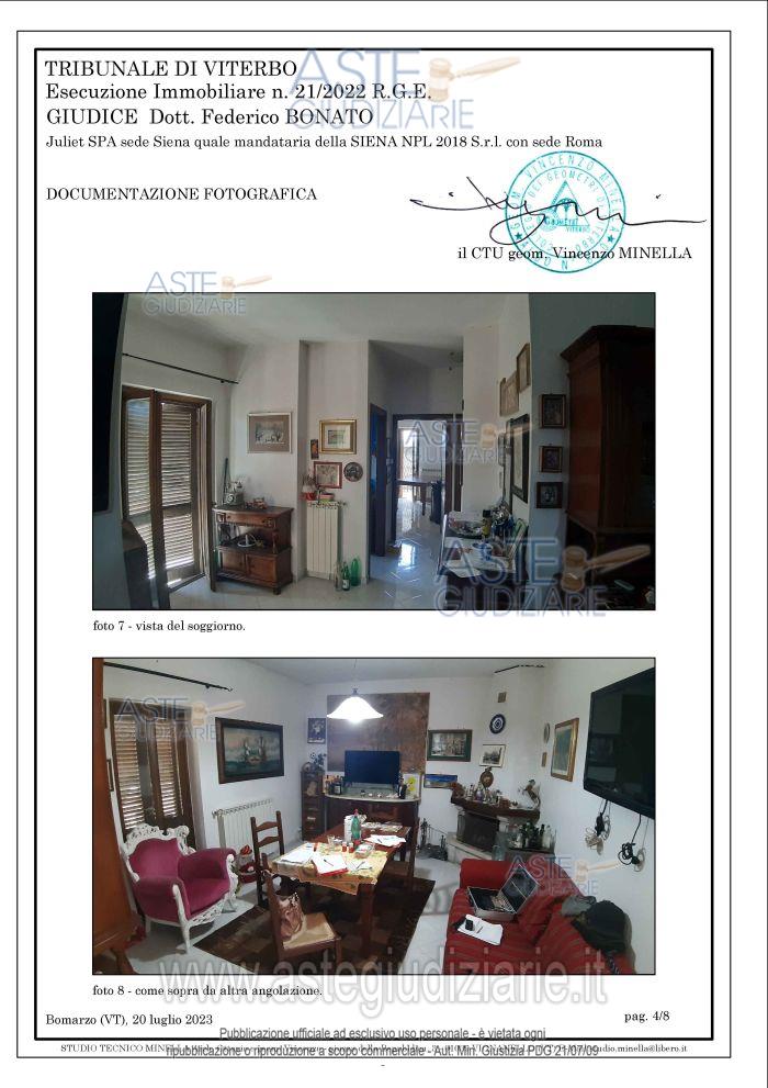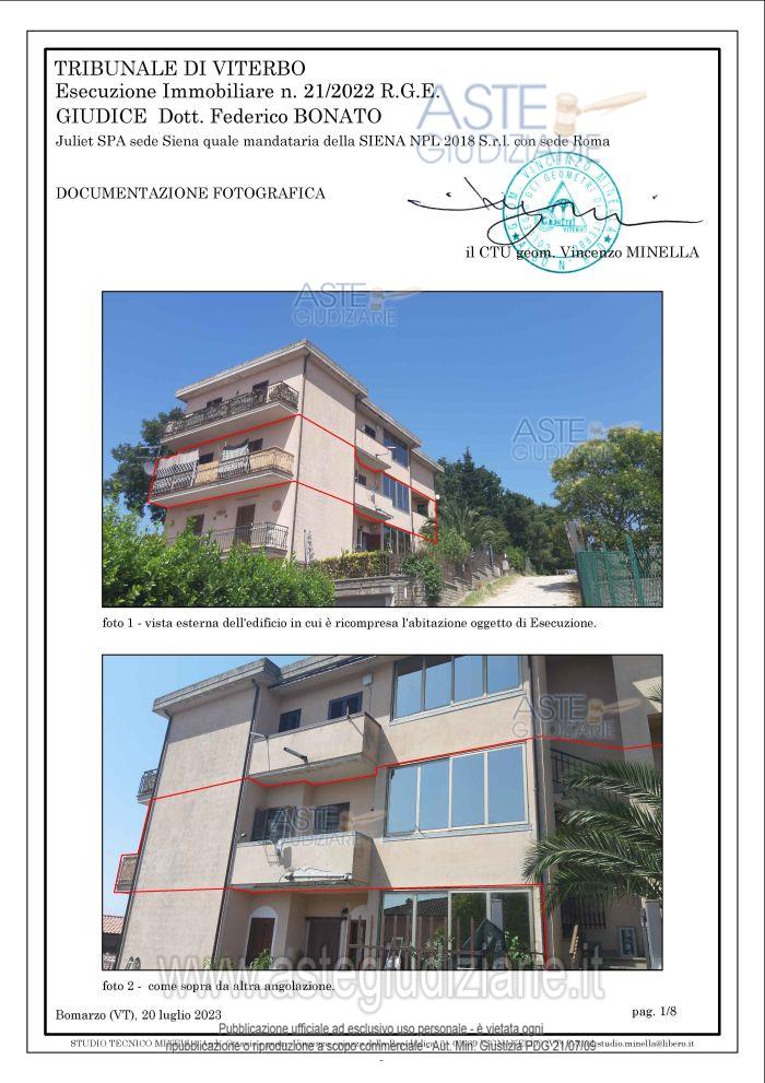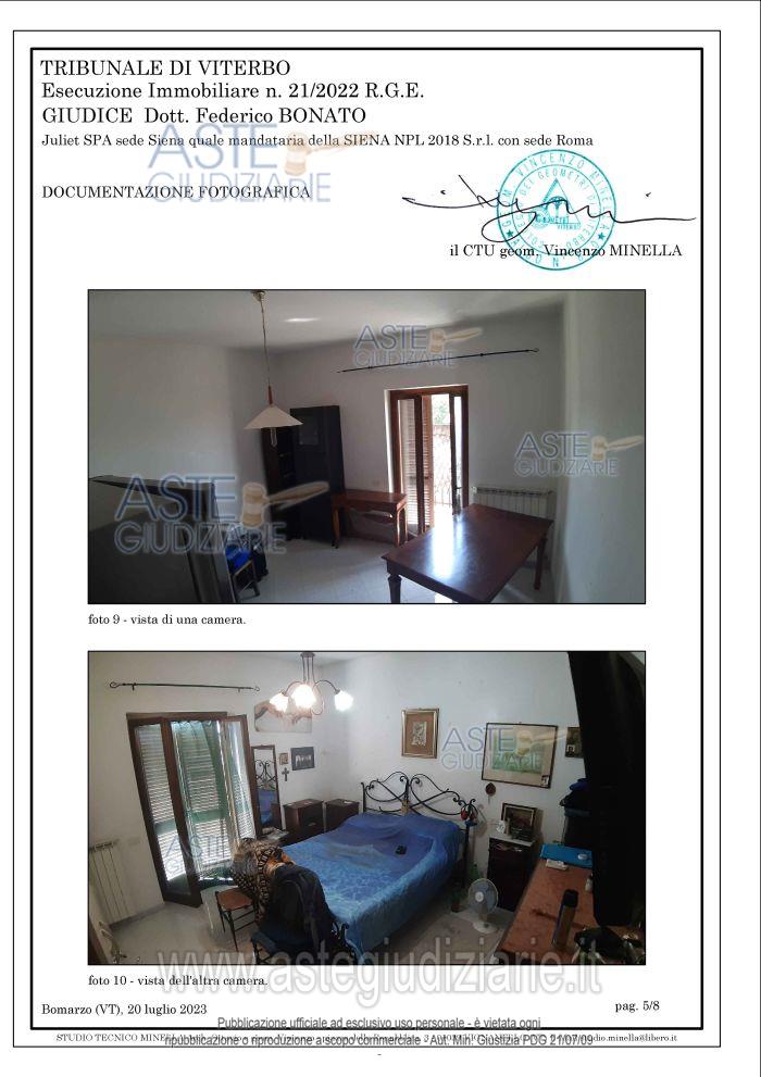 Vendita all'asta Senza incanto, con gara telematica asincrona - LOTTO UNICO: Diritti dell’esecutato di piena proprietà su un’unità immobiliare ubicata in Bomarzo (VT) via Sandro Pertini snc, posta al piano 1°, della complessiva superficie utile interna di circa mq 70 composta da un soggiorno passante (mq 29,70), cucina (2,90), due camere (mq 15,90 + 15,90), un bagno (5,45), tre balconi a livello (mq 9,05 + 6,15 + 3,70) e due aree scoperte di pertinenza (mq 26,00+48,00). Nel complesso l’abitazione versa in buone condizioni di manutenzione. Prezzo base € 66.000,00 (offerta minima € 49.500,00). Data inizio operazioni di vendita: 18/02/2026 ore 10:20. Professionista delegato alla vendita Avv. Claudia Caporossi - Email "avvclacaporossi@virgilio.it". Custode Giudiziario Avv. Claudia Caporossi - Email "avvclacaporossi@virgilio.it". Rif. Tribunale di Viterbo - Esecuzione immobiliare post legge 80 n. 21/2022