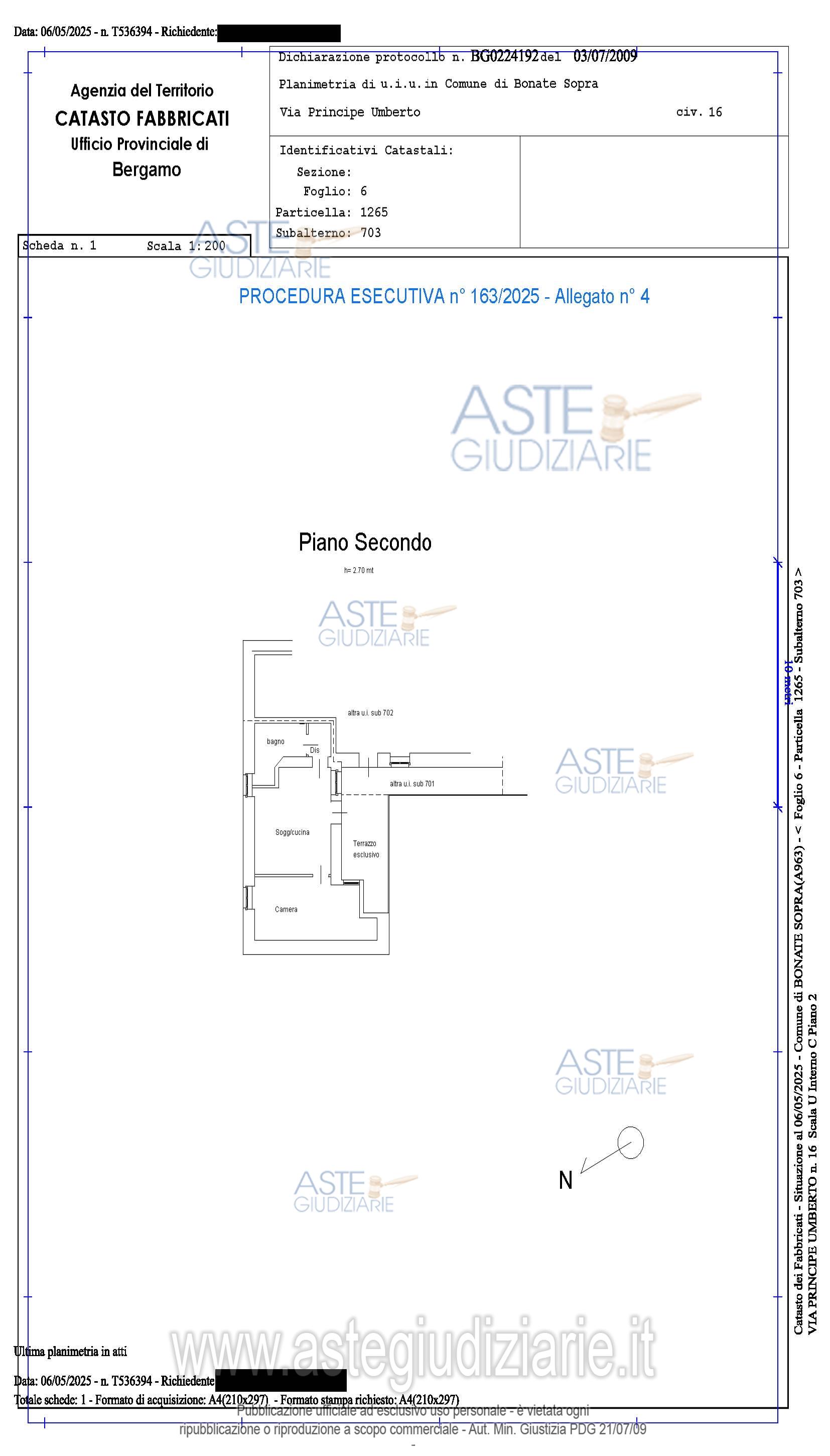 Vendita all'asta Senza incanto, con gara telematica asincrona - LOTTO UNICO: diritto di piena proprietà 1/1 di bilocale posto al piano secondo di fabbricato e composto da soggiorno-angolo cottura, dimpegno, bagno, camera e terrazzo. All’appartamento si accede per il tramite di un terrazzo, bene comune non censibile alle unità immobiliari identificate ai sub 702-703. Prezzo base € 45.000,00 (offerta minima € 33.750,00). Data inizio operazioni di vendita: 22/04/2026 ore 10:15. Giudice Dott. Luca Fuzio. Professionista delegato alla vendita Dott. Laura Bertacchi - Email "laurabertacchi@studiobertacchi.com"; Tel. 035249187. Custode Giudiziario Dott. Laura Bertacchi - Email "laurabertacchi@studiobertacchi.com"; Tel. 035249187. Rif. Tribunale di Bergamo - Espropriazione immobiliare (cartabia) n. 163/2025