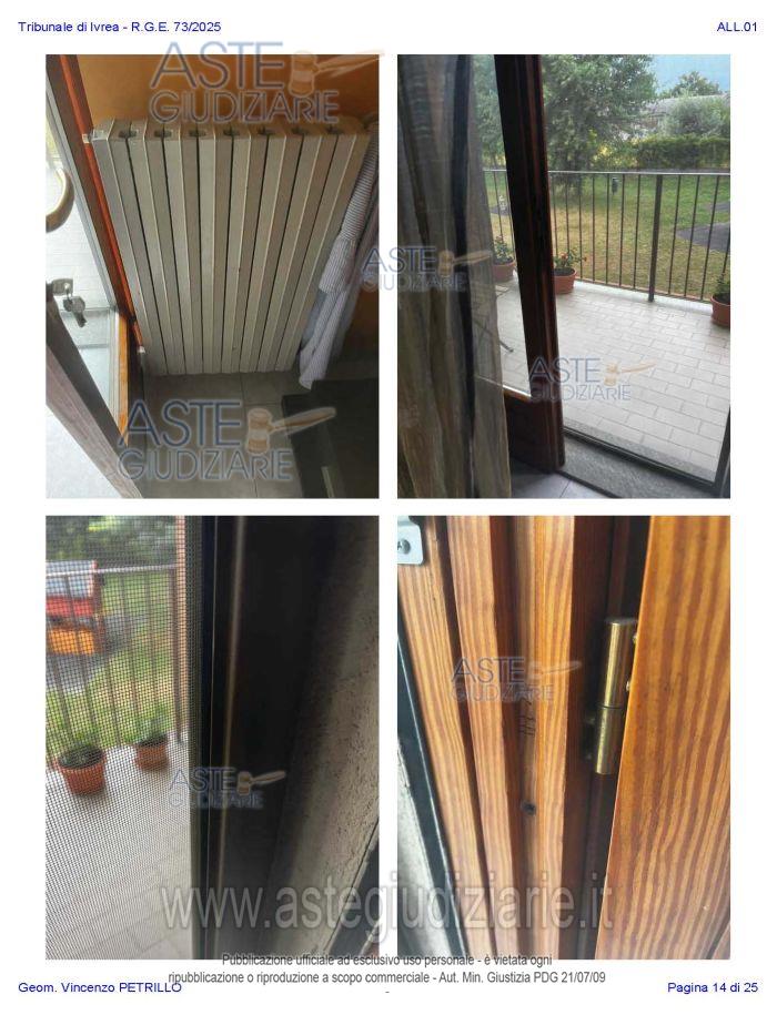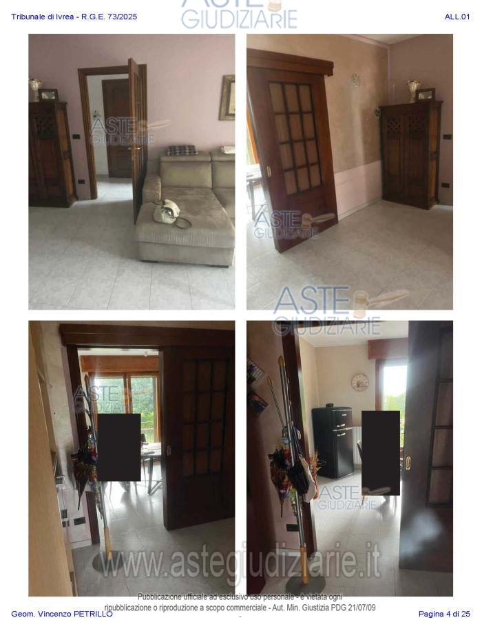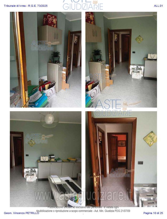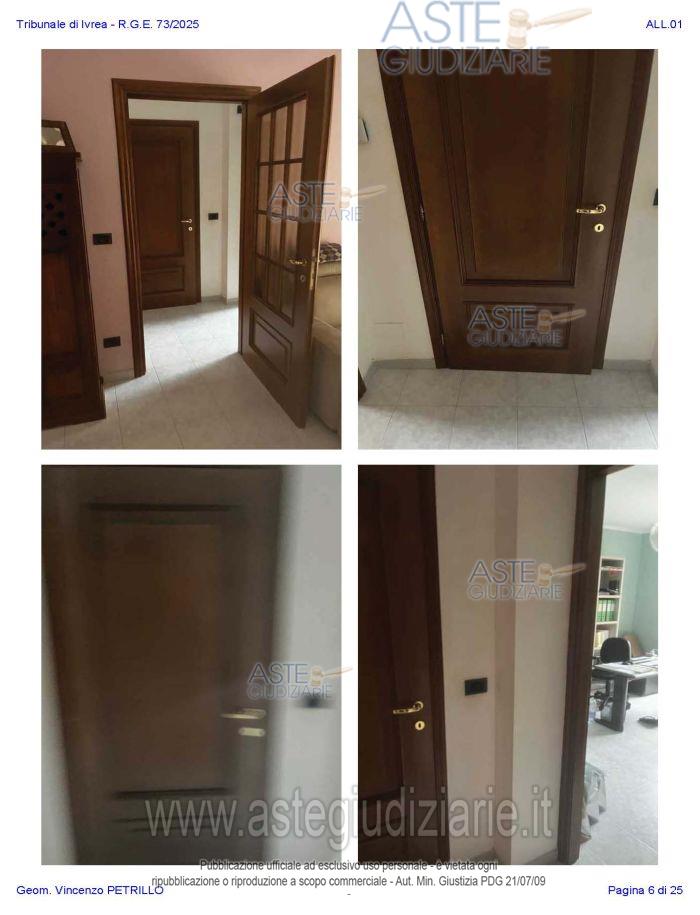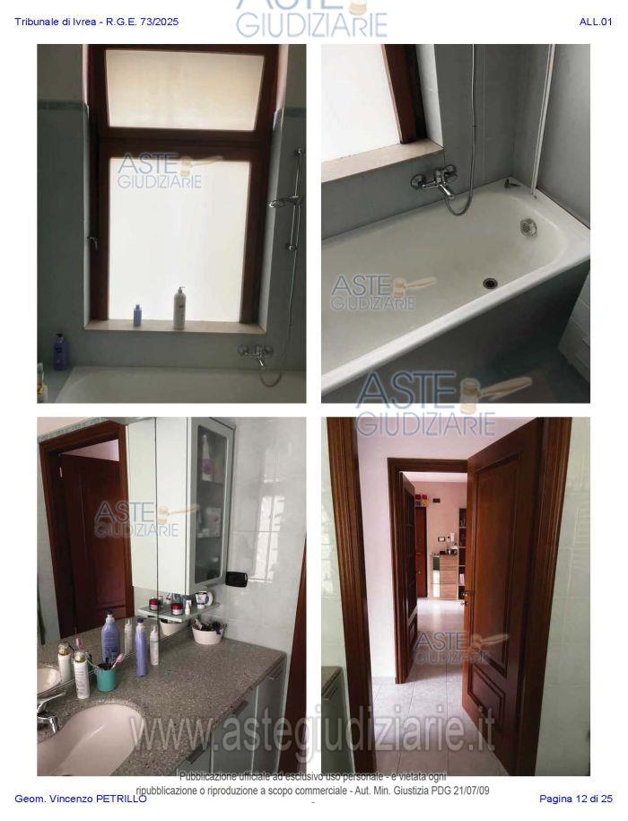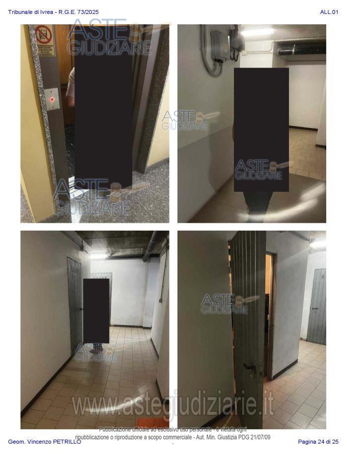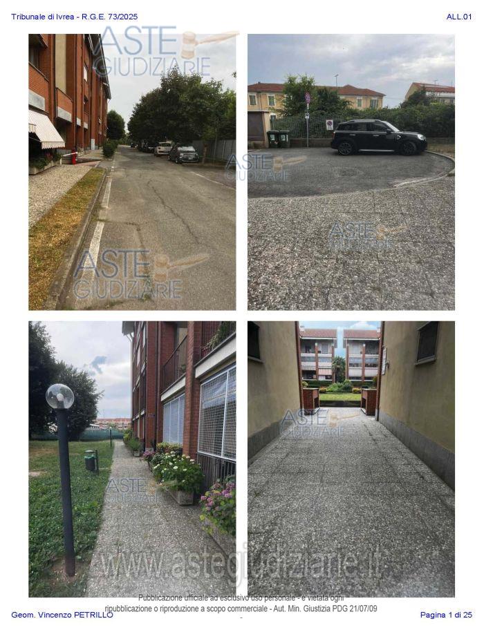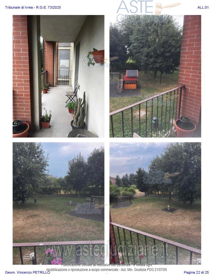Vendita all'asta Senza incanto, con gara telematica asincrona - LOTTO UNICO: Alloggio al piano primo distinto con il n. di interno 10, composto da ingresso-soggiorno, cucina, due camere, un bagno, disimpegno, e due balconi; oltre al piano interrato: cantina pertinenziale, distinta con il numero di interno 17c. Prezzo base € 97.500,00 (offerta minima € 73.125,00). Data inizio operazioni di vendita: 27/01/2026 ore 10:00. Professionista delegato alla vendita Avv. Nicole Peretti - Email "nicoleperetti@virgilio.it"; Cell. 3479270567. Custode Giudiziario Torino Ifir Piemonte - Email "richiestevisite.ivrea@ivgpiemonte.it"; Tel. 011482822. Rif. Tribunale di Ivrea - Espropriazione immobiliare (cartabia) n. 73/2025