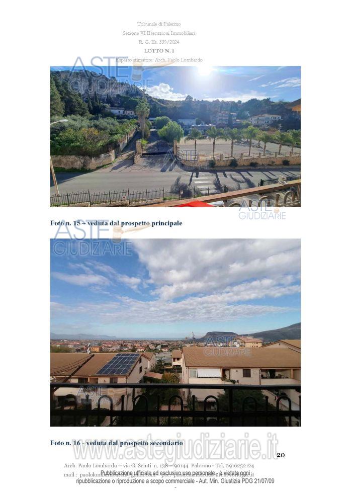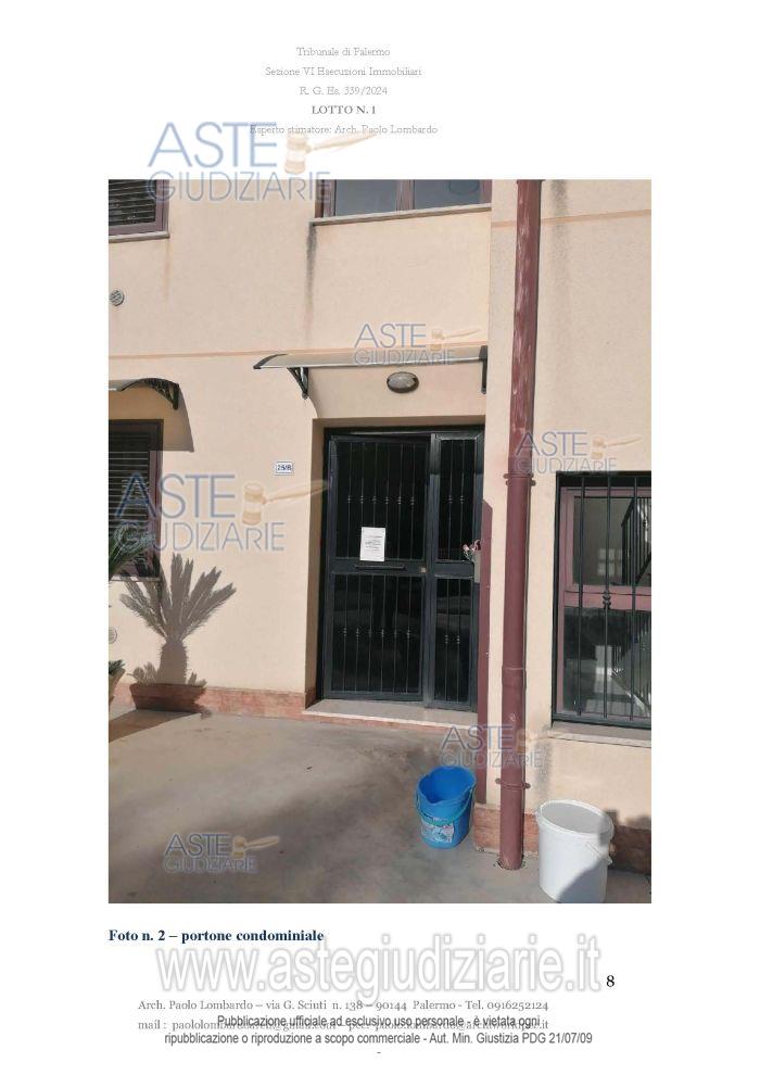Vendita all'asta Senza incanto, con gara telematica sincrona mista - LOTTO 1: LOTTO 1: Piena proprietà di appartamento sito nel Comune di Borgetto (Pa), Via Partinico n. 25/B, piano secondo a dx, identificato al NCEU del Comune di Borgetto al foglio 10, particella 1245, sub 56, cat. catastale A/2, Classe 3, Consistenza 6,5 vani, Sup. utile interna mq 123,95, sup. catastale mq totale 148 m2, posto auto scoperto in area condominiale a cielo aperto di pertinenza, rendita catastale Euro 503,55. Prezzo base € 70.500,00 (offerta minima € 53.000,00). Data vendita 22/04/2026 ore 14:00. Professionista delegato alla vendita Avv. Marzia Rizzo - Email "avvocatorizzomarzia@gmail.com"; Tel. 3807980564. Custode Giudiziario Avv. Marzia Rizzo - Email "avvocatorizzomarzia@gmail.com"; Tel. 3807980564. Rif. Tribunale di Palermo - Espropriazione immobiliare (cartabia) n. 339/2024