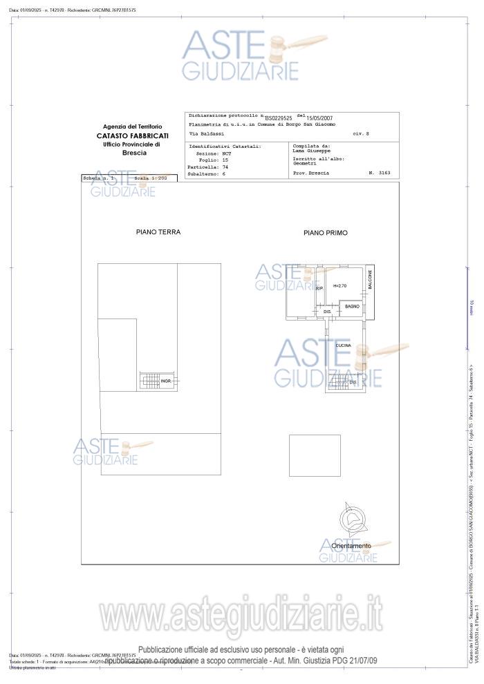 Vendita all'asta Senza incanto, con gara telematica asincrona - LOTTO UNICO: Appartamento, al rustico, posto al piano primo con annesso un box auto coperto posizionato nel cortile. Prezzo base € 40.000,00 (offerta minima € 30.000,00). Data inizio operazioni di vendita: 07/05/2026 ore 12:00. Giudice Dellesecuzione Giudice. Professionista delegato alla vendita Not. Rita Serenella Ferrari Bardile - Email "rsferraribardile@notariato.it". Custode Giudiziario Not. Rita Serenella Ferrari Bardile - Email "rsferraribardile@notariato.it". Rif. Tribunale di Brescia - Espropriazione immobiliare (cartabia) n. 284/2024