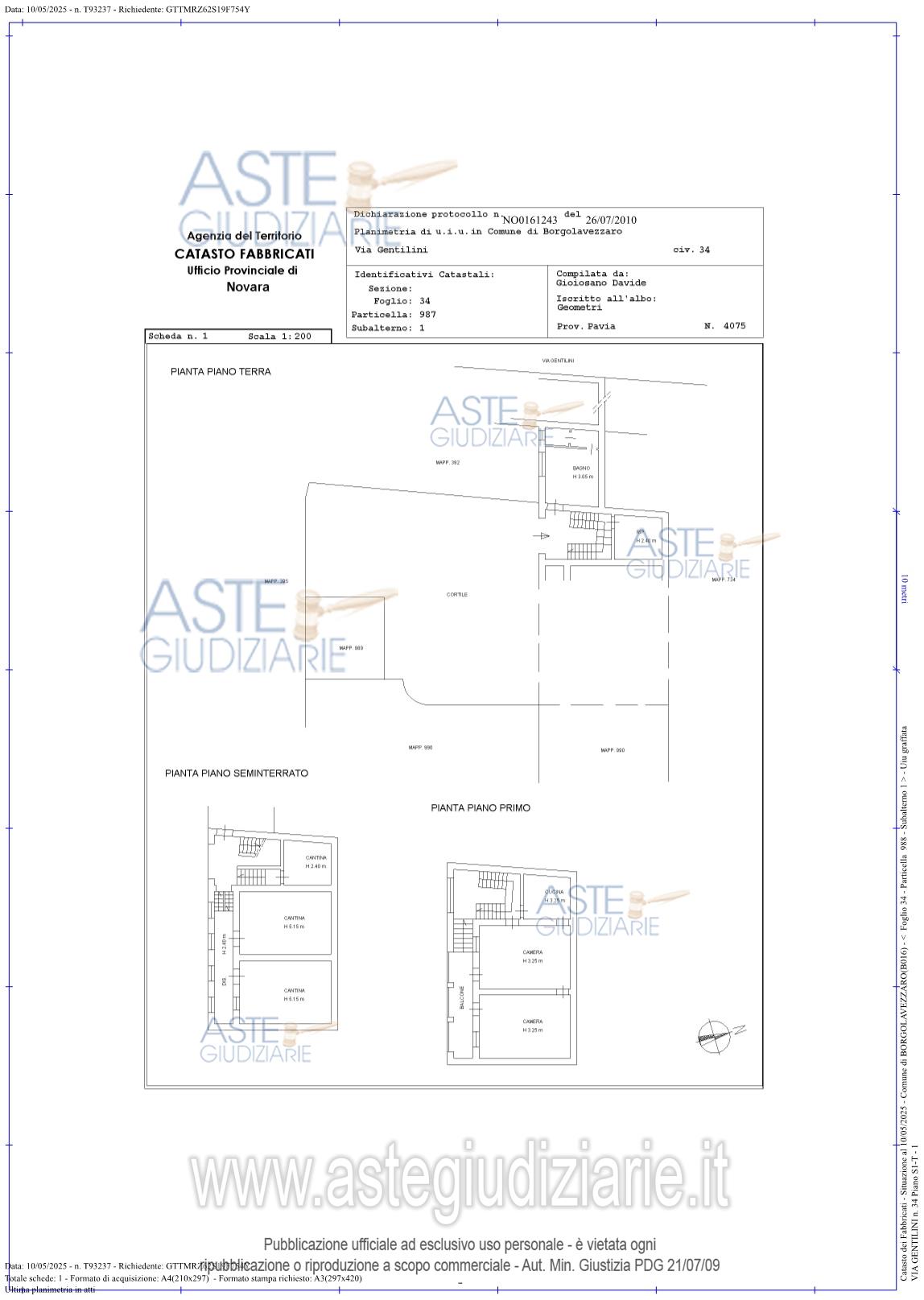 Vendita all'asta Senza incanto, con gara telematica asincrona - LOTTO UNICO: COMUNE DI BORGOLAVEZZARO (NO) – Via Gentilini n.34Quota intera di piena proprietàEdificio costituito da tre piani (seminterrato, terra e primo) collegati da vano scala in muratura, che si affaccia interamente su cortile interno. Prezzo base € 29.000,00 (offerta minima € 21.750,00). Data inizio operazioni di vendita: 06/05/2026 ore 12:00. Professionista delegato alla vendita Not. Andrea Milano - Email "novaraprocedureesecutive@gmail.com"; Tel. 0321640095. Custode Giudiziario Ifir Piemonte Ivg - Email "richiestevisite.novara@ivgpiemonte.it"; Tel. 0321628676. Rif. Tribunale di Novara - Espropriazione immobiliare (cartabia) n. 54/2024