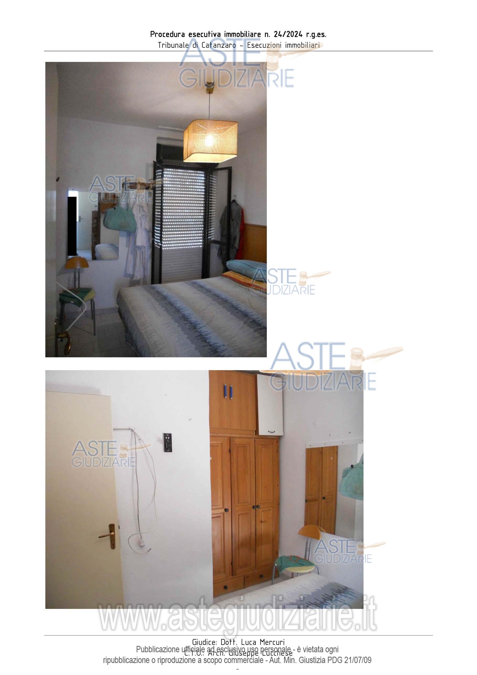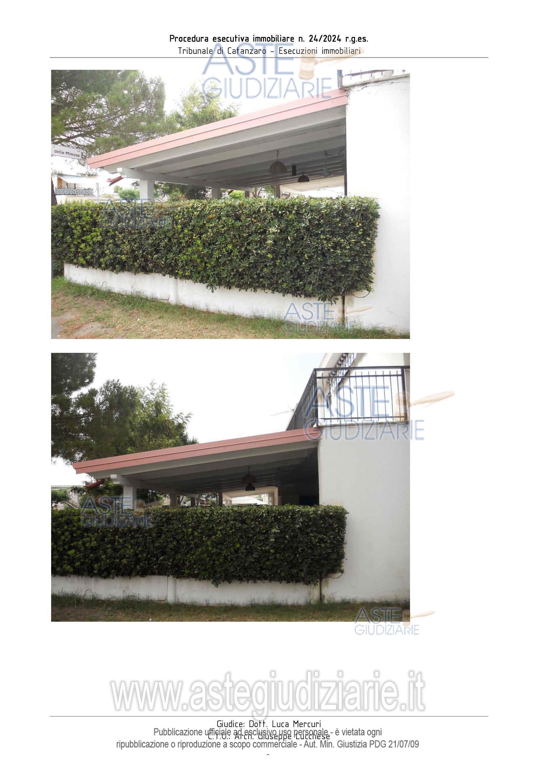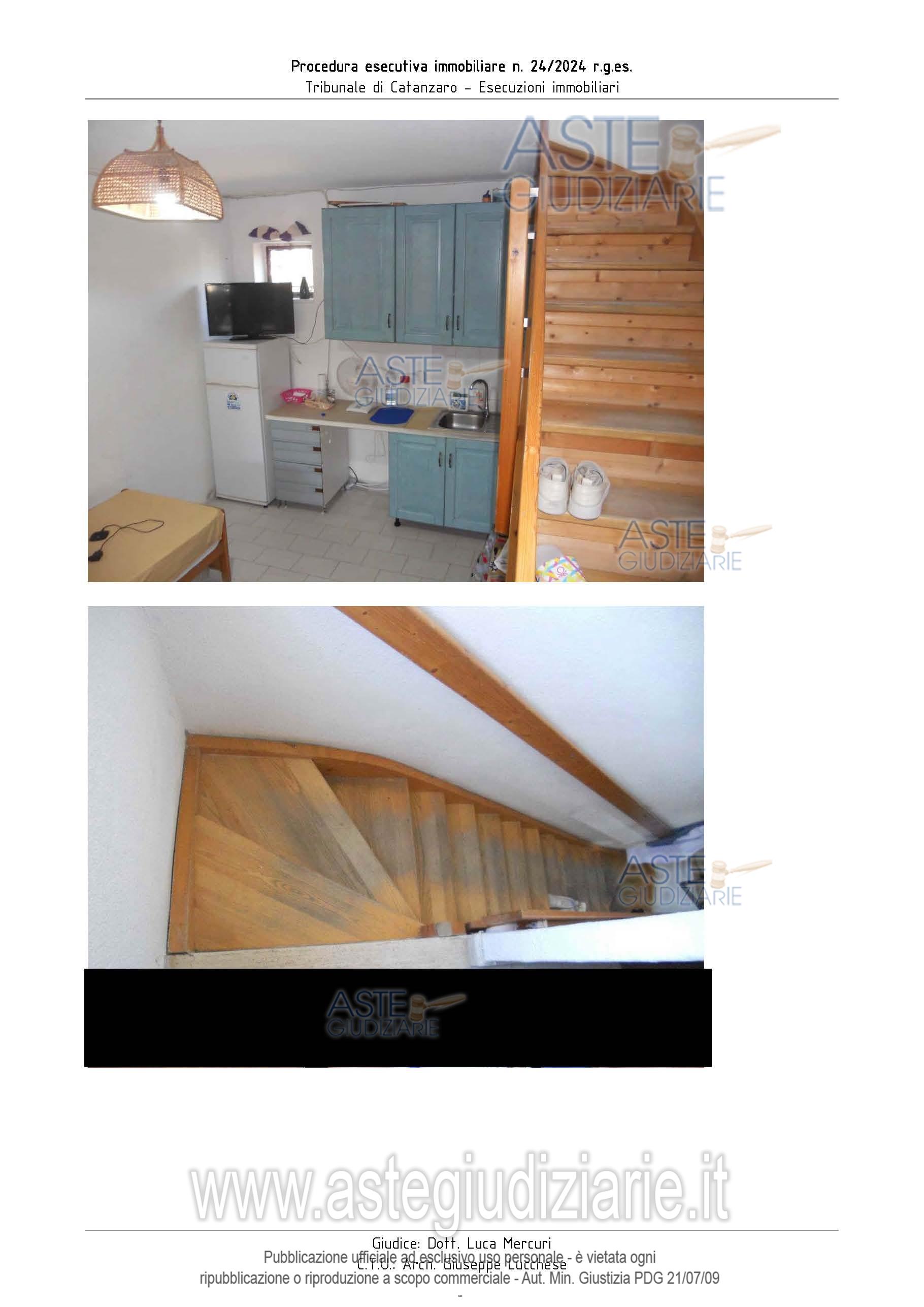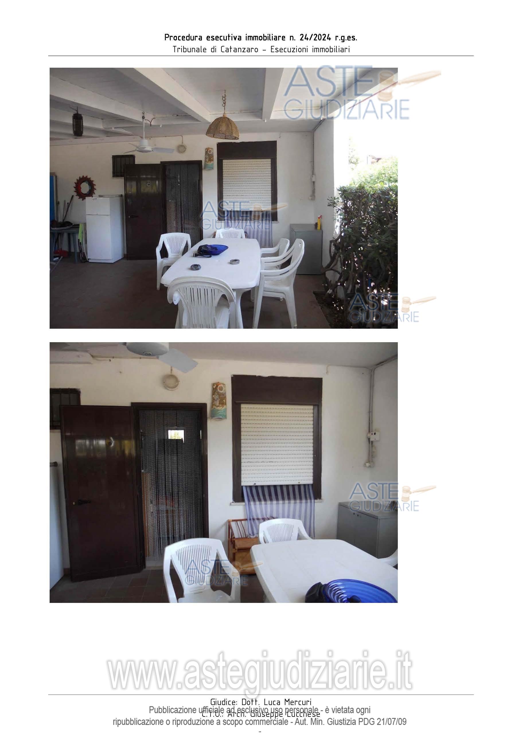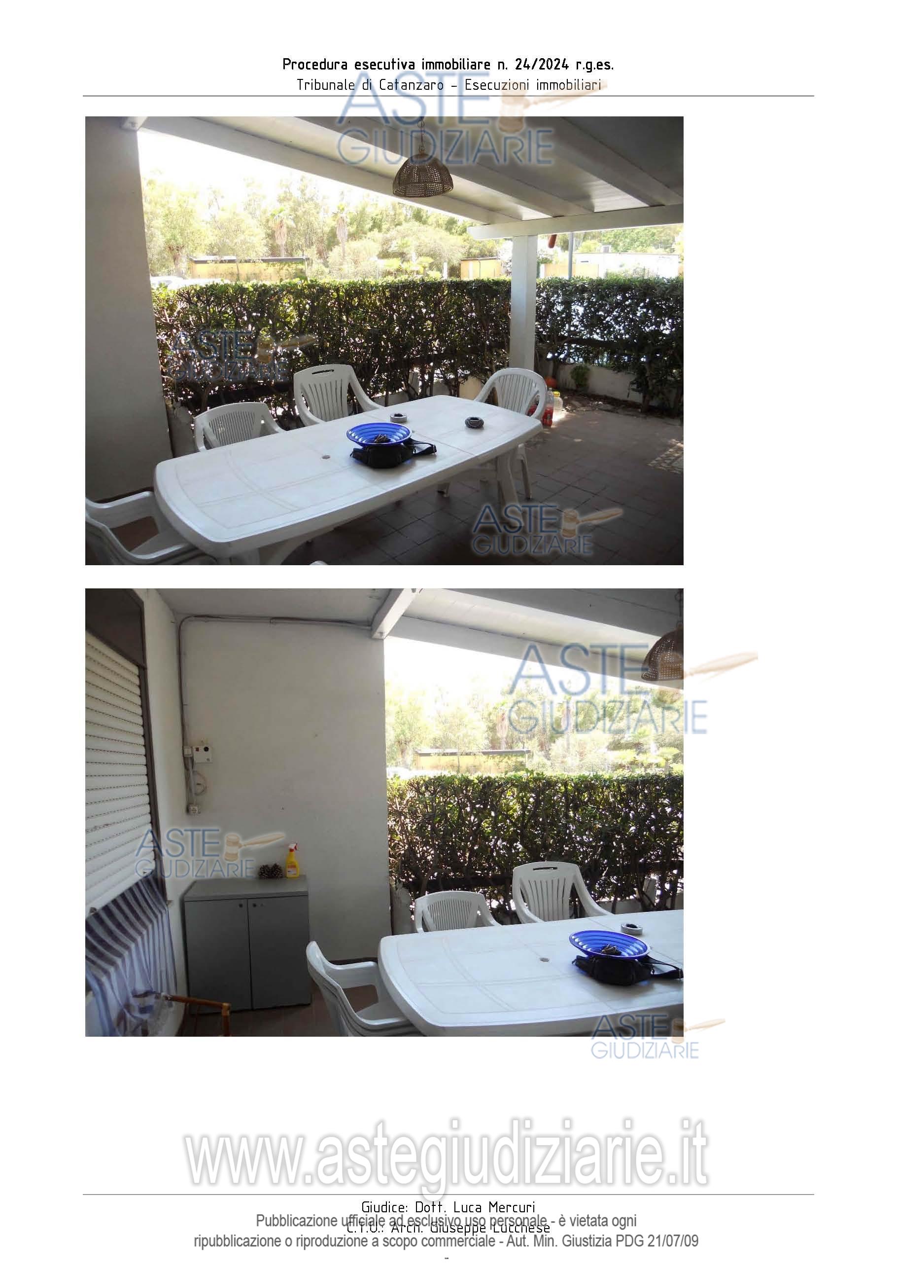 Vendita in attesa dell'emissione del nuovo bando d'asta. LOTTO 1: Immobile ad uso abitativo, Villaggio Costa Del Turchese, composto da due vani e mezzo catastali, piano T-1, superficie catastale totale mq 40, totale escluse aree scoperte mq 33. Ultimo prezzo base € 25.500,00 (offerta minima € 19.125,00). Giudice Dott. Francesca Rinaldi. Professionista delegato alla vendita Avv. Luca De Munda - Email "lucademunda@alice.it"; Tel. 3333158068. Custode Giudiziario Avv. Luca De Munda - Email "lucademunda@alice.it"; Tel. 3333158068. Rif. Tribunale di Catanzaro - Espropriazione immobiliare (cartabia) n. 24/2024