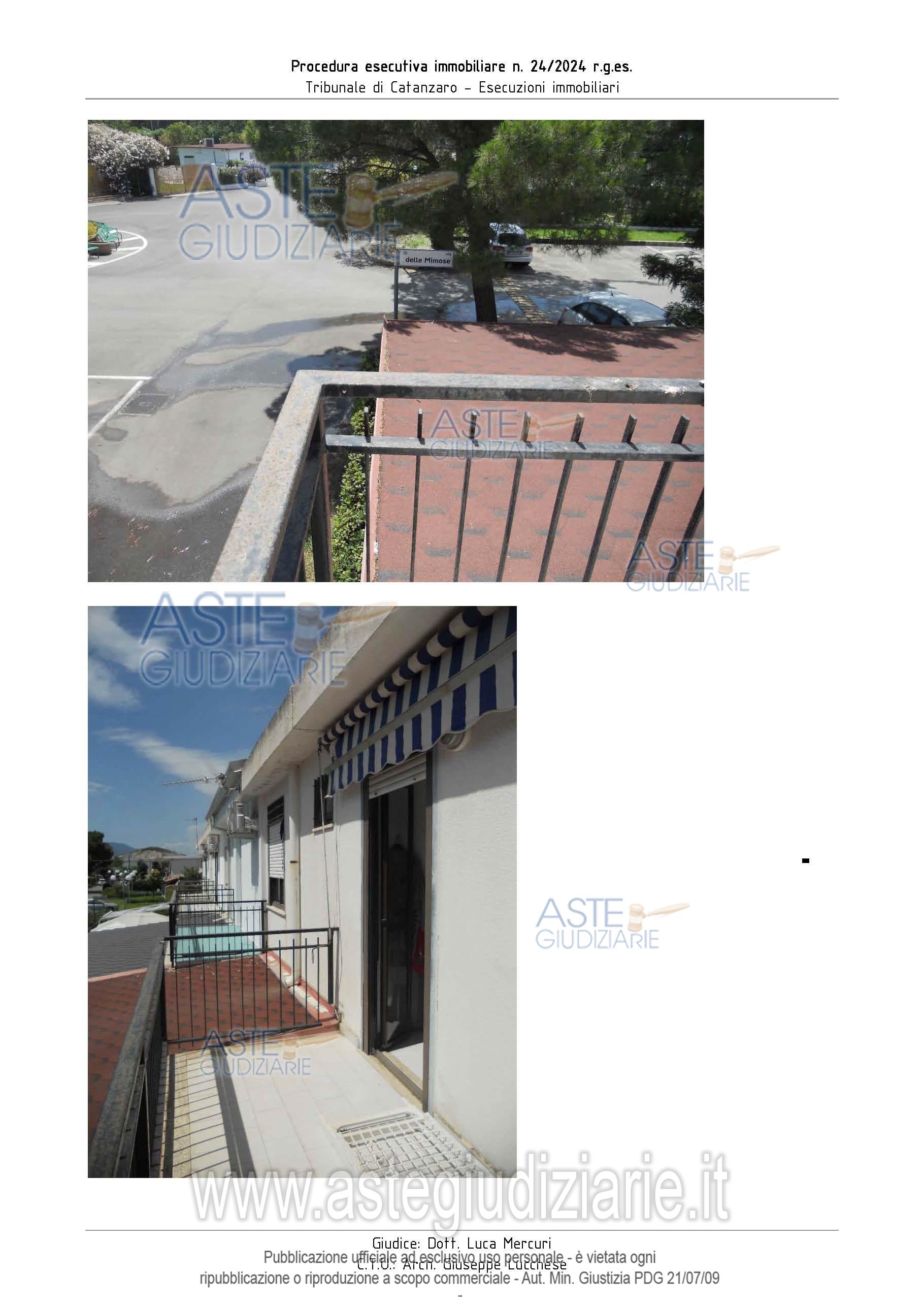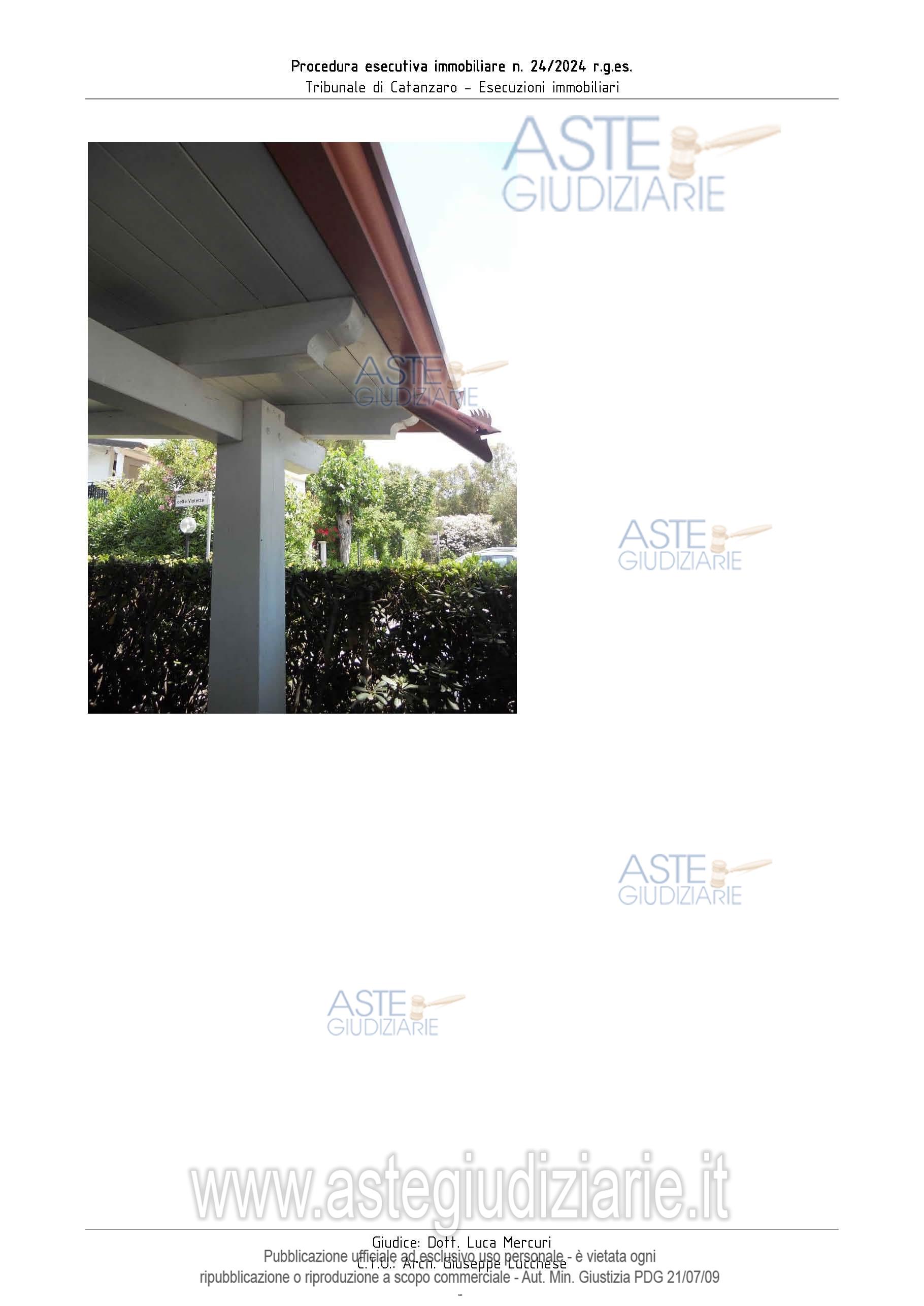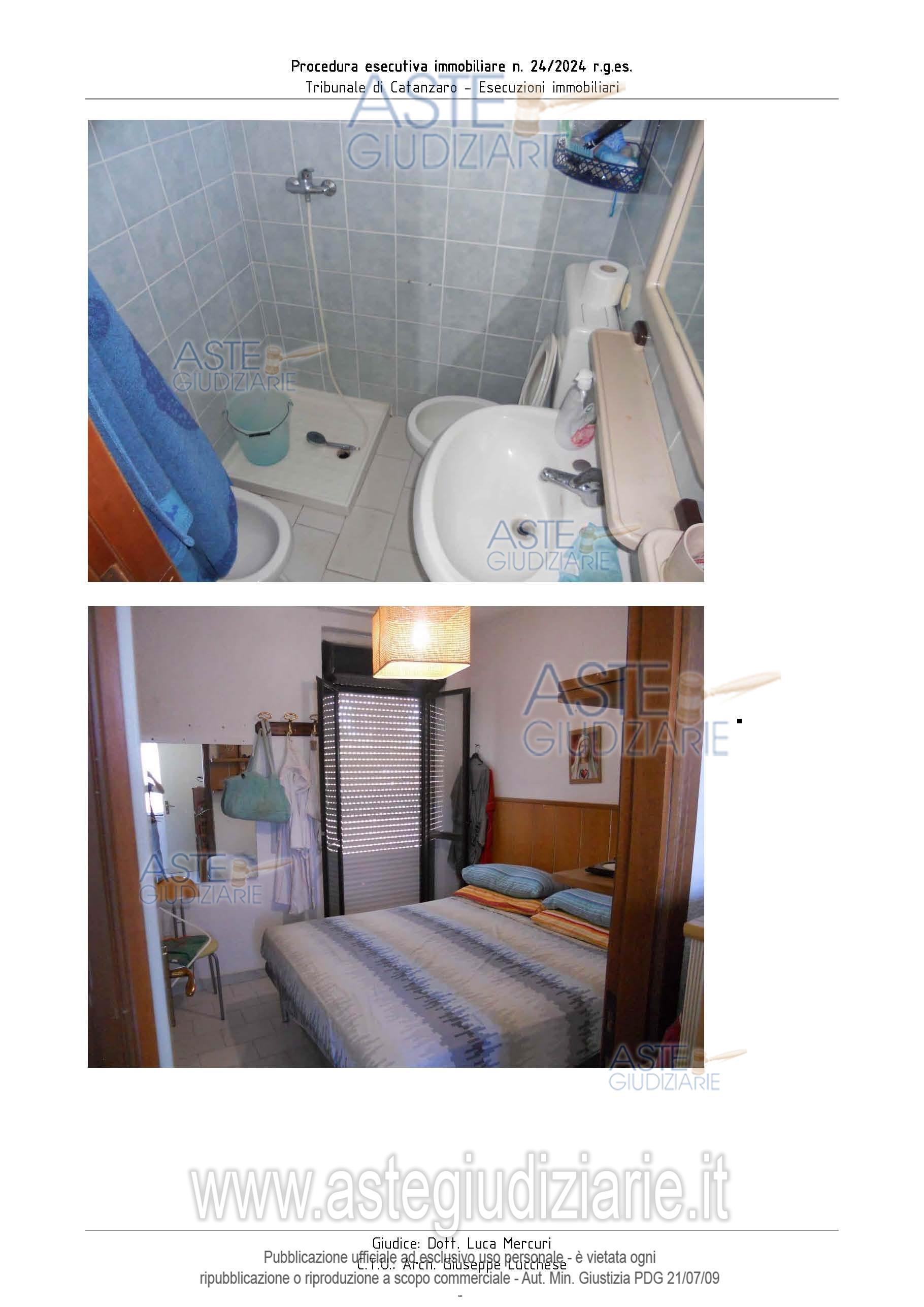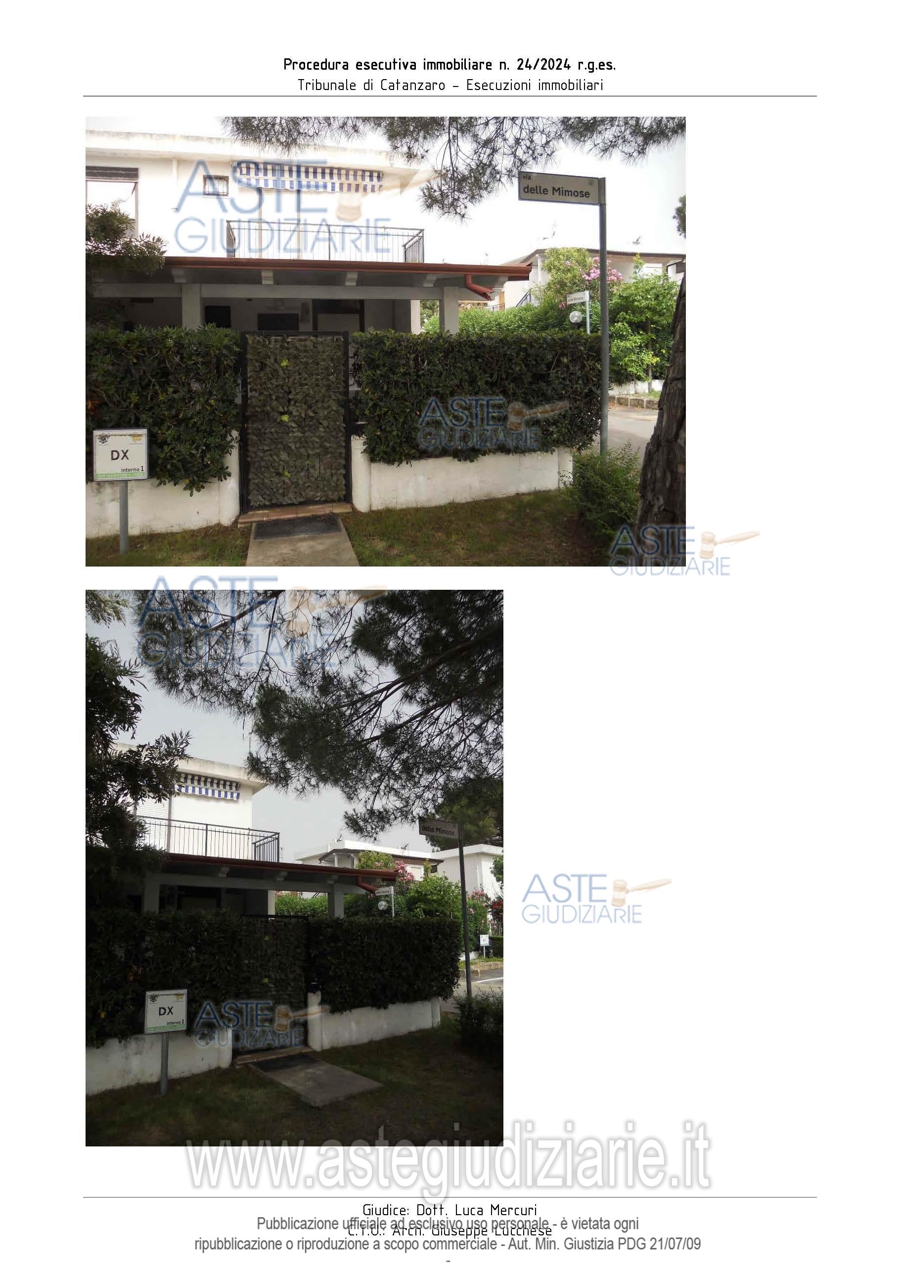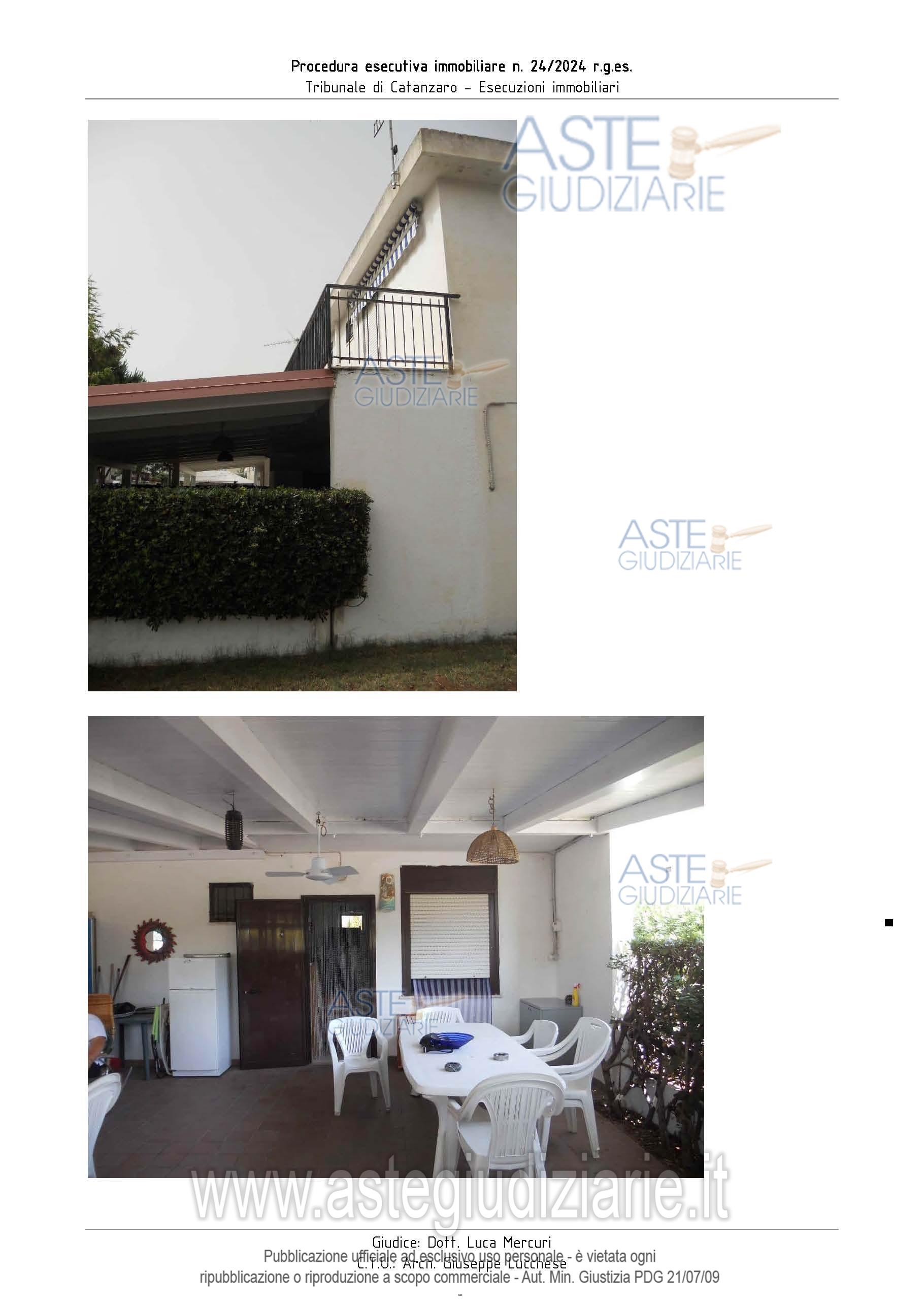 Vendita in attesa dell'emissione del nuovo bando d'asta. LOTTO 1: Immobile ad uso abitativo, Villaggio Costa Del Turchese, composto da due vani e mezzo catastali, piano T-1, superficie catastale totale mq 40, totale escluse aree scoperte mq 33. Ultimo prezzo base € 25.500,00 (offerta minima € 19.125,00). Giudice Dott. Francesca Rinaldi. Professionista delegato alla vendita Avv. Luca De Munda - Email "lucademunda@alice.it"; Tel. 3333158068. Custode Giudiziario Avv. Luca De Munda - Email "lucademunda@alice.it"; Tel. 3333158068. Rif. Tribunale di Catanzaro - Espropriazione immobiliare (cartabia) n. 24/2024
