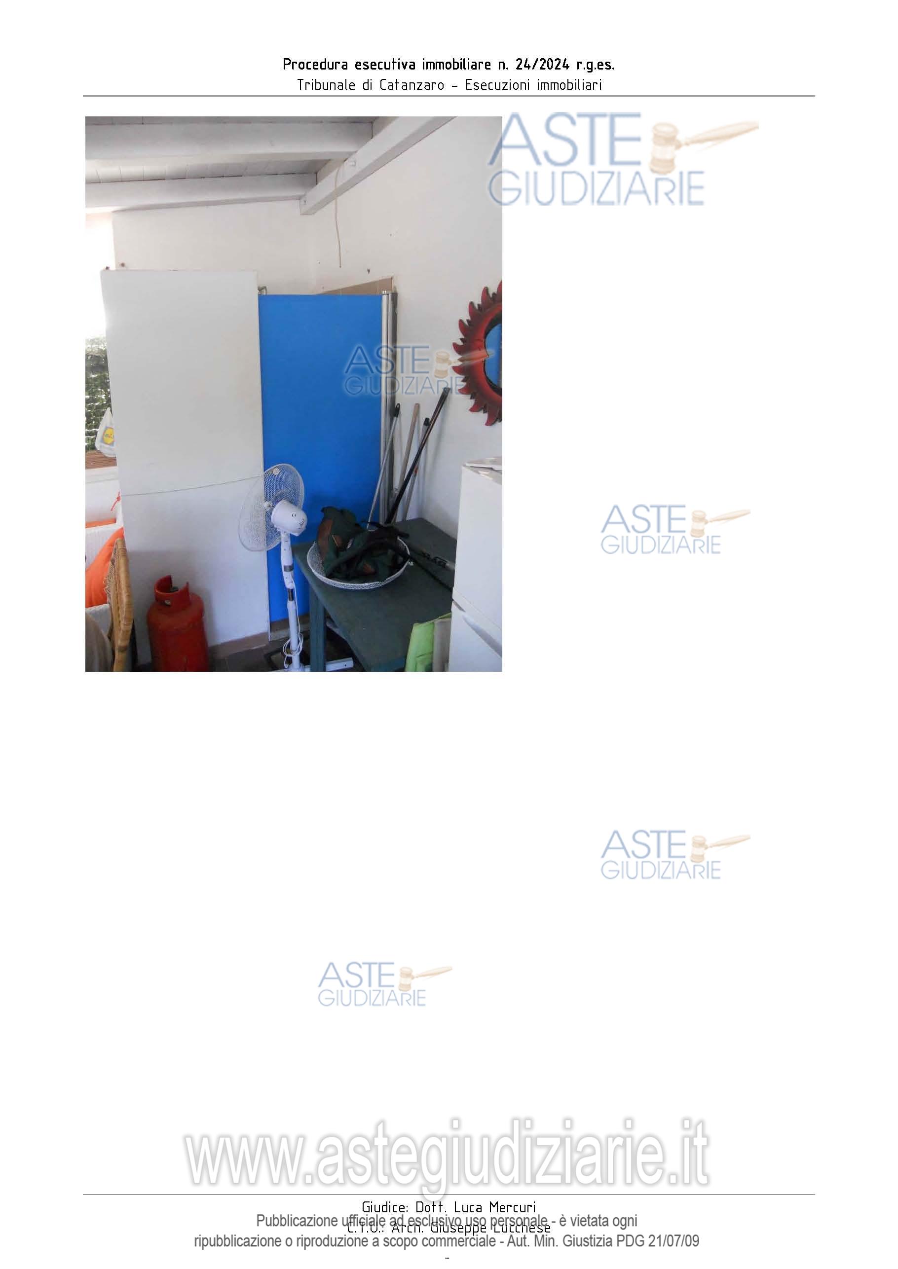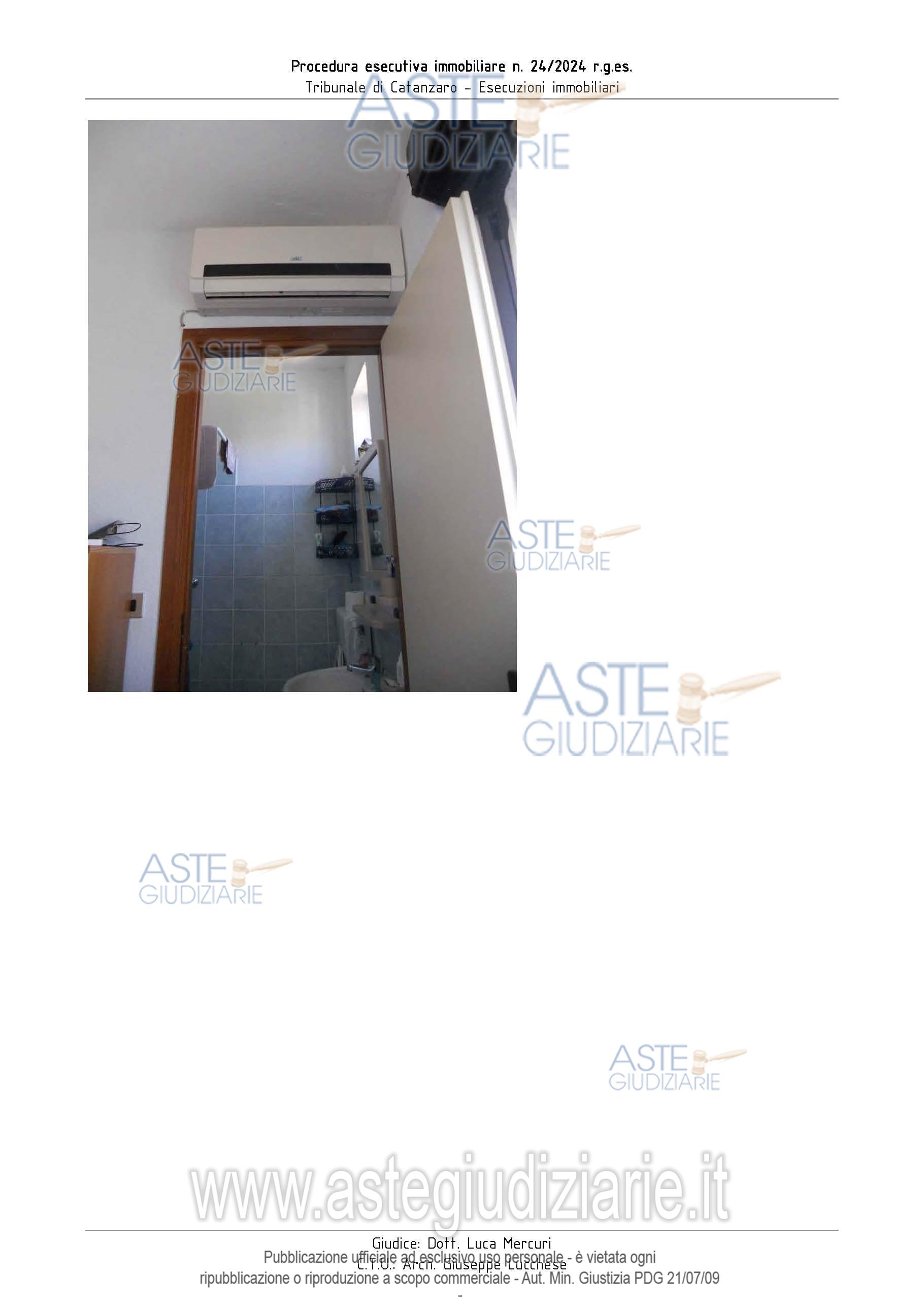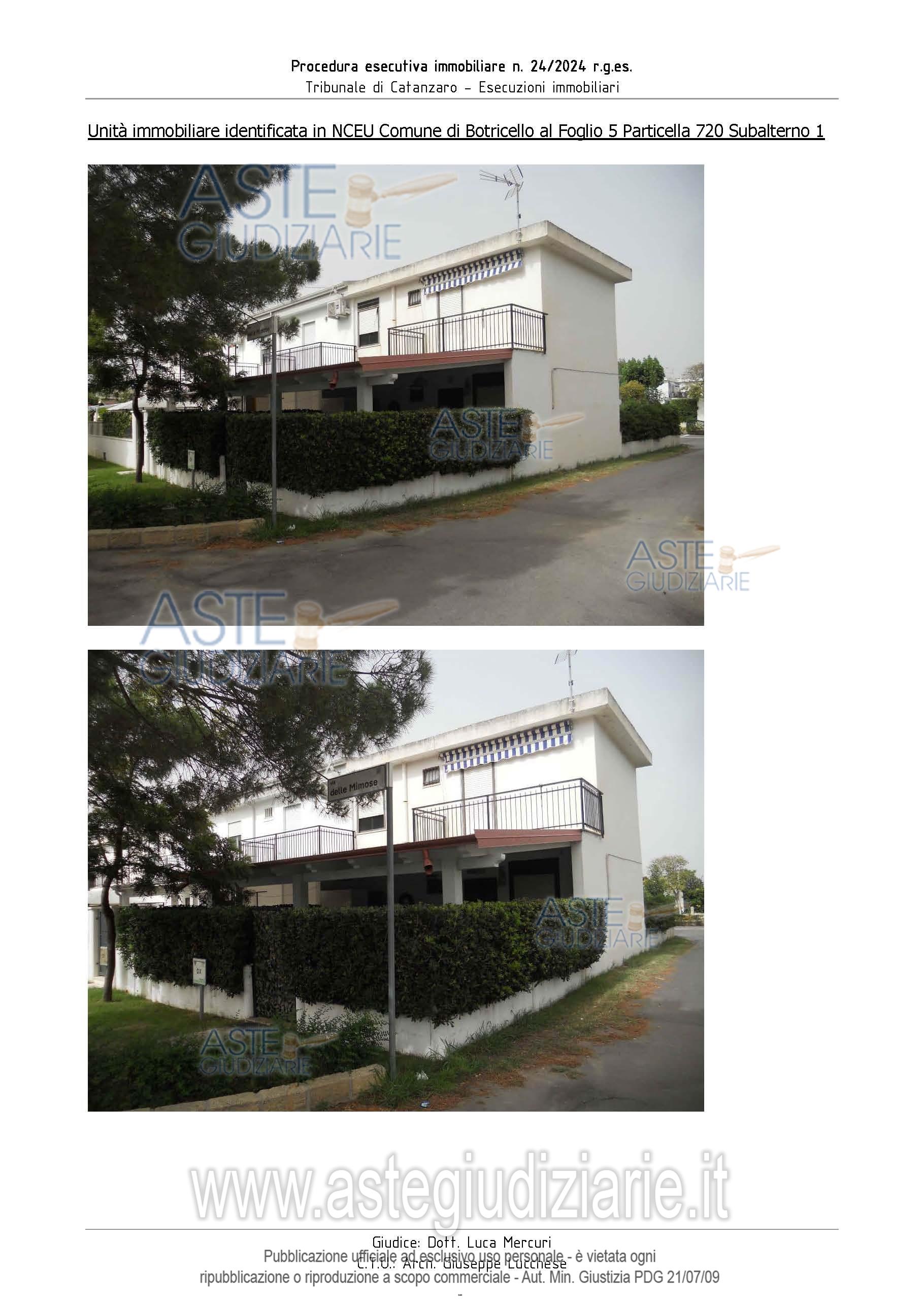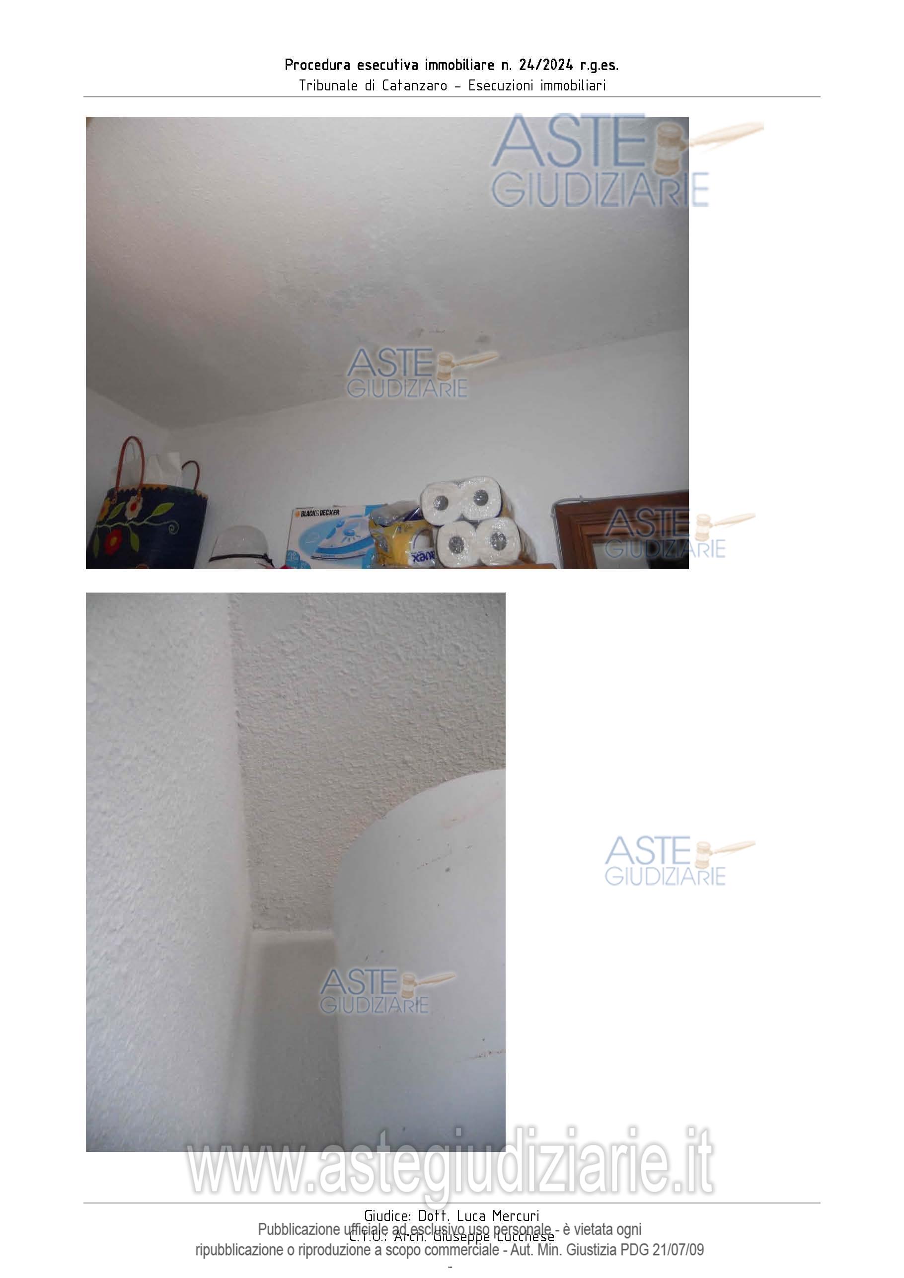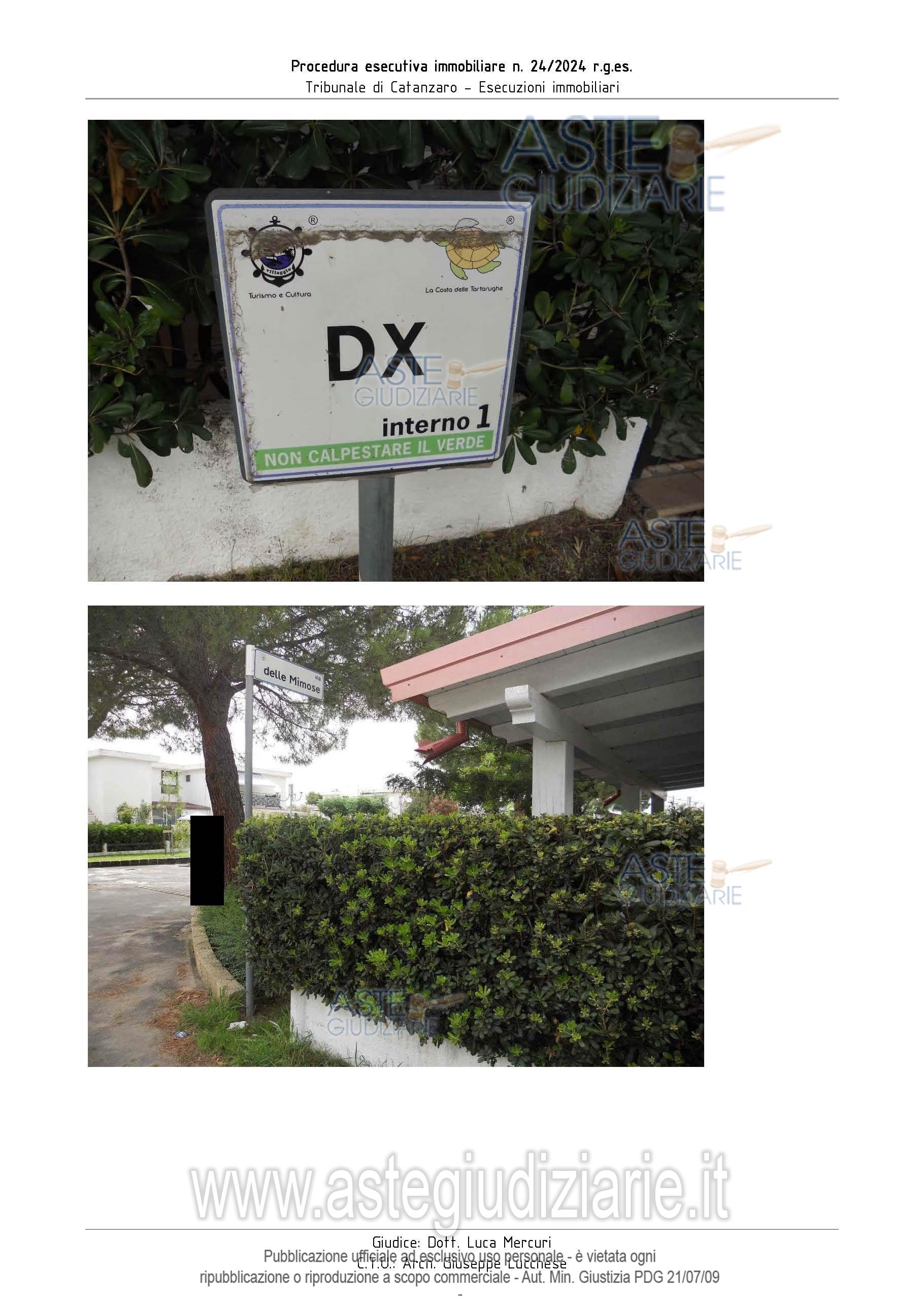 Vendita in attesa dell'emissione del nuovo bando d'asta. LOTTO 1: Immobile ad uso abitativo, Villaggio Costa Del Turchese, composto da due vani e mezzo catastali, piano T-1, superficie catastale totale mq 40, totale escluse aree scoperte mq 33. Ultimo prezzo base € 25.500,00 (offerta minima € 19.125,00). Giudice Dott. Francesca Rinaldi. Professionista delegato alla vendita Avv. Luca De Munda - Email "lucademunda@alice.it"; Tel. 3333158068. Custode Giudiziario Avv. Luca De Munda - Email "lucademunda@alice.it"; Tel. 3333158068. Rif. Tribunale di Catanzaro - Espropriazione immobiliare (cartabia) n. 24/2024