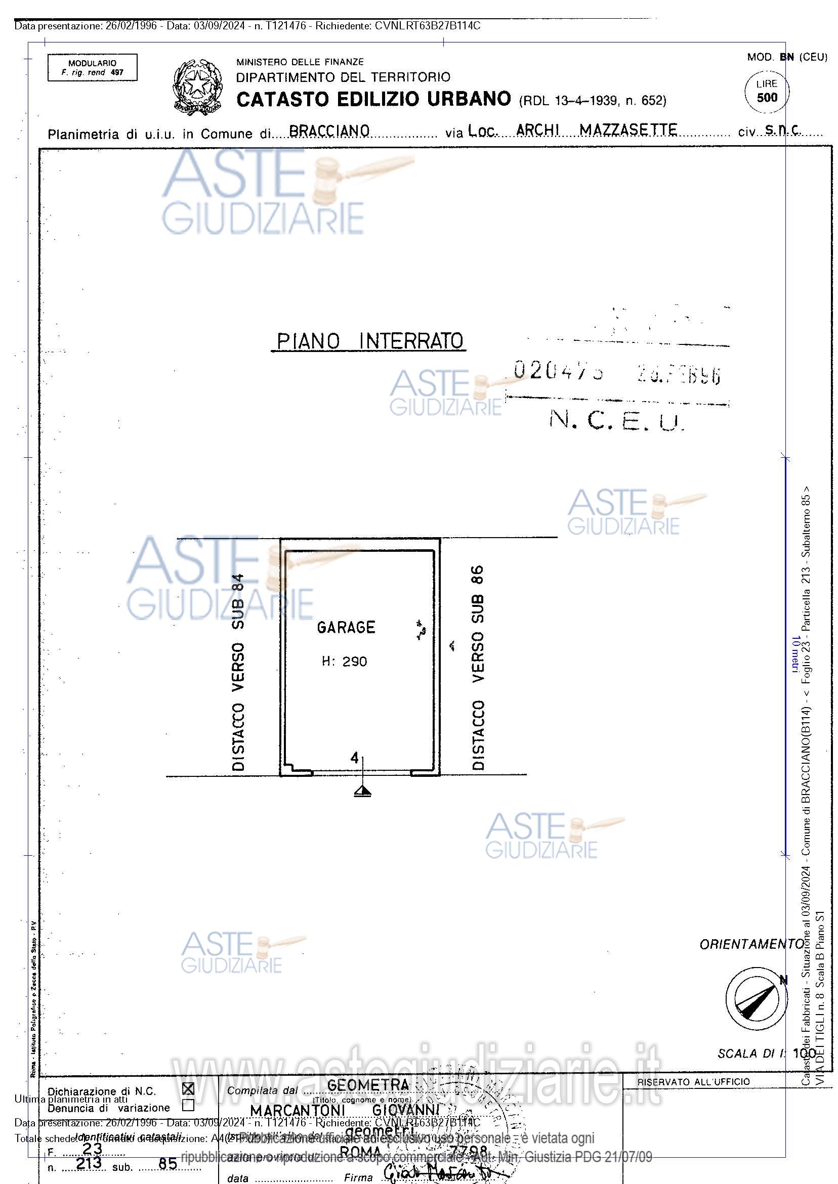 Vendita all'asta Senza incanto, con gara telematica asincrona - LOTTO 4: Ground floor apartment in Building "B", Unit 3, comprising a living room, two bedrooms, kitchen, two bathrooms, three terraces, and two garden areas. It also includes a 4-square-meter cellar on the S1 level of Building "B", Unit 3, and a parking space in the underground garage of Building "B", Unit 4, as well as a parking space in the underground garage of Building "B", Unit 5. Prezzo base € 96.945,56 (offerta minima € 72.709,17). Data inizio operazioni di vendita: 13/01/2026 ore 09:30. Giudice Dott. Giorgio Jachia. Curatore Avv. Maria Teresa Persico. Rif. Tribunale di Roma - Fallimentare n. 58773/1996