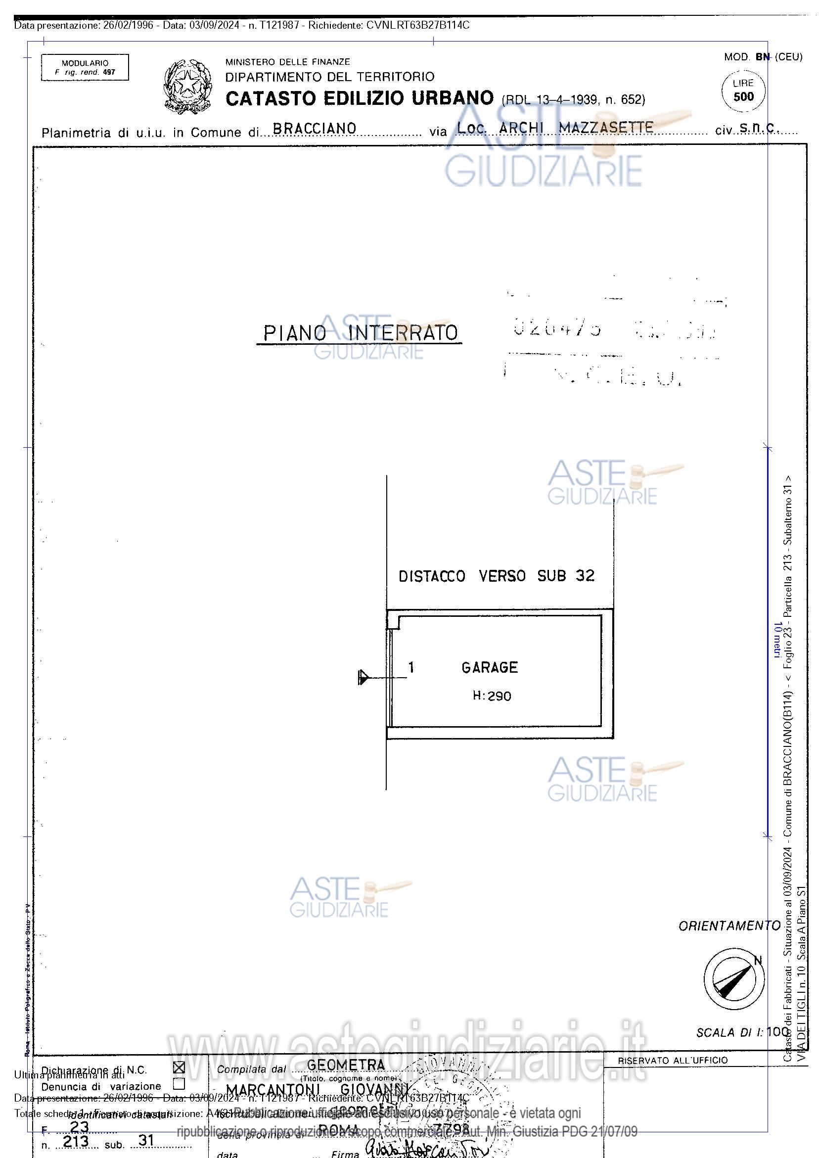 Vendita all'asta Senza incanto, con gara telematica asincrona - LOTTO 1: Ground floor apartment in building "A" - unit 4, consisting of a living room with kitchen corner, two bedrooms, a bathroom, a storage room, and an attached garden area, cellar on basement floor "S1" of building "A" - unit 4, measuring 4 square meters in addition to a garage on the underground floor of building "A" - unit 1, and a garage on the underground floor of building "A" - unit 3. Prezzo base € 57.421,20 (offerta minima € 43.065,90). Data inizio operazioni di vendita: 13/01/2026 ore 09:30. Giudice Dott. Giorgio Jachia. Curatore Avv. Maria Teresa Persico. Rif. Tribunale di Roma - Fallimentare n. 58773/1996